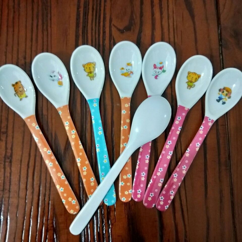 新款长柄儿童勺 密胺塑料小勺小孩喂饭勺仿瓷卡通勺子调羹1元礼品