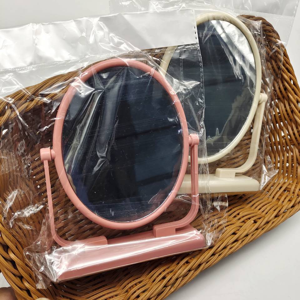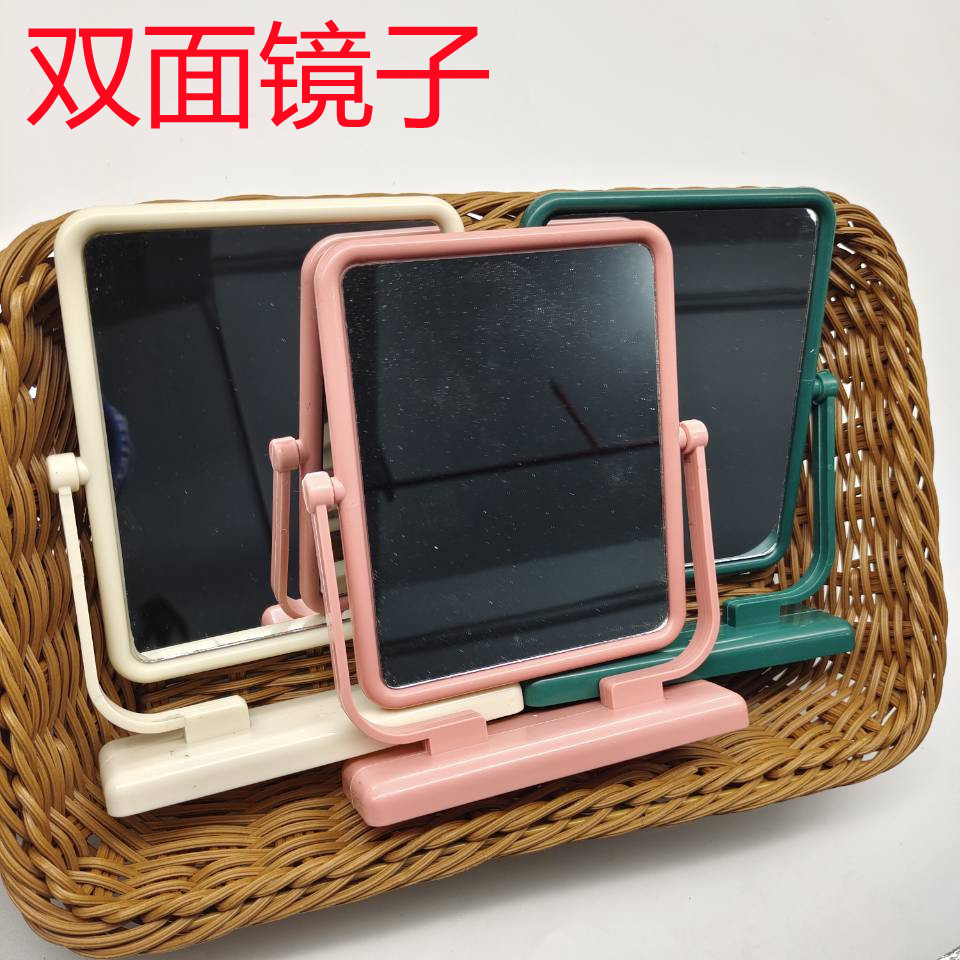 1033双面镜子支架方镜双面椭圆镜折叠玻璃镜子台式镜子化妆镜台镜