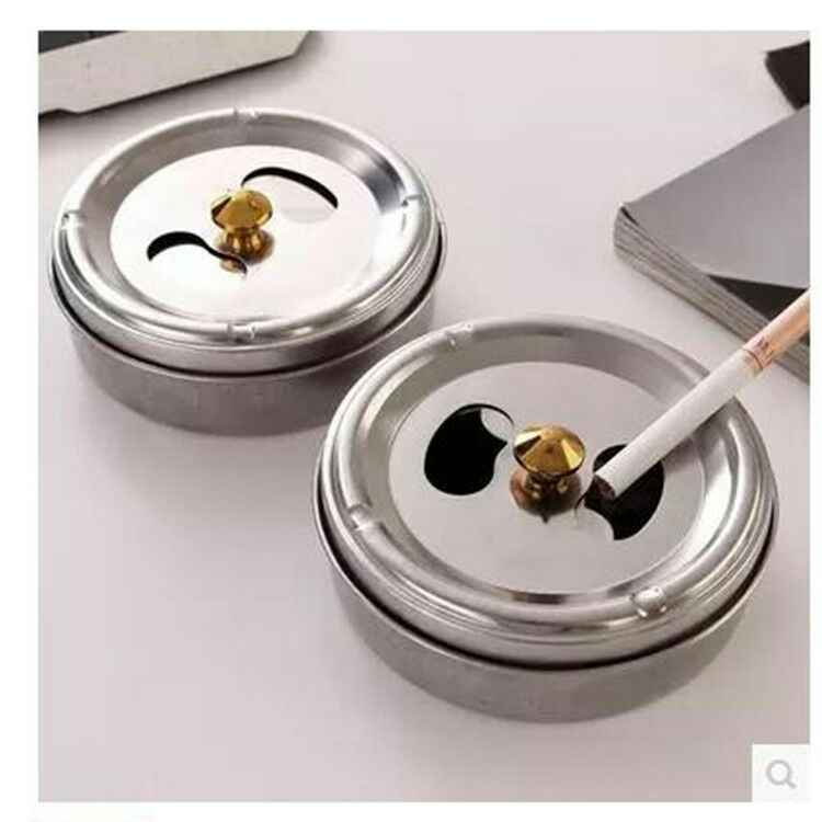 新款创意可旋转防风烟灰缸 金属不锈钢防烫烟缸 圆形带盖烟灰缸