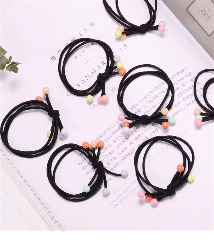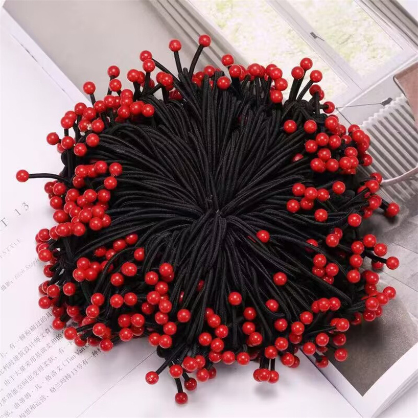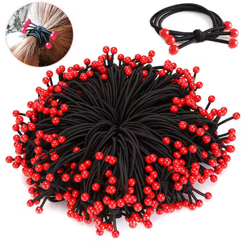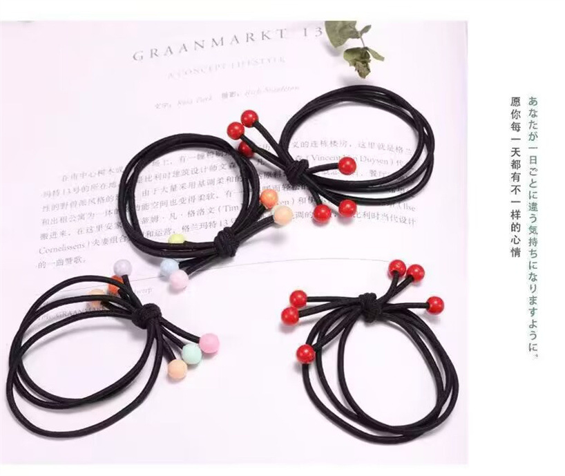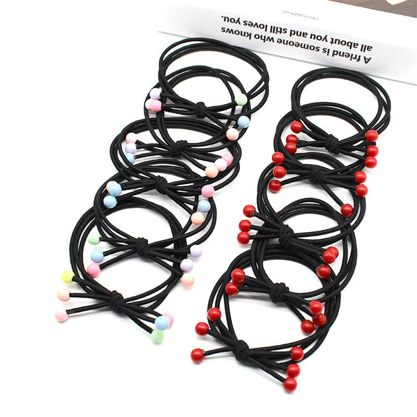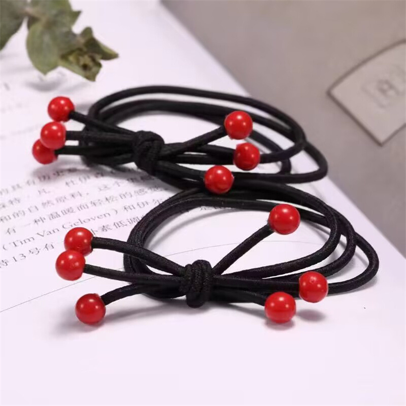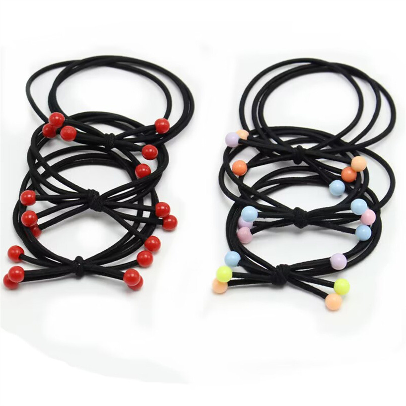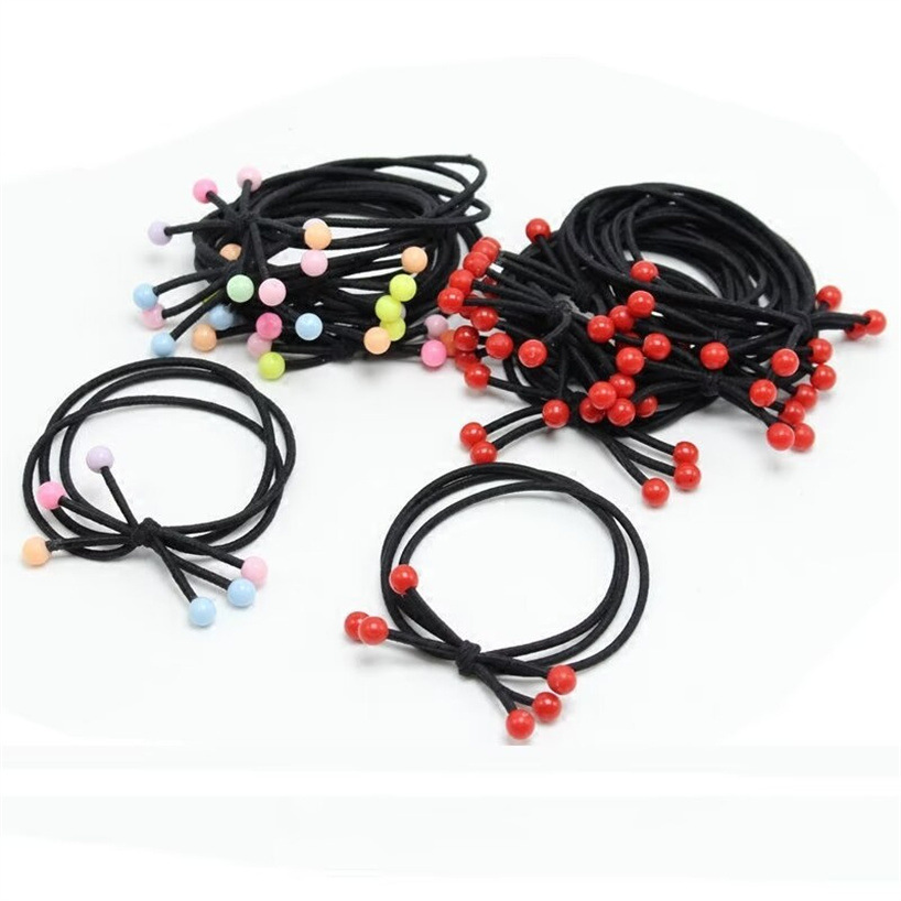 三合一红珠头绳三股皮筋彩珠发圈红珠发饰扎头发皮筋一元饰品专批