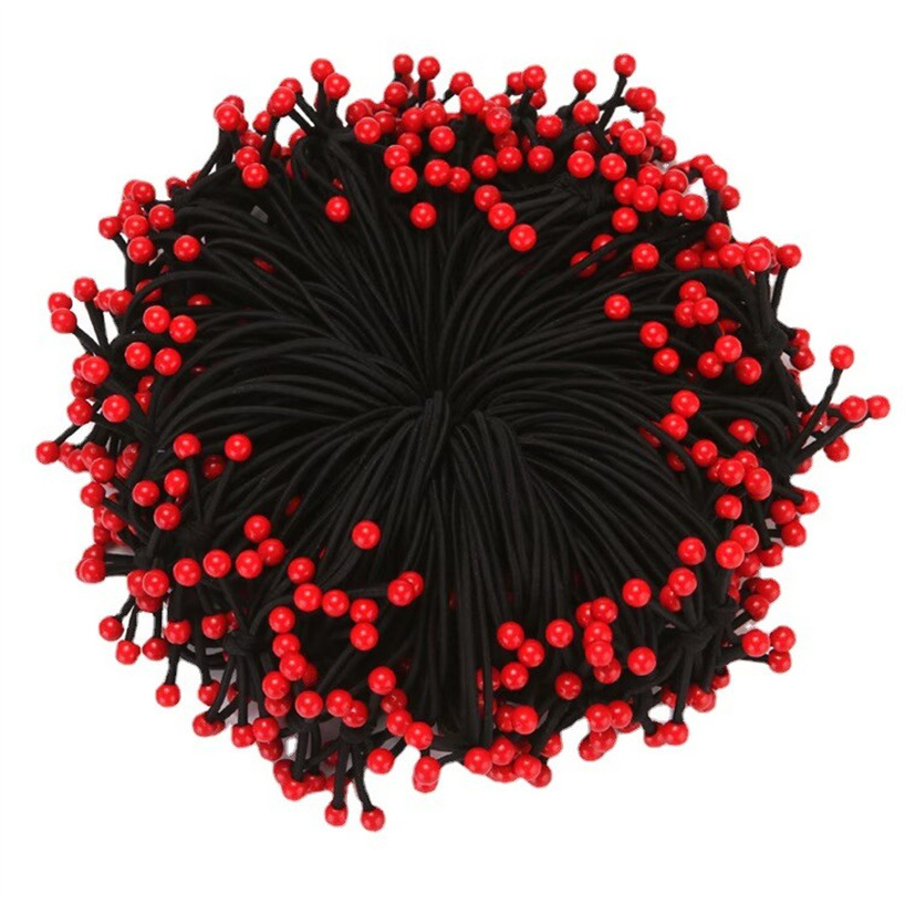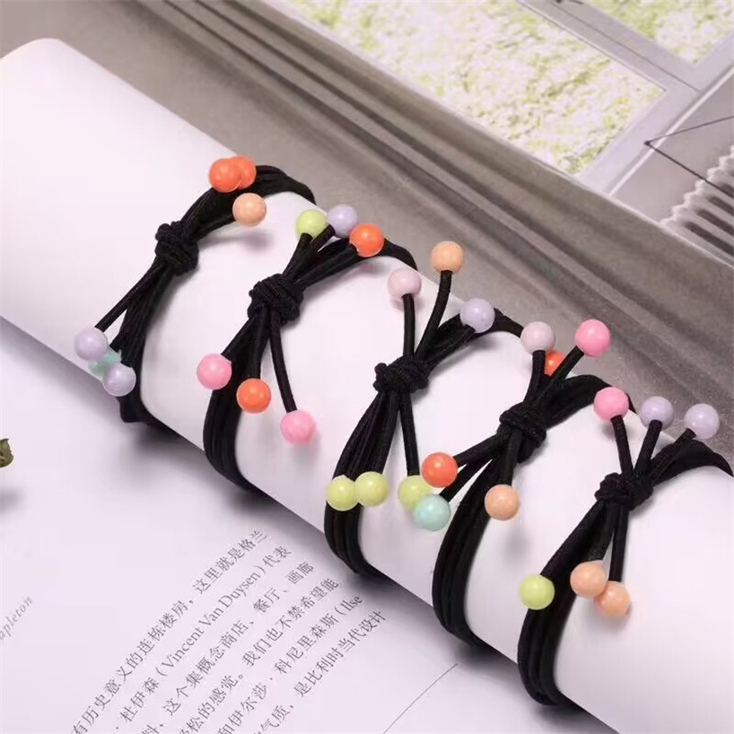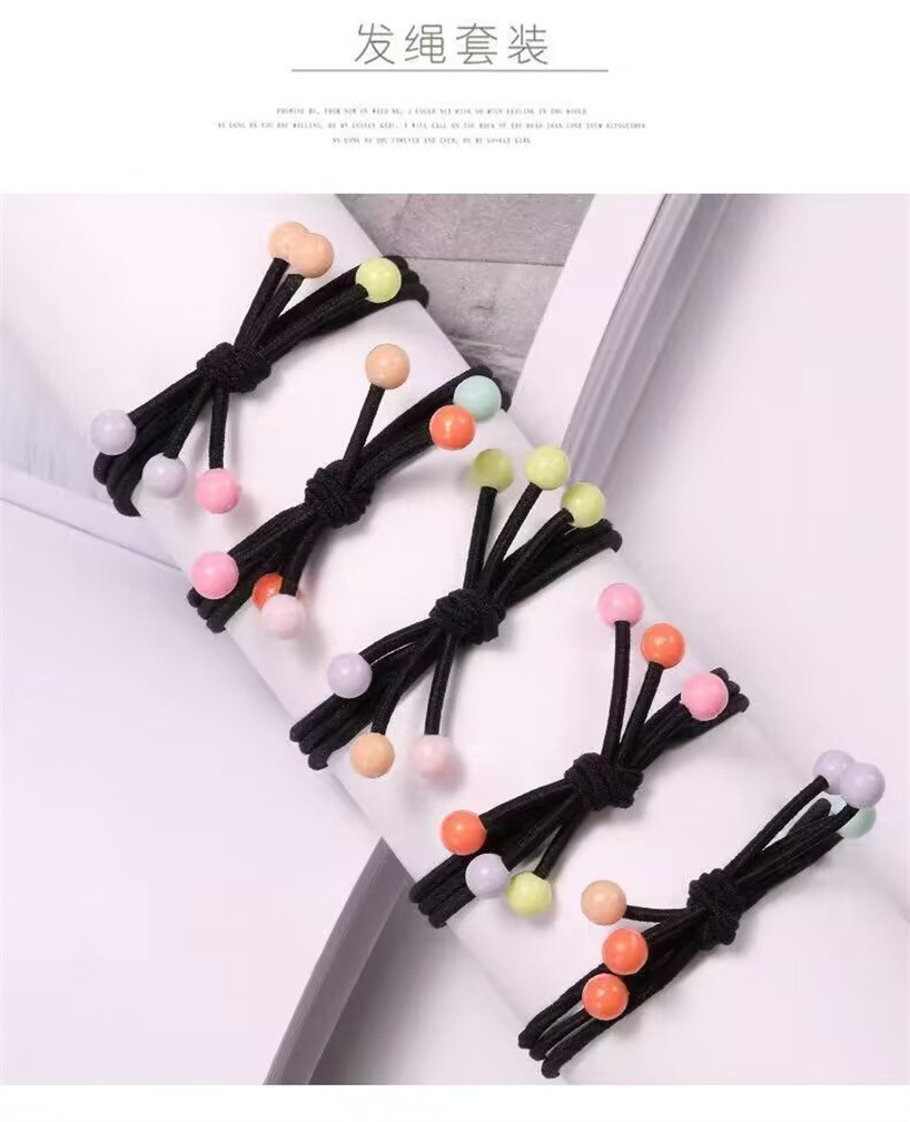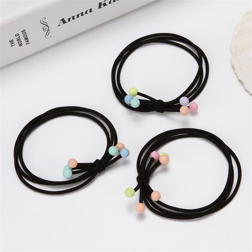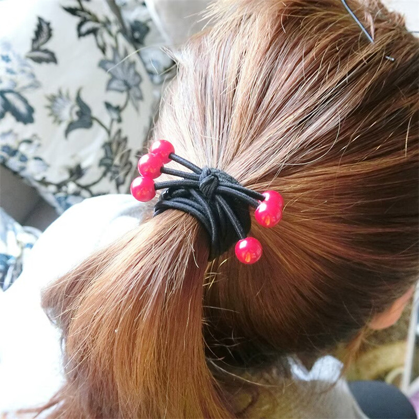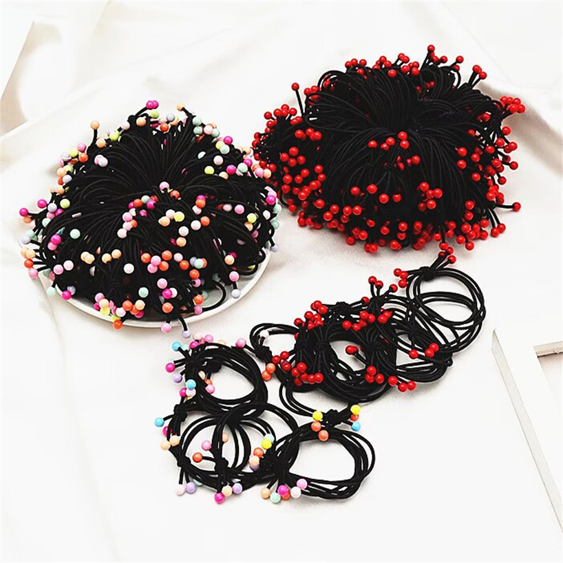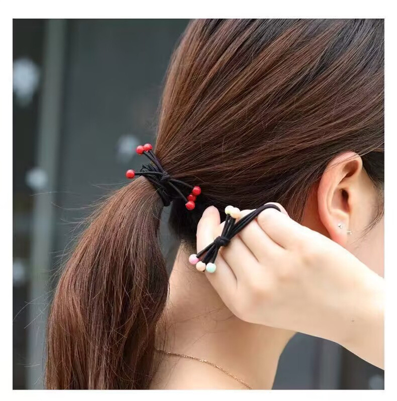 三合一红珠头绳三股皮筋彩珠发圈红珠发饰扎头发皮筋一元饰品专批