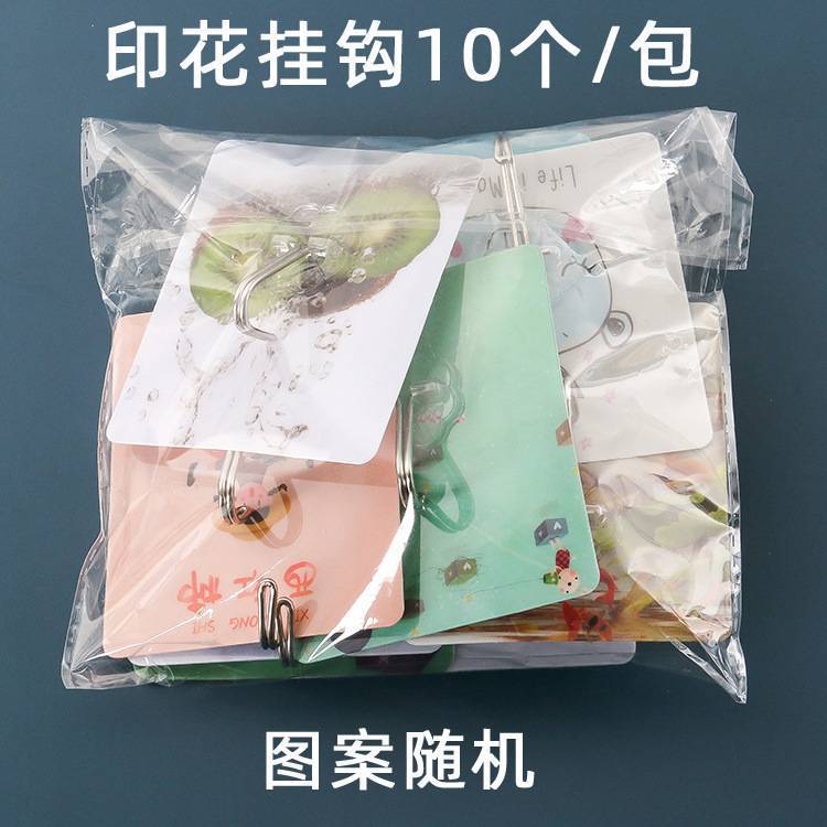 袋装10个粘钩透明无痕粘钩 亚克力粘钩魔力免钉印花黏胶挂钩