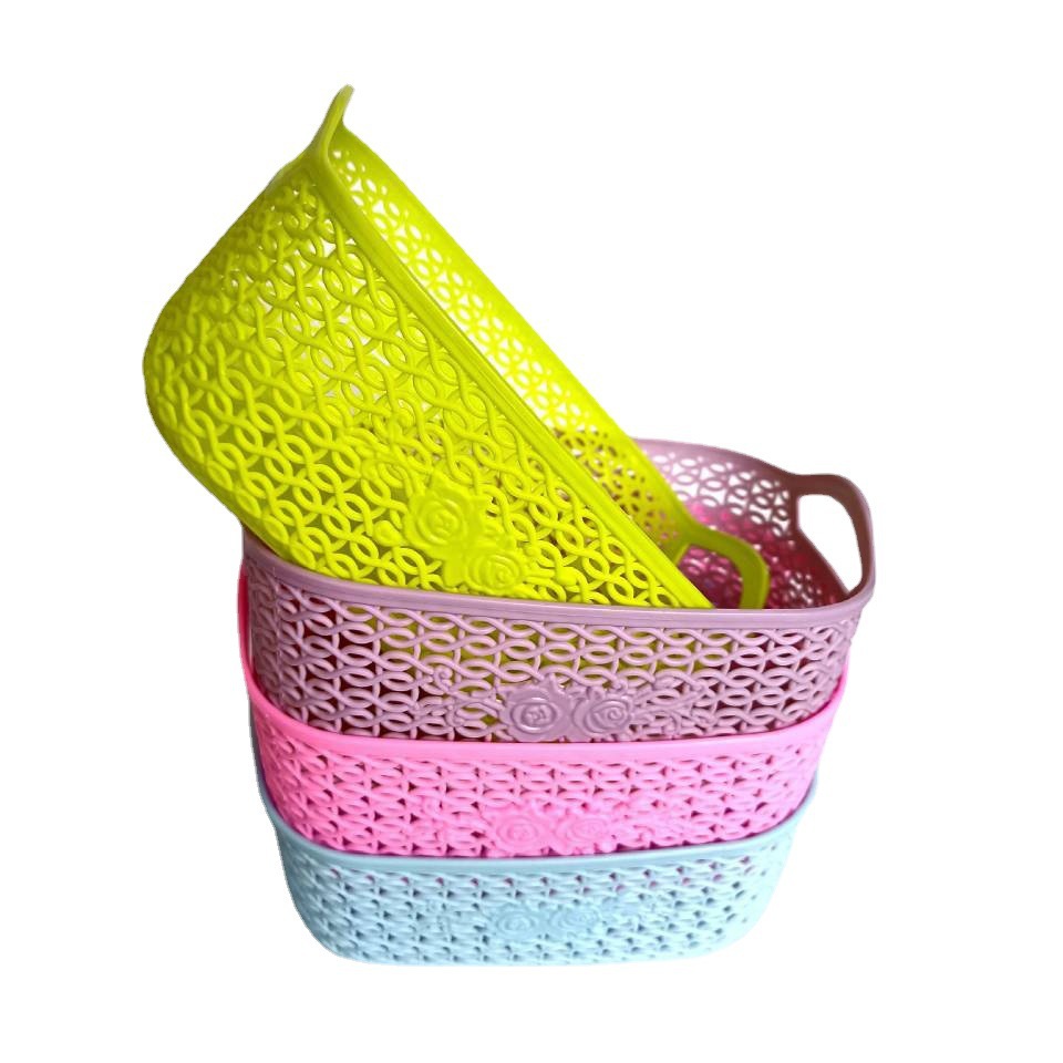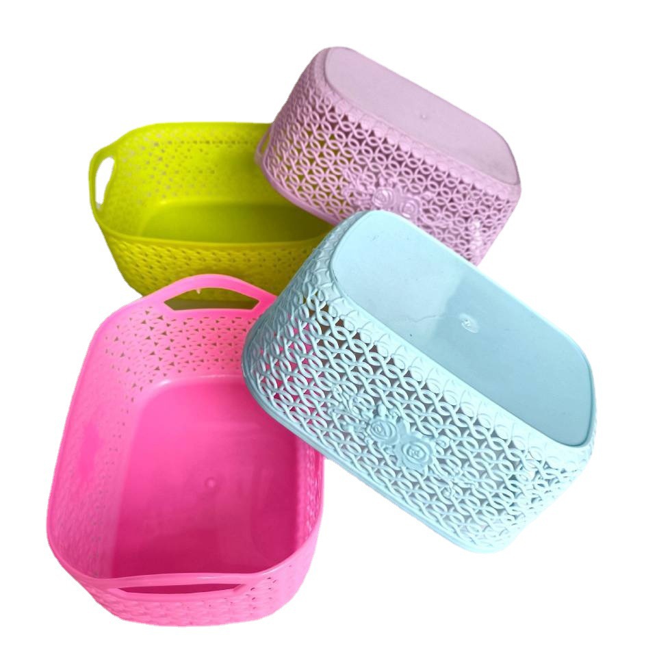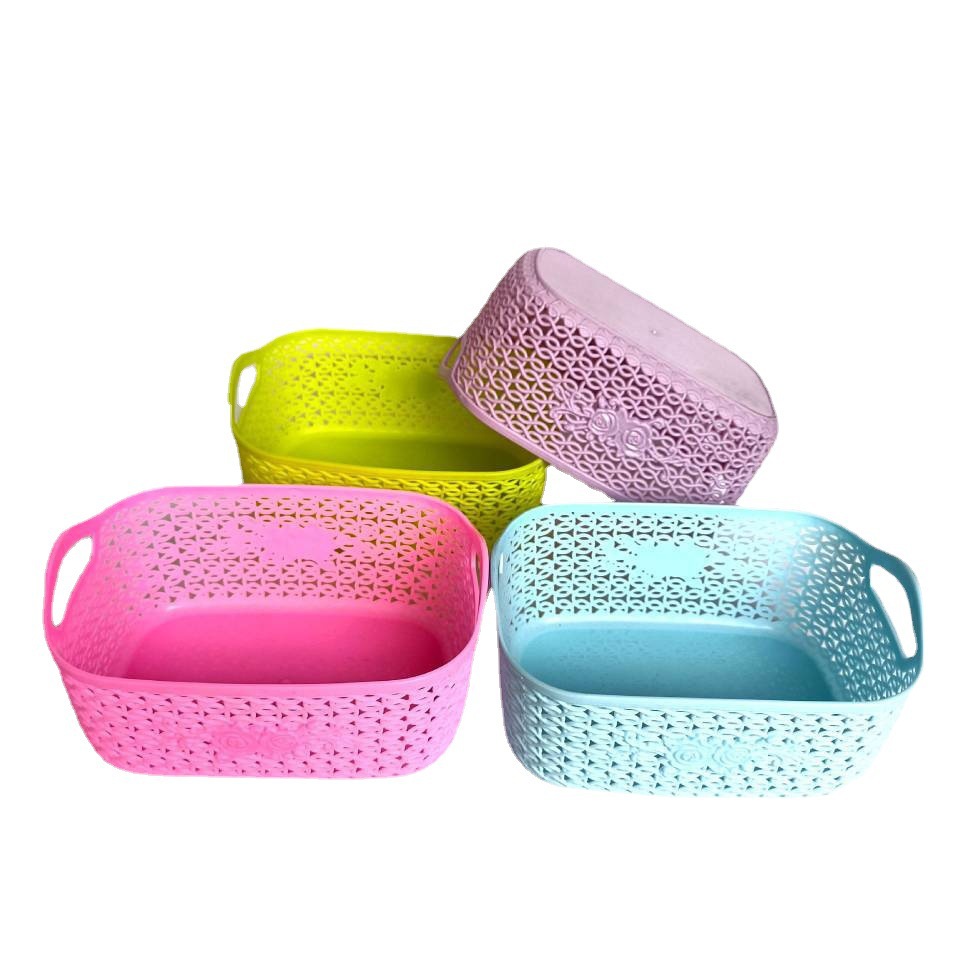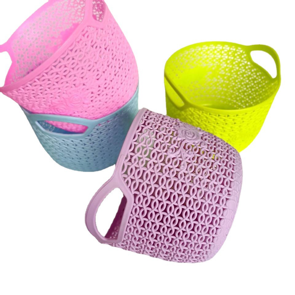 塑料带耳储物篮子 方形置物筐圆形手提收纳筐 化妆品饰品桌面整理