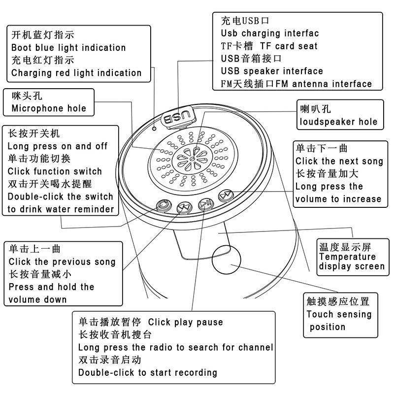 新款智能水杯 304不锈钢测温水杯蓝牙音箱创意保温杯刻字logo