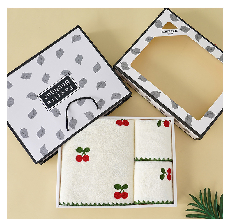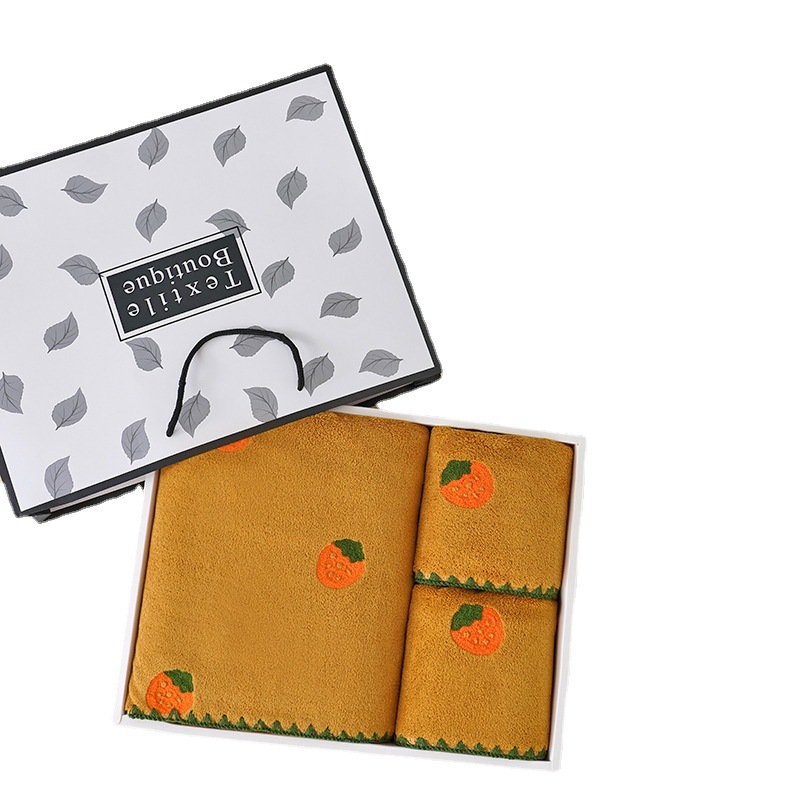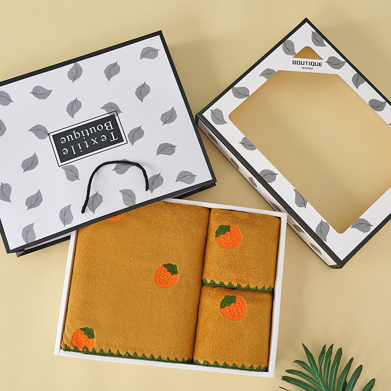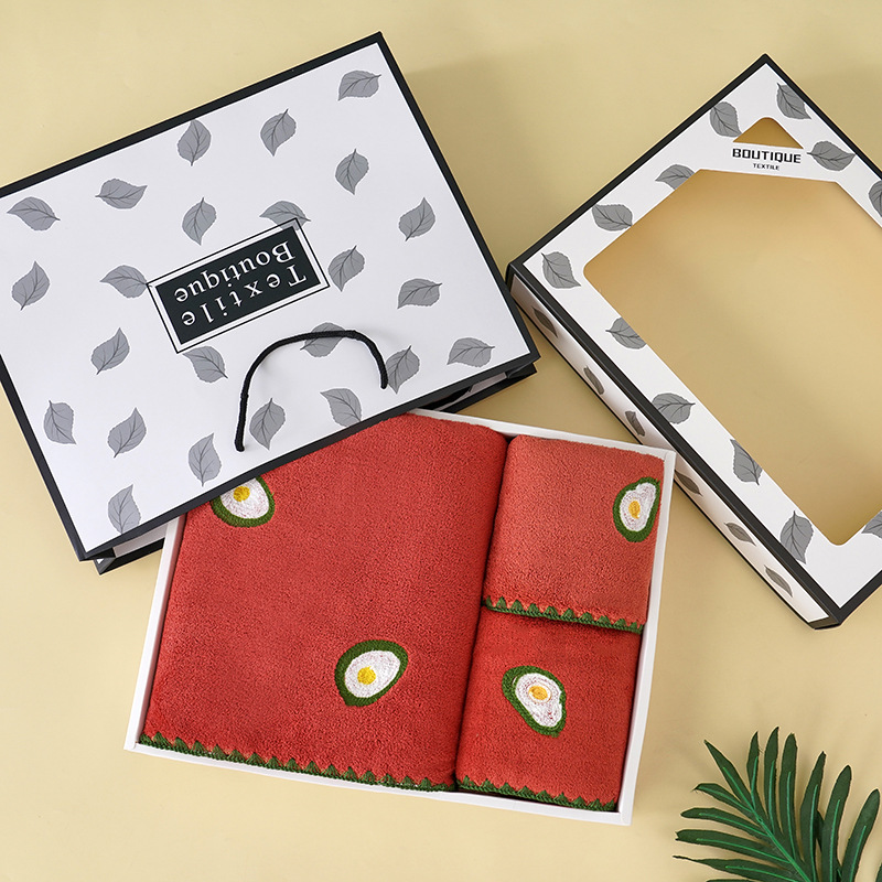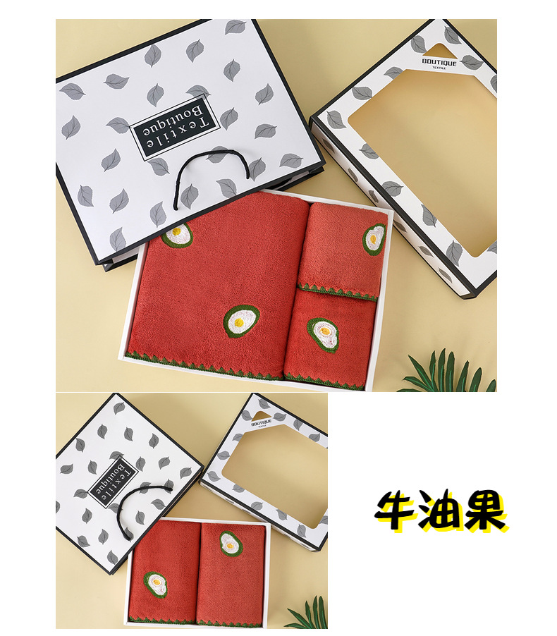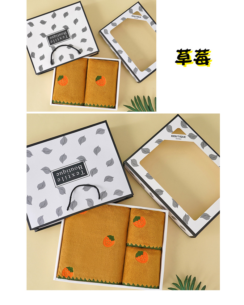 珊瑚绒草莓毛巾浴巾满绣三件套礼盒装公司结婚伴手礼品活动回礼