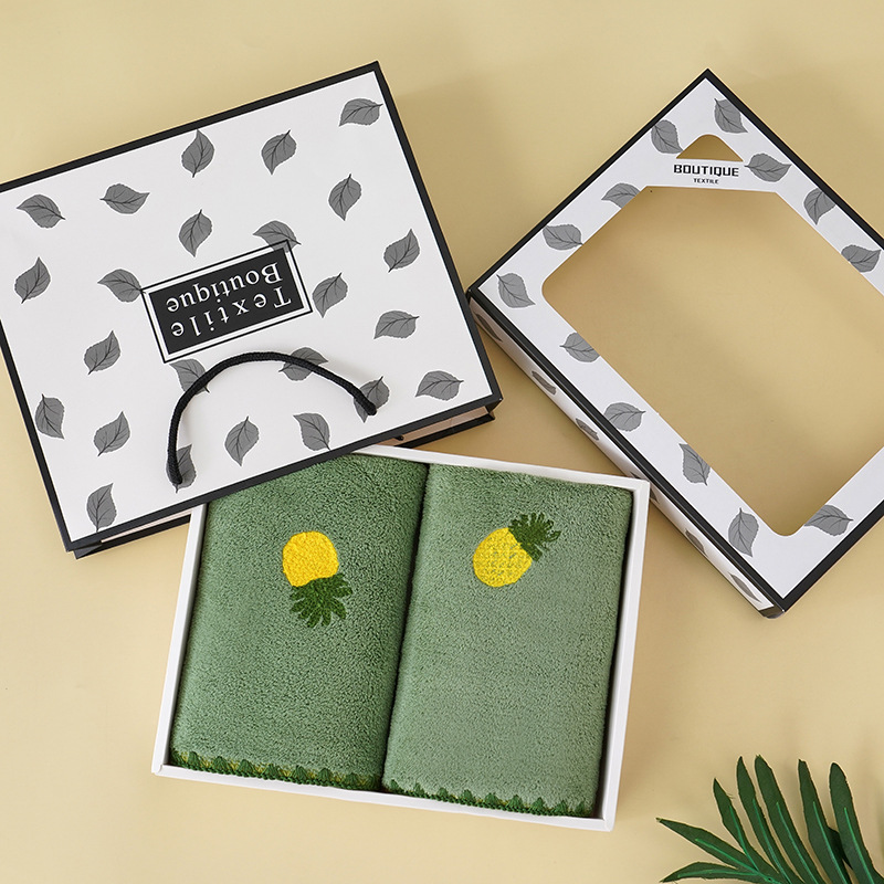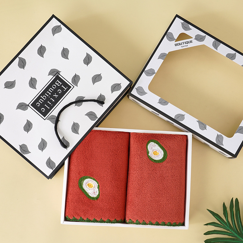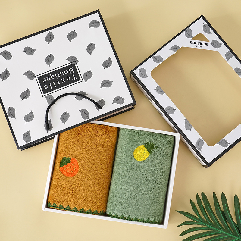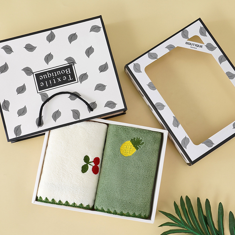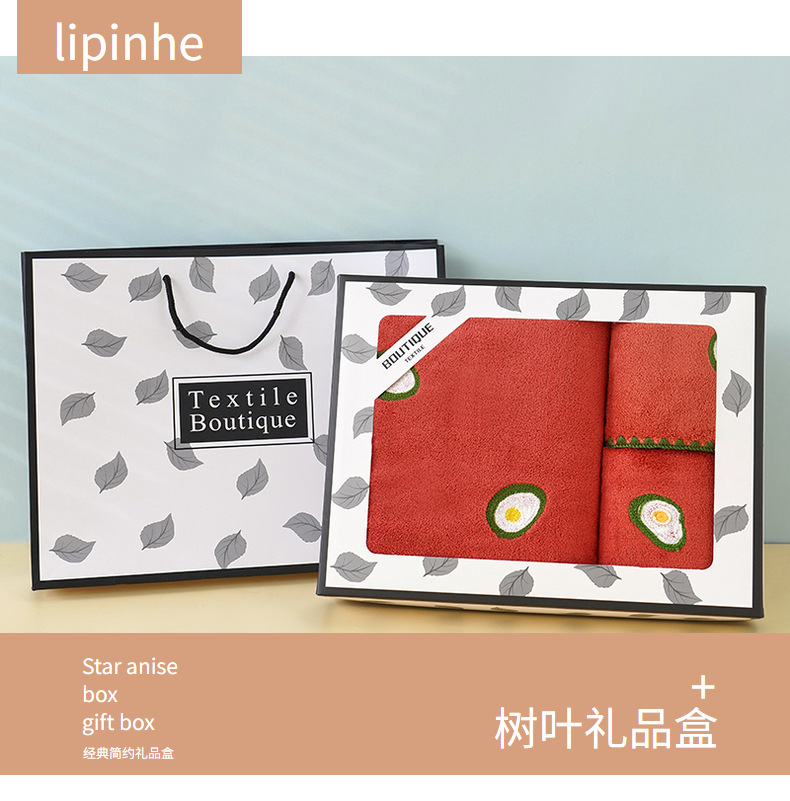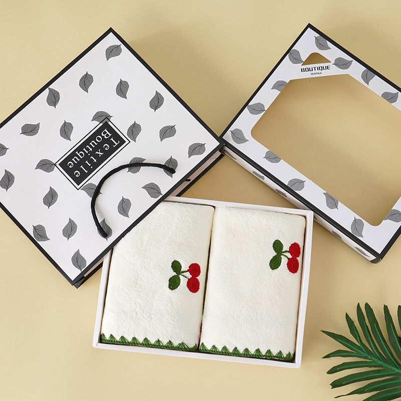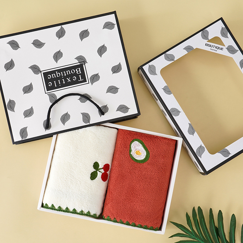 珊瑚绒草莓毛巾浴巾满绣三件套礼盒装公司结婚伴手礼品活动回礼