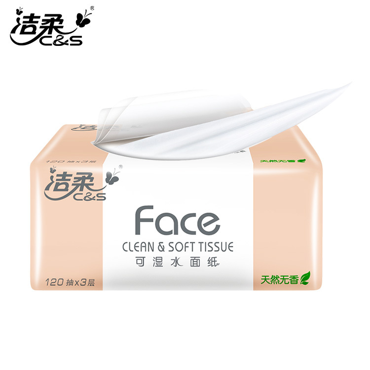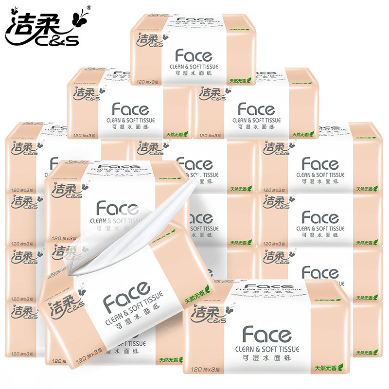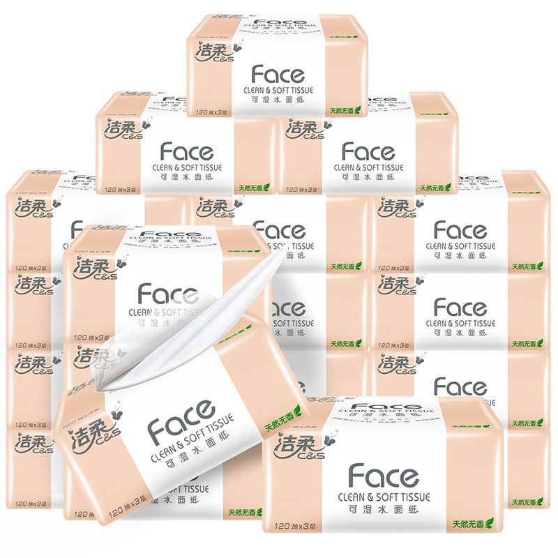 洁柔抽纸Face纸抽3层120抽餐巾纸纸巾20包家用整箱卫生纸批发代发