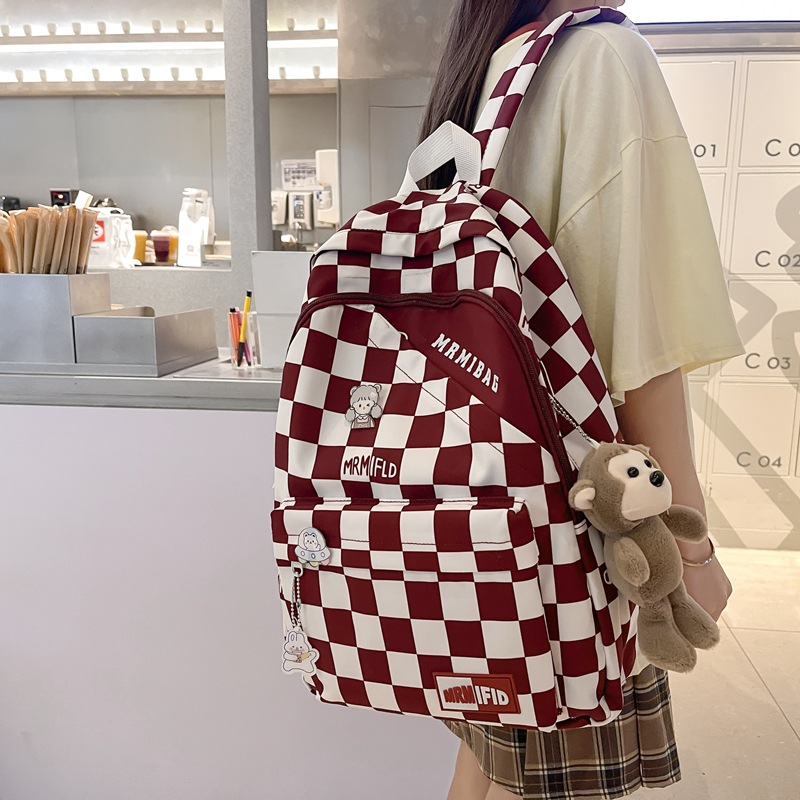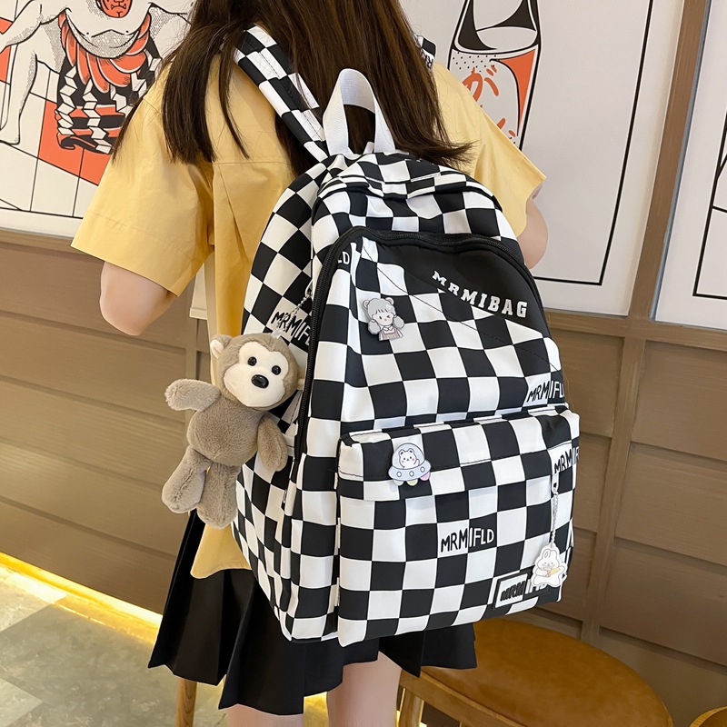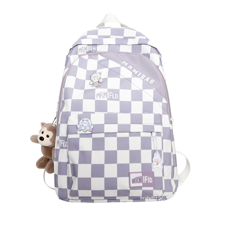 格子书包女初中生韩版高中生大容量双肩包小学生小清新轻便背包