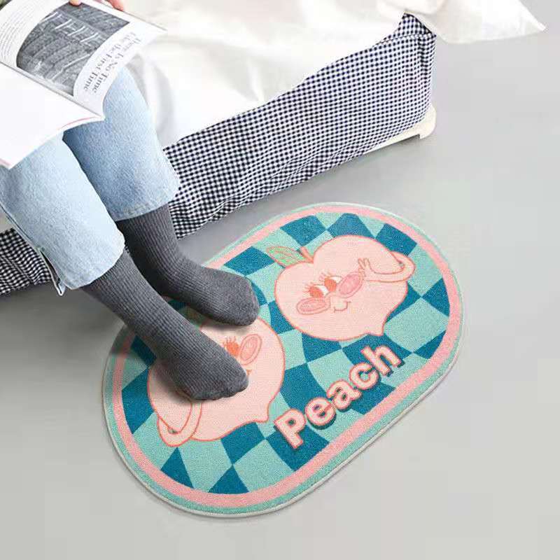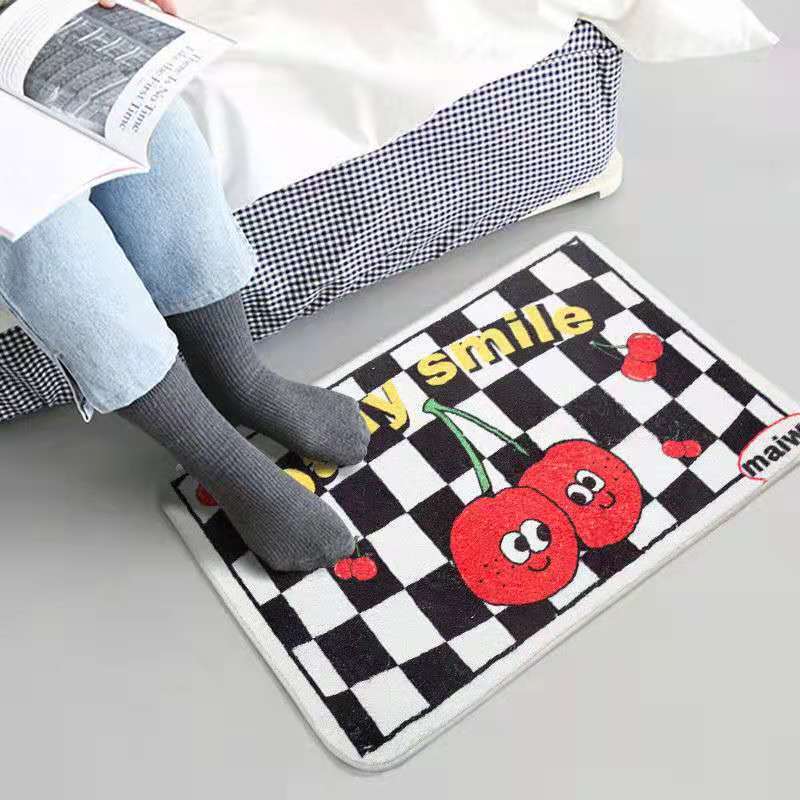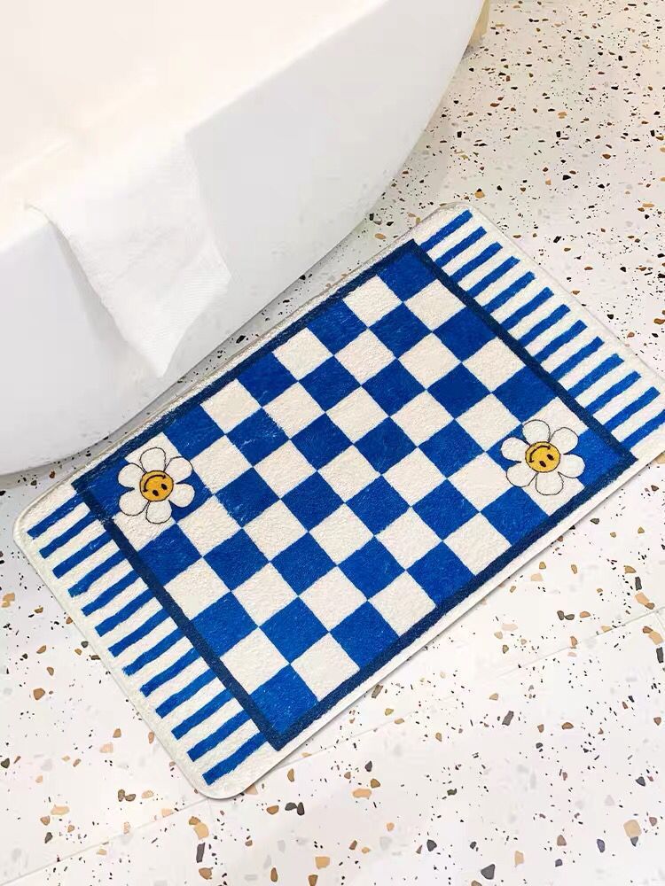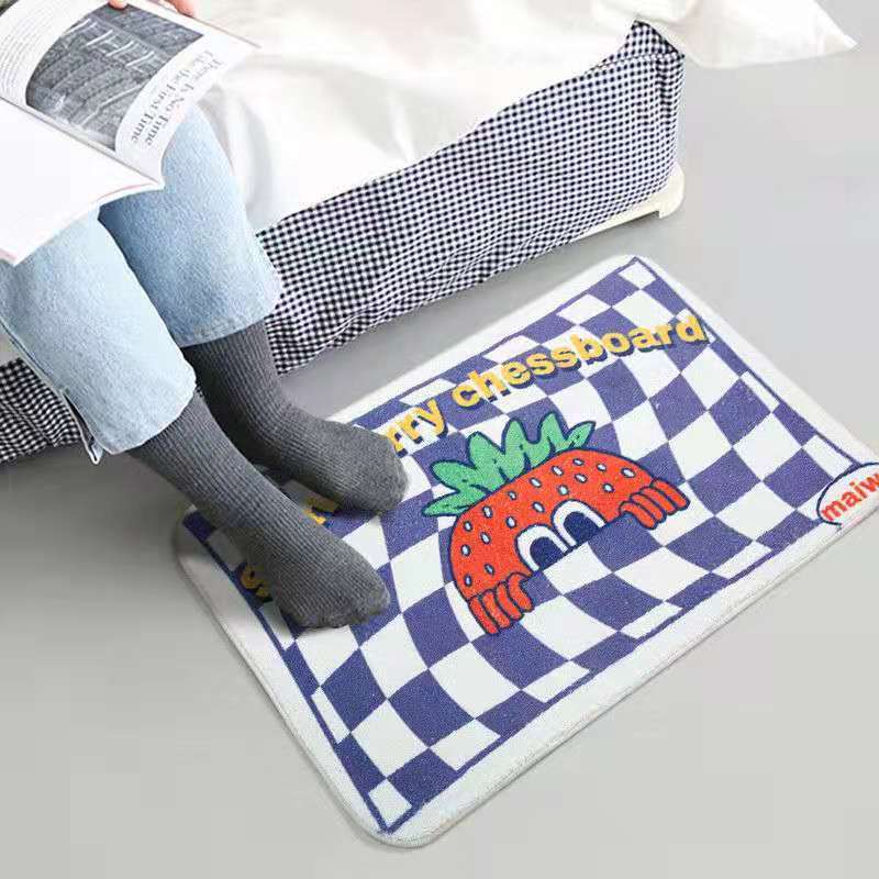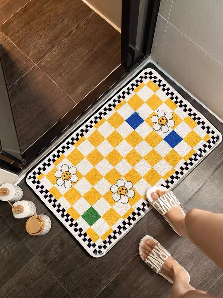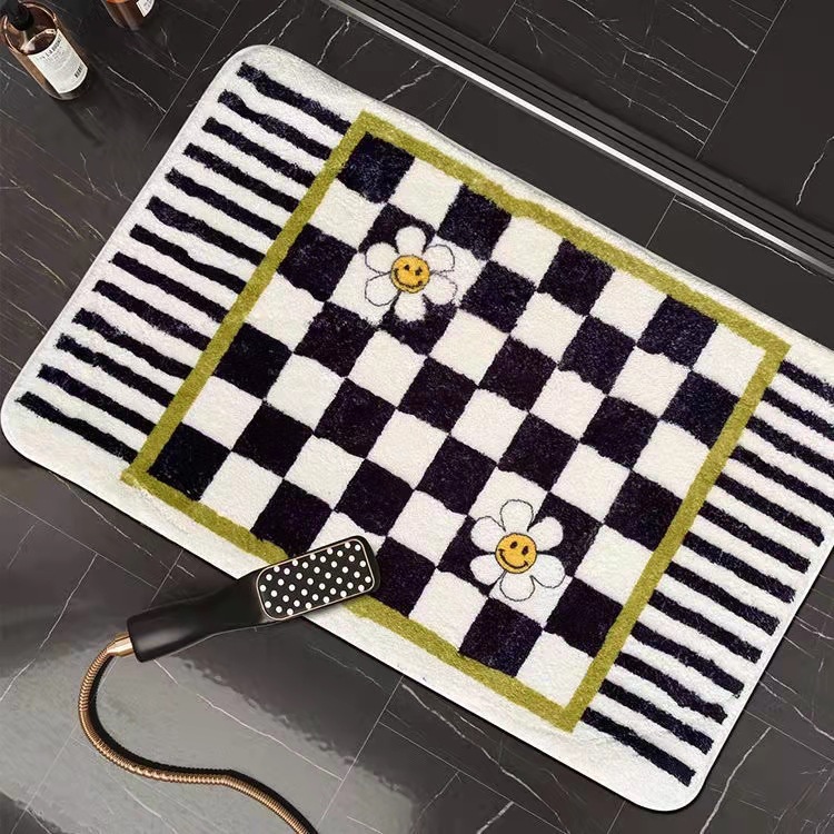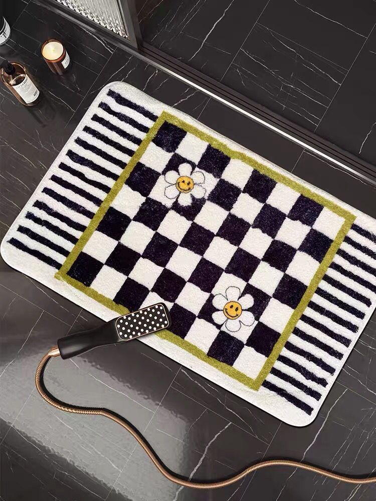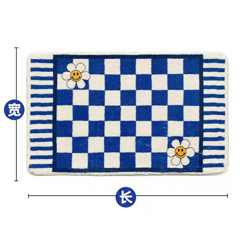 浴室地垫客厅家用地毯卧室茶几垫旋转方格对镜拍照毯可爱卡通地垫