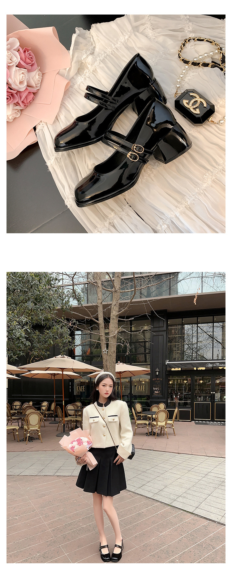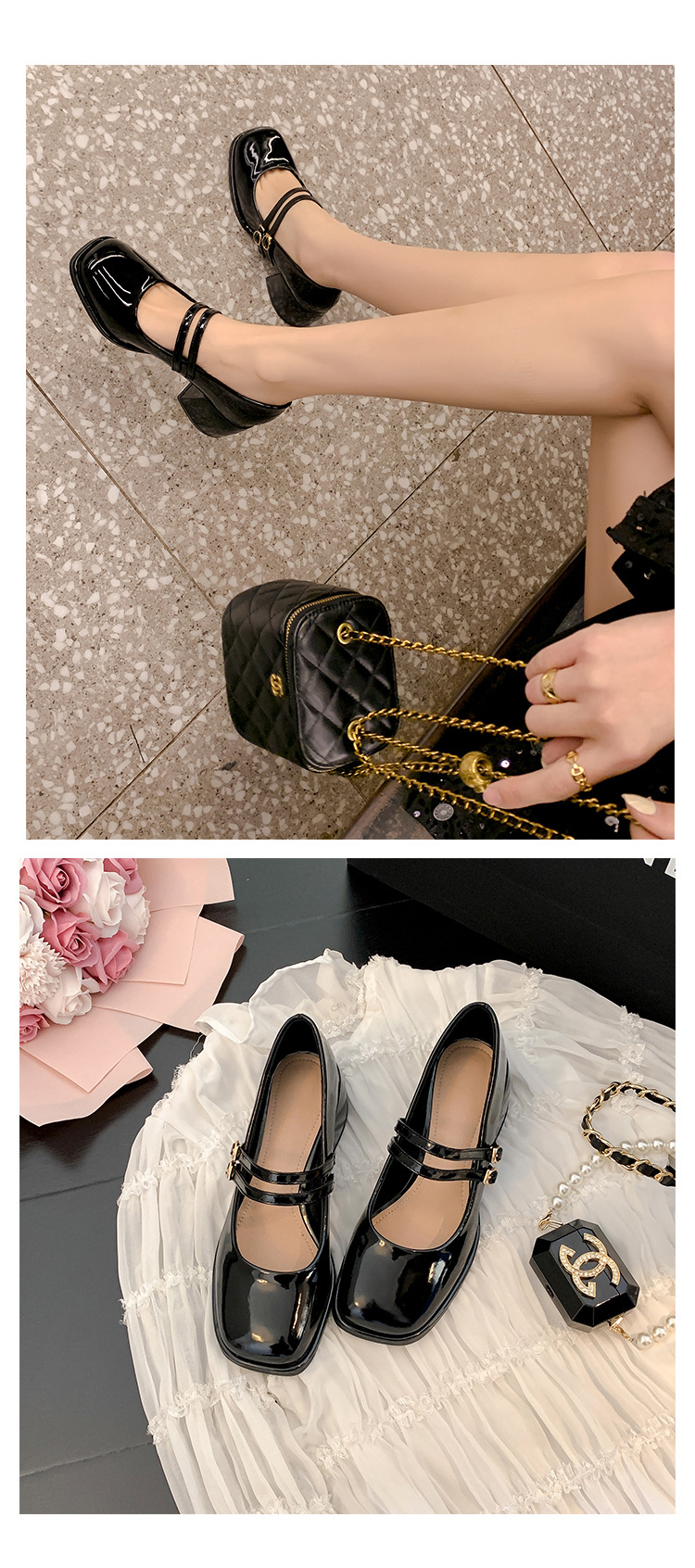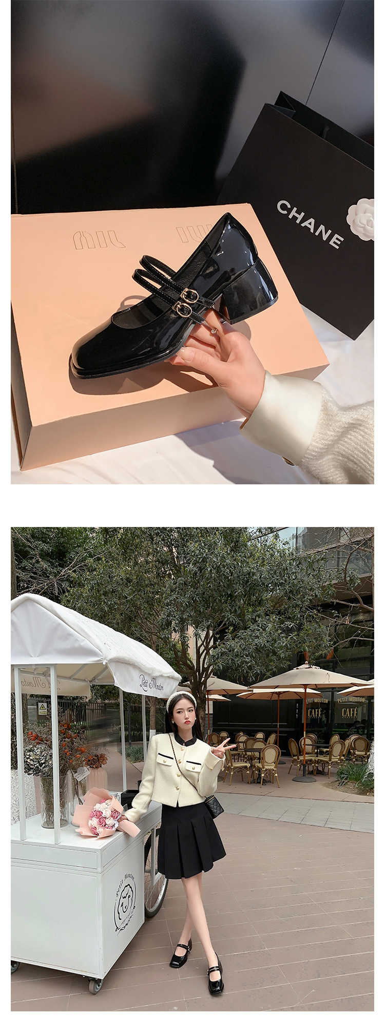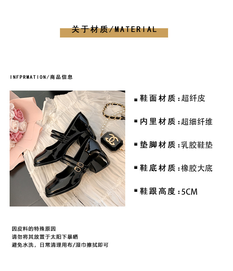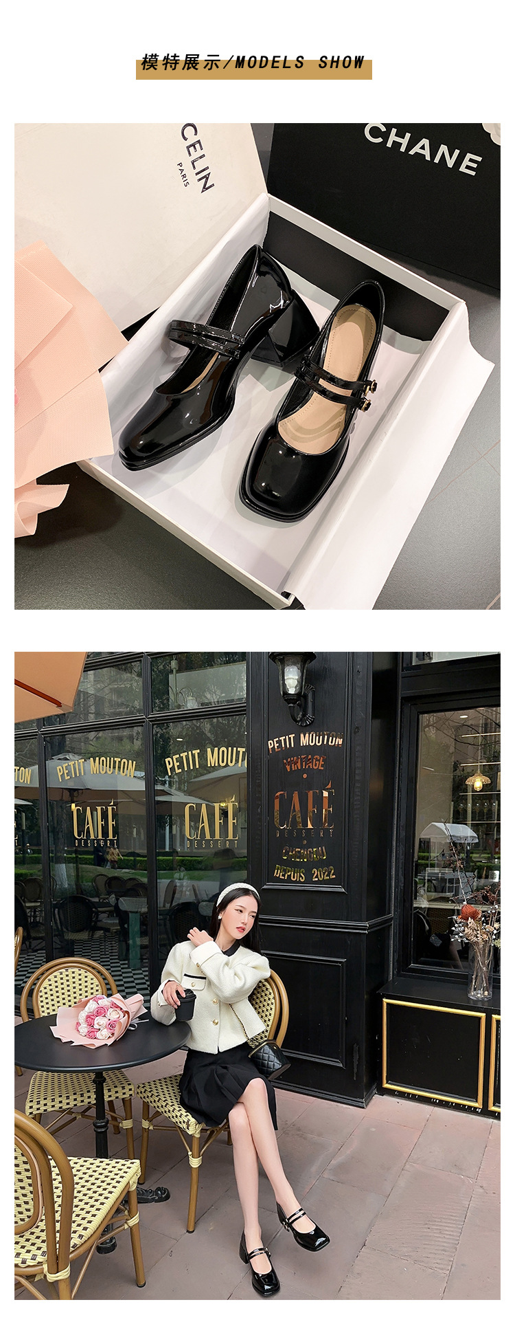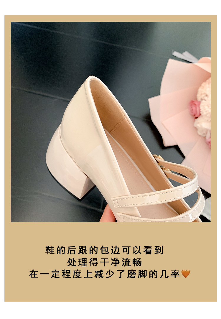 法式玛丽珍鞋女粗跟2023年新款浅口一字带学院风小皮鞋高跟单鞋女