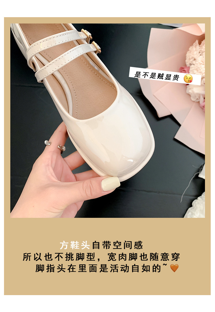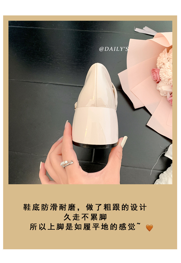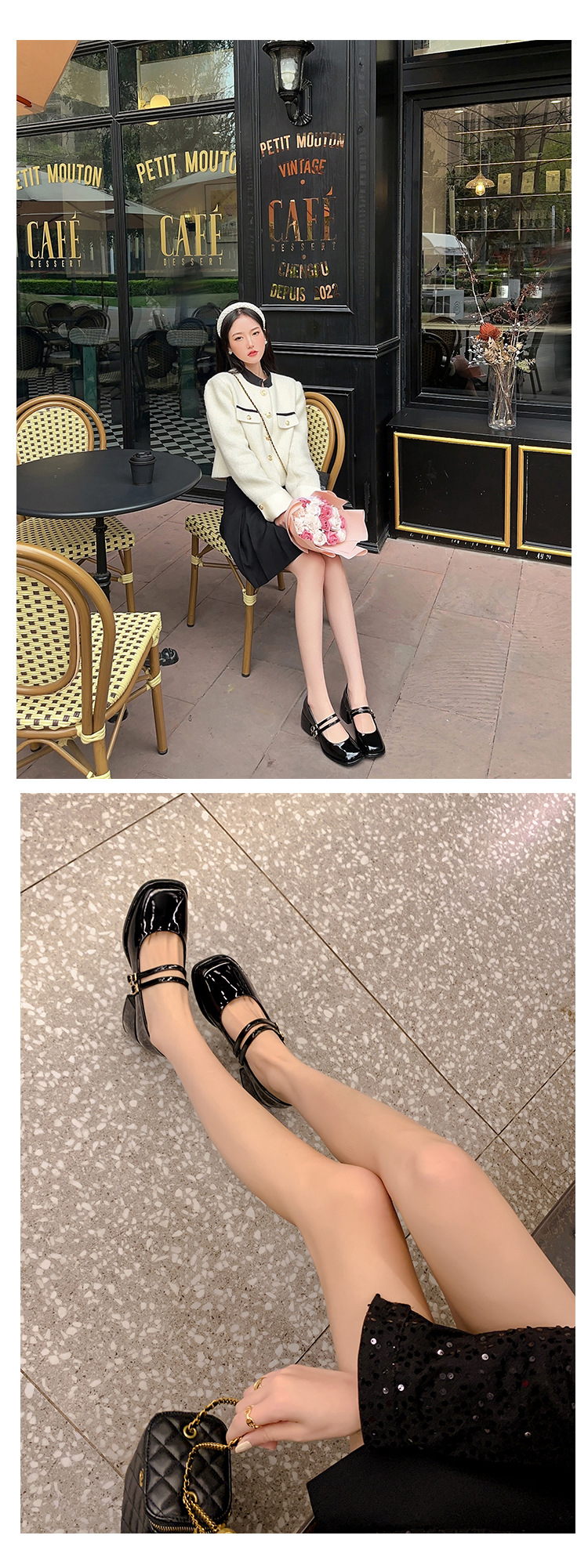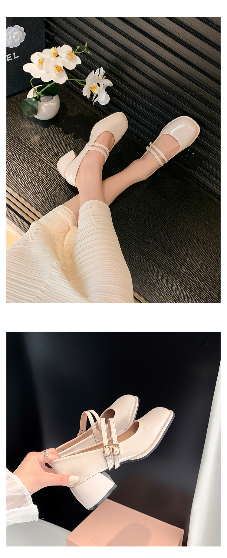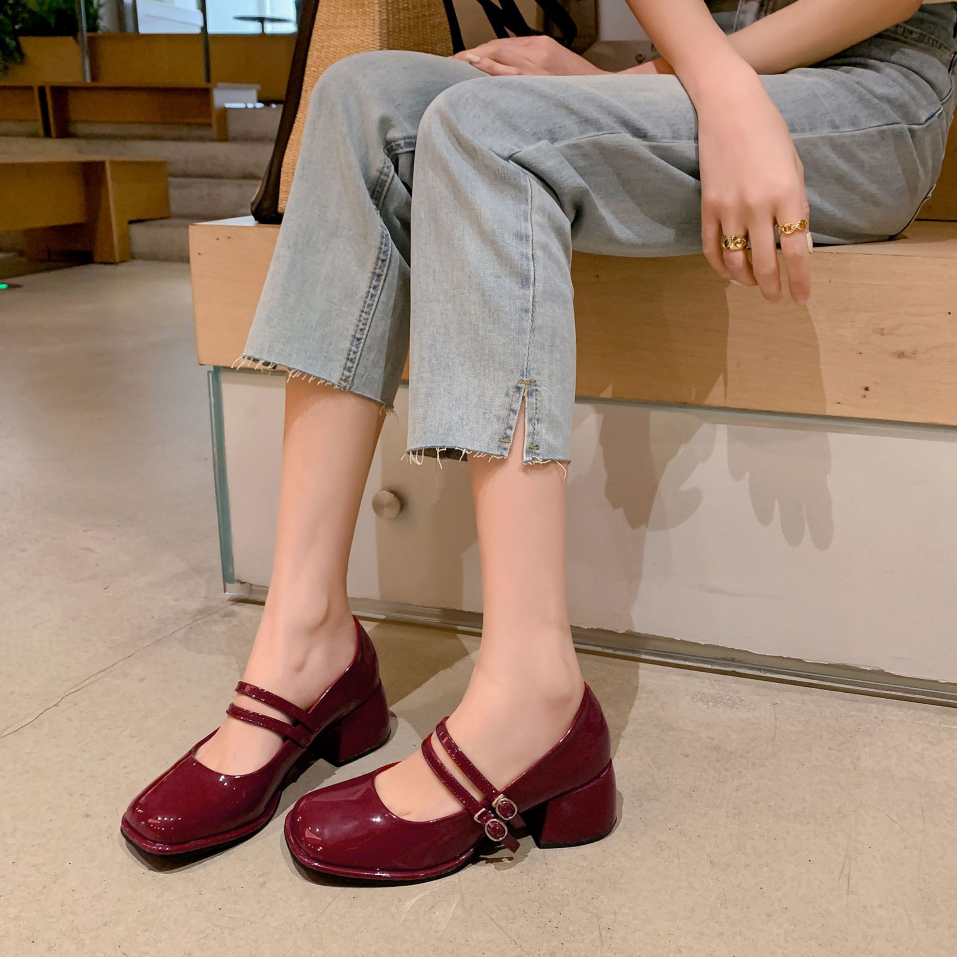 法式玛丽珍鞋女粗跟2023年新款浅口一字带学院风小皮鞋高跟单鞋女