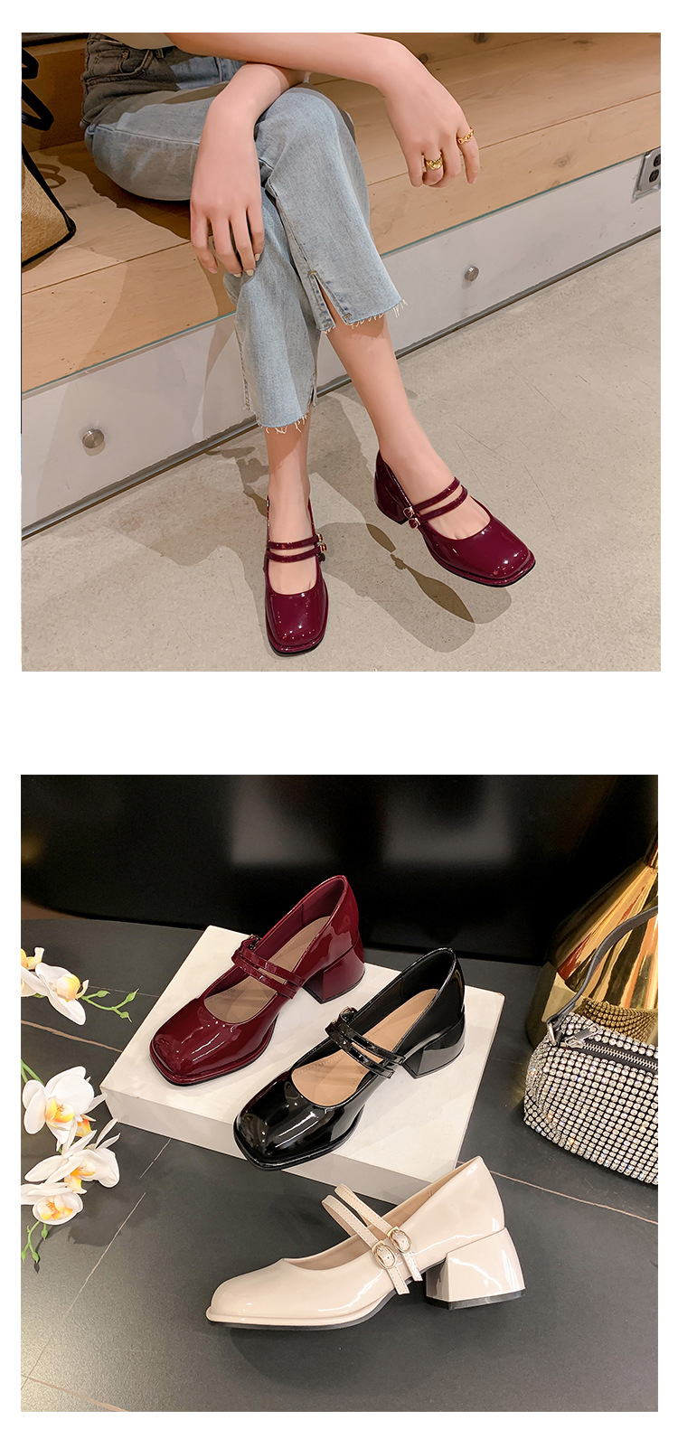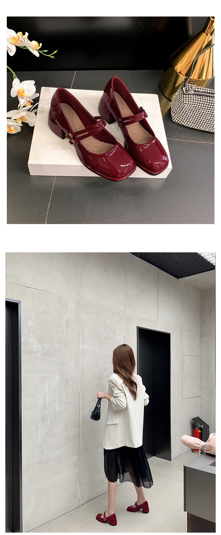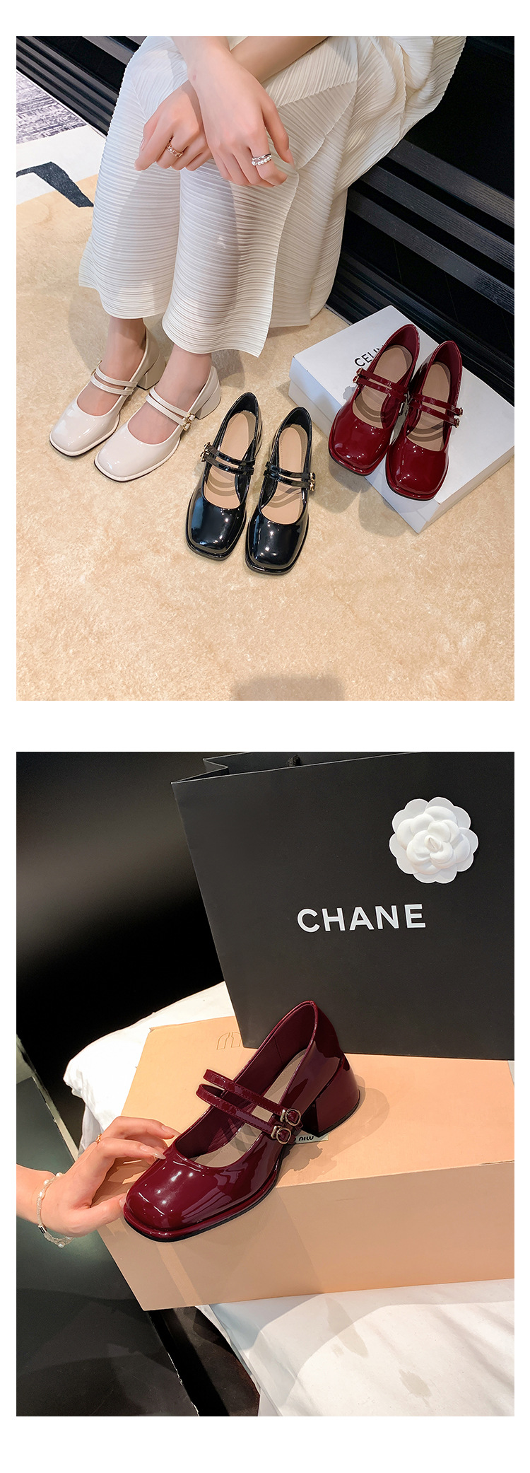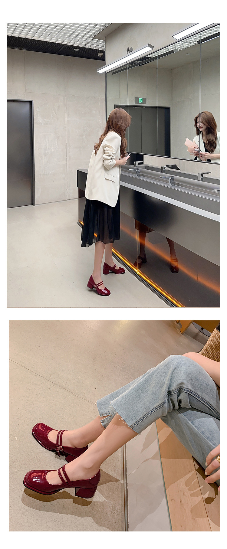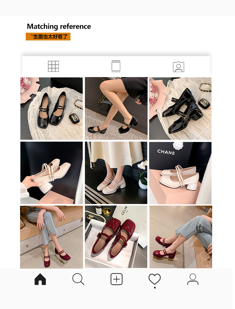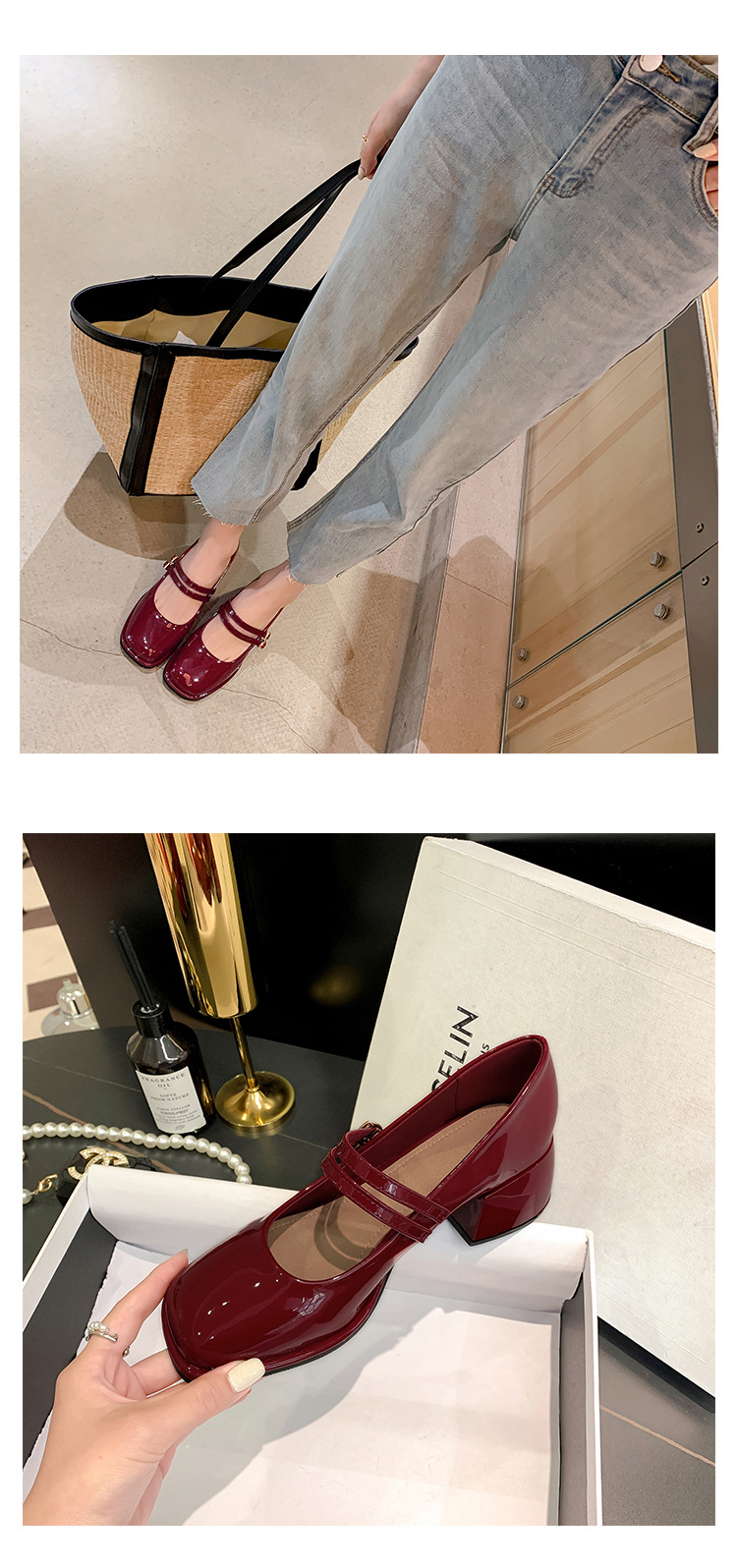 法式玛丽珍鞋女粗跟2023年新款浅口一字带学院风小皮鞋高跟单鞋女