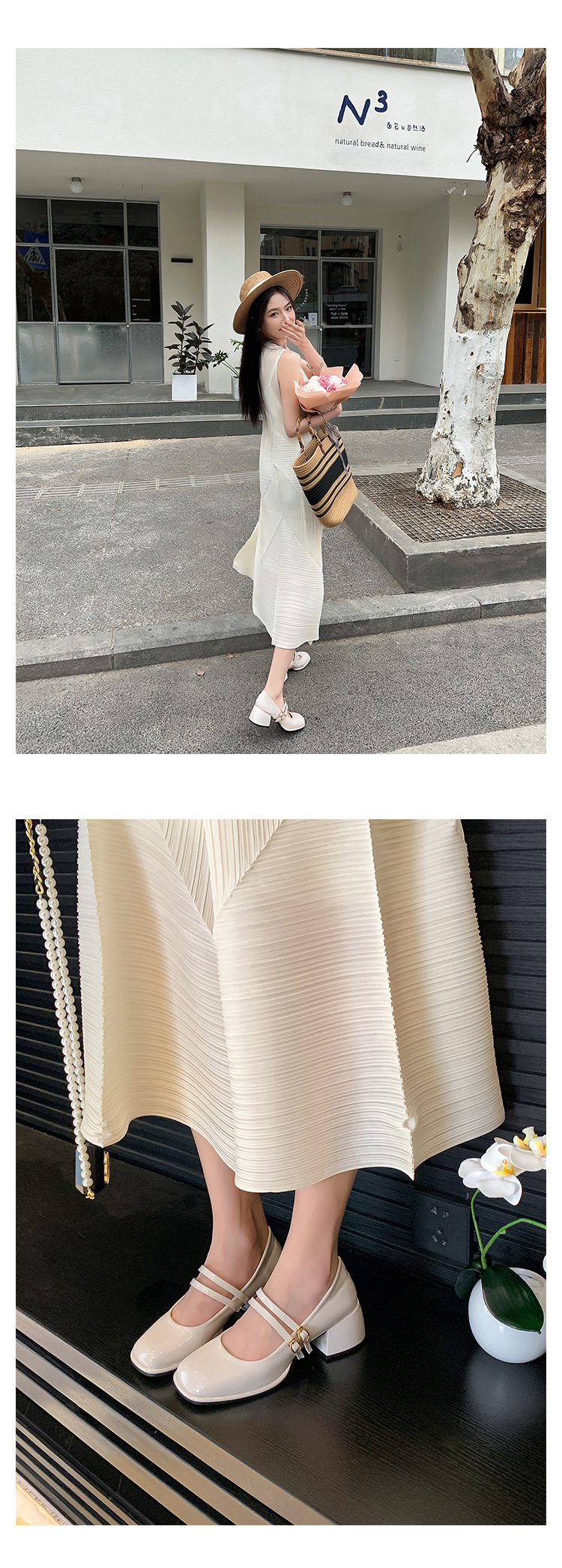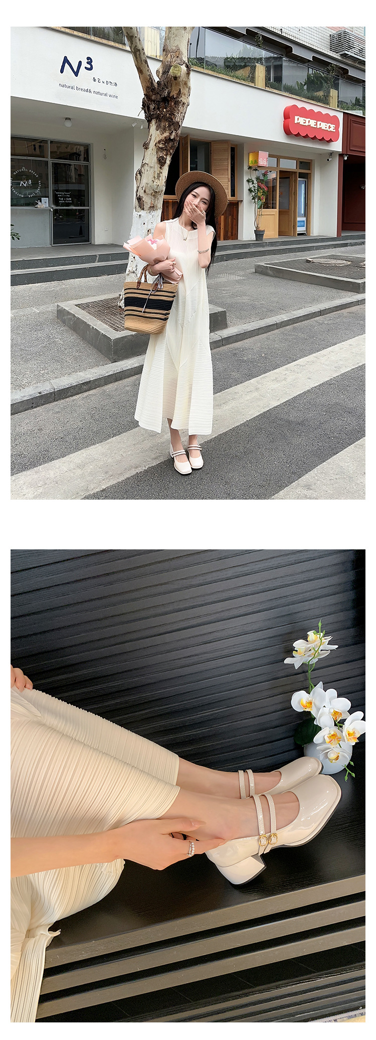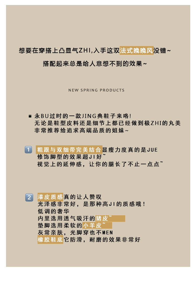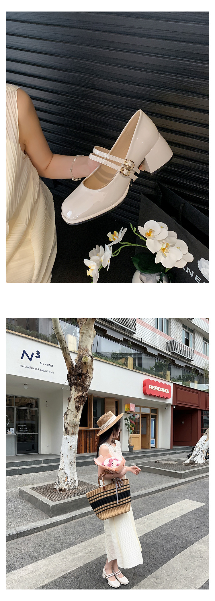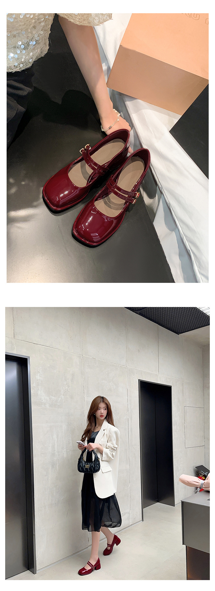 法式玛丽珍鞋女粗跟2023年新款浅口一字带学院风小皮鞋高跟单鞋女