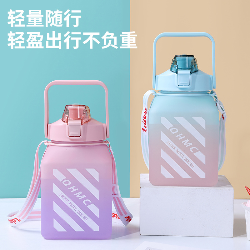 日用 PP水壶 渐变方型 塑料水杯糖罐磨砂礼品杯大容量运动水瓶