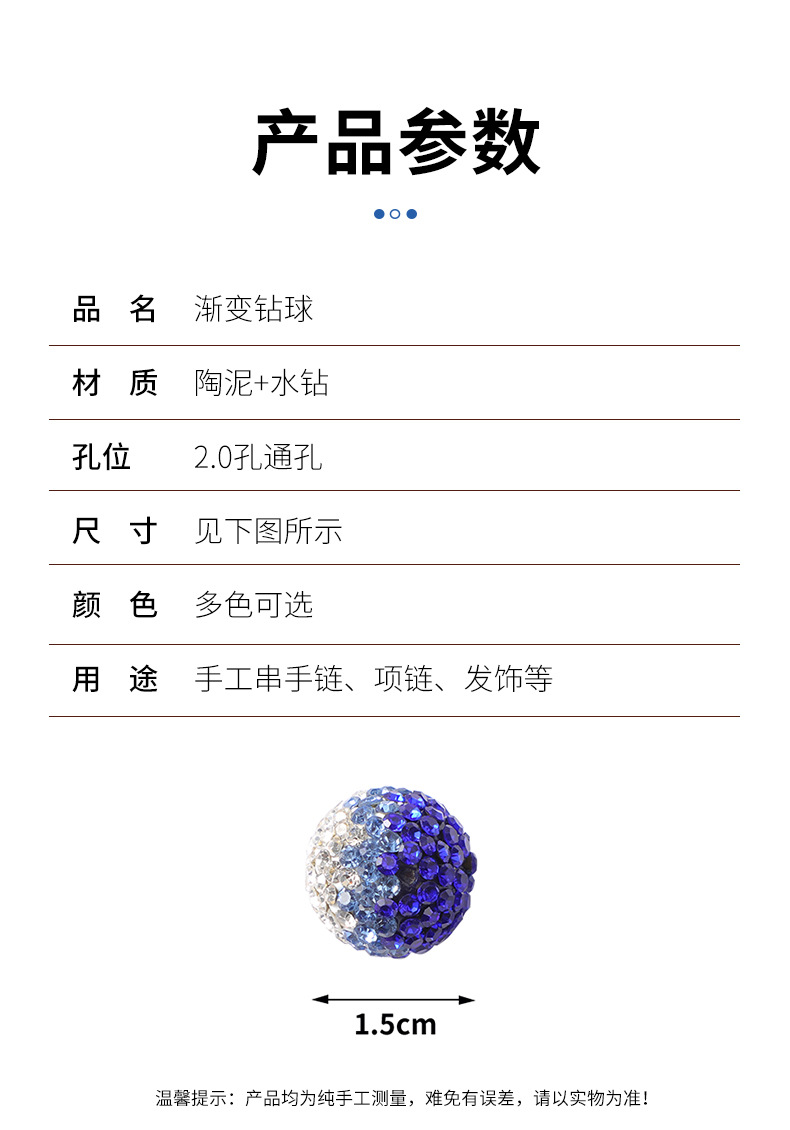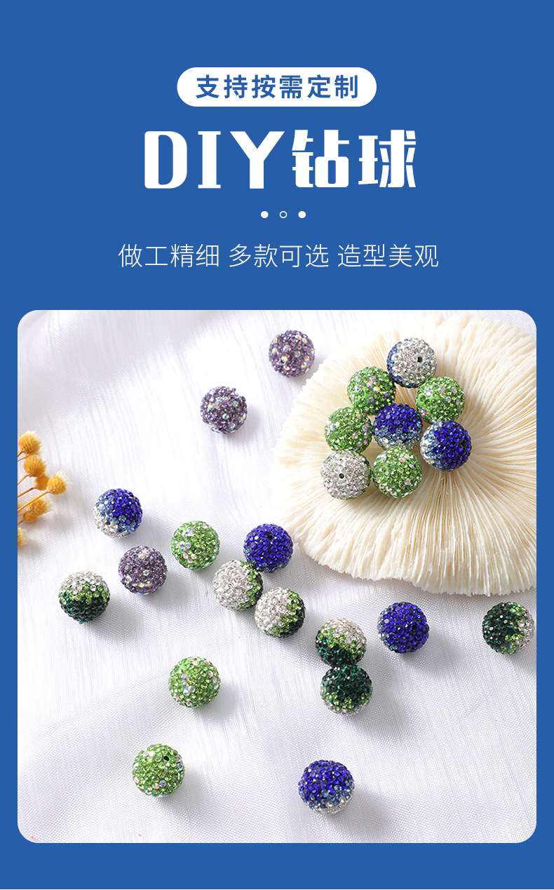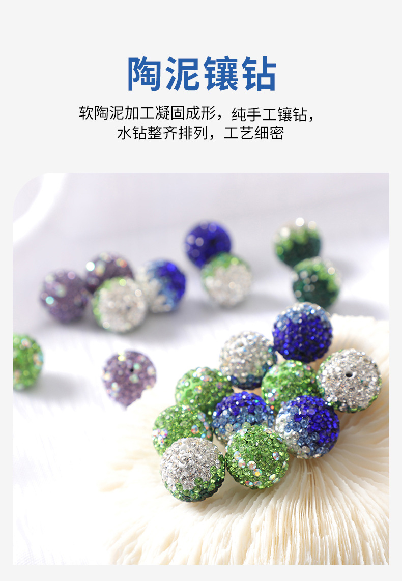 外贸爆款16厘6排直孔渐变满钻DIY手链项链渐变ab软陶泥钻球珠子