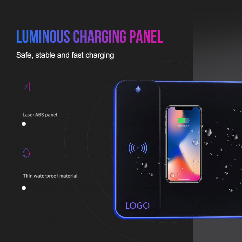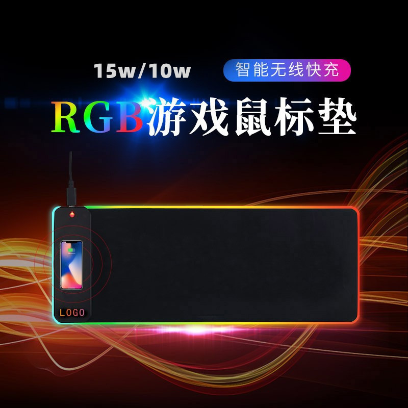 跨境无线充发光鼠标垫电竞游戏办公超大键盘垫rgb鼠标垫厂家批发
