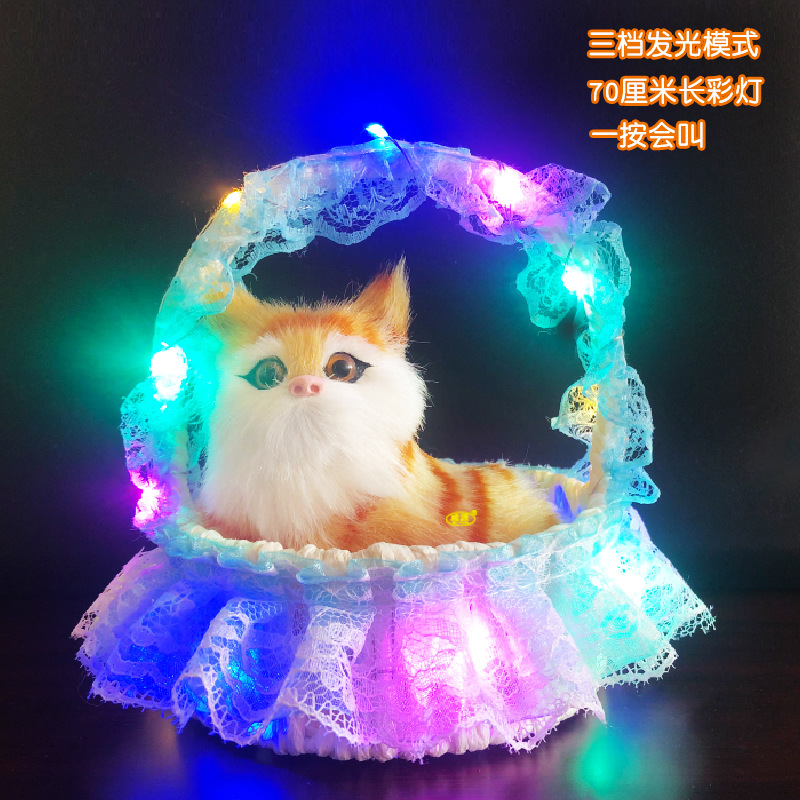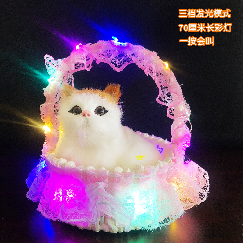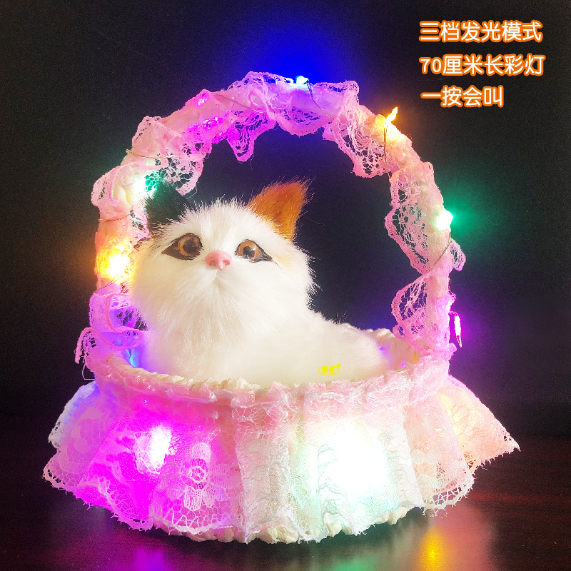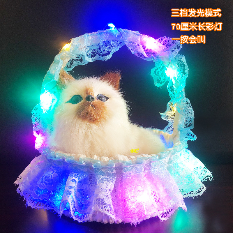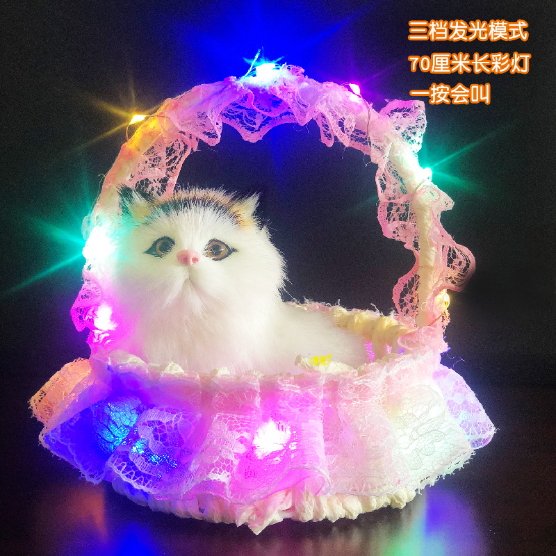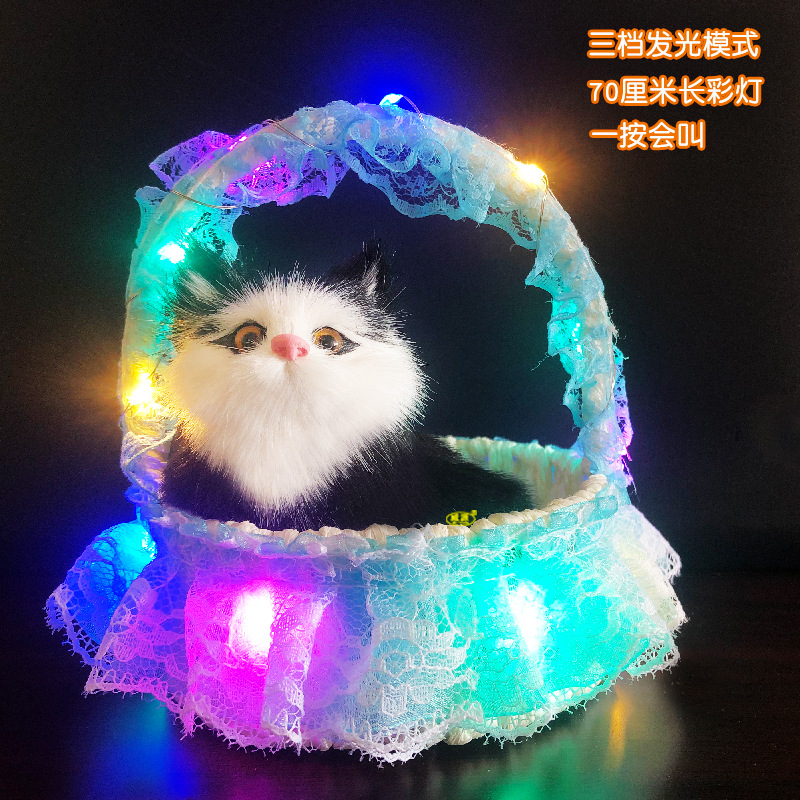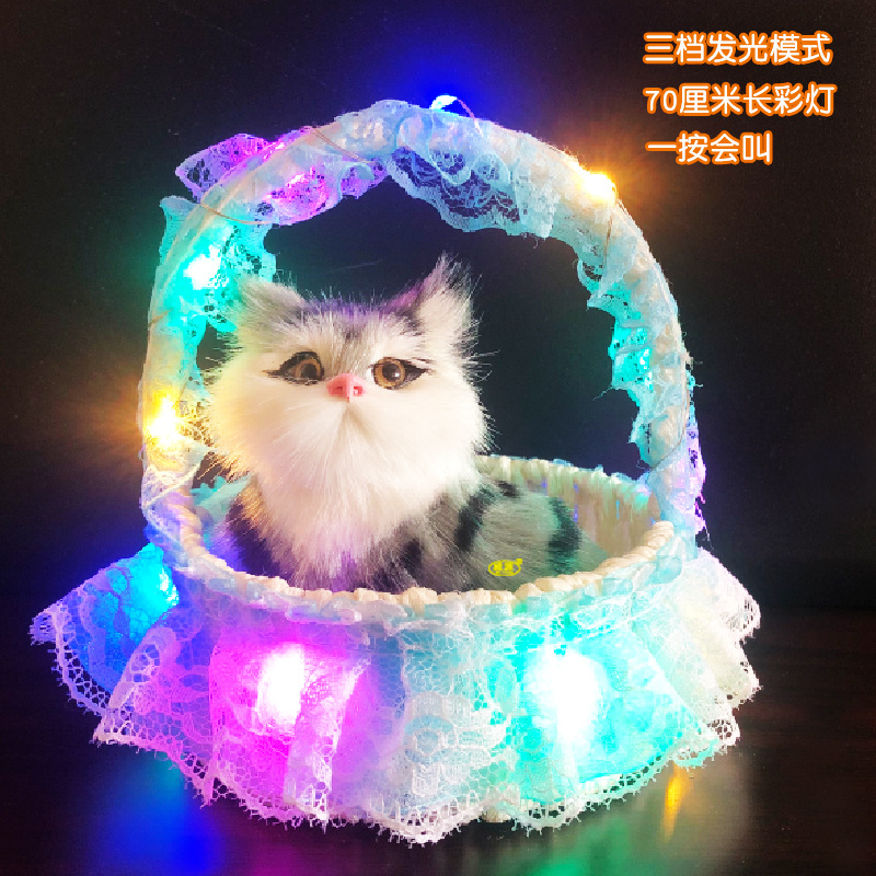 发光篮子猫手工艺品礼品地摊夜市批发假猫发光会叫蕾丝提篮猫