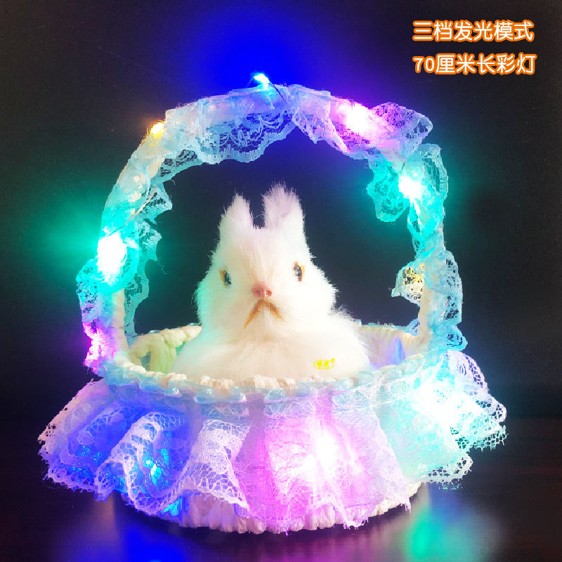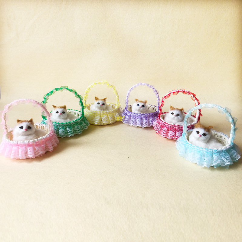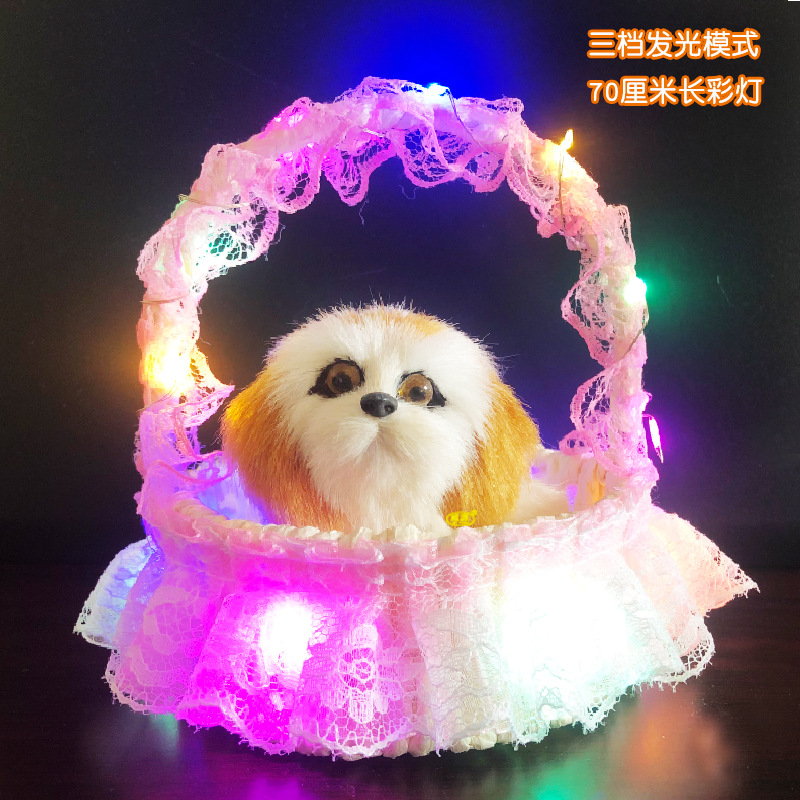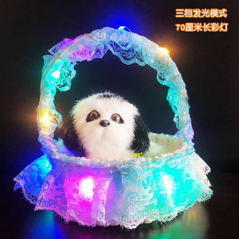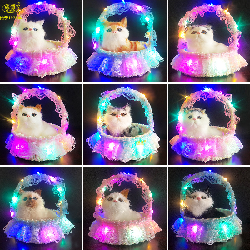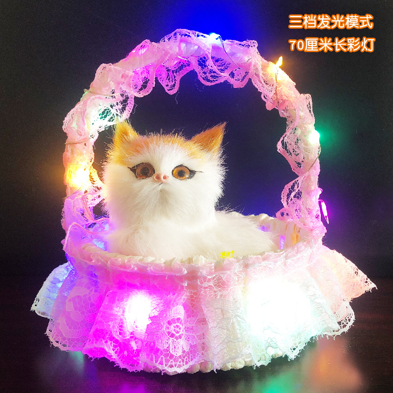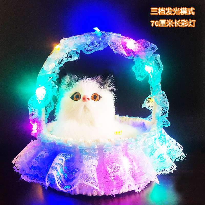 发光篮子猫手工艺品礼品地摊夜市批发假猫发光会叫蕾丝提篮猫