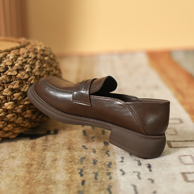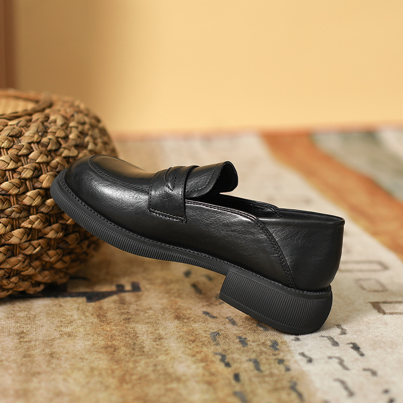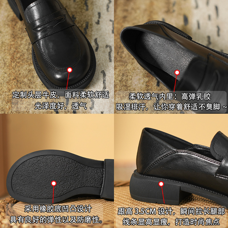 荔枝小满 全牛皮乐福鞋女真皮一脚蹬两穿英伦平底复古jk小皮鞋