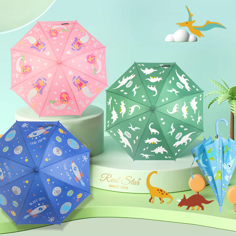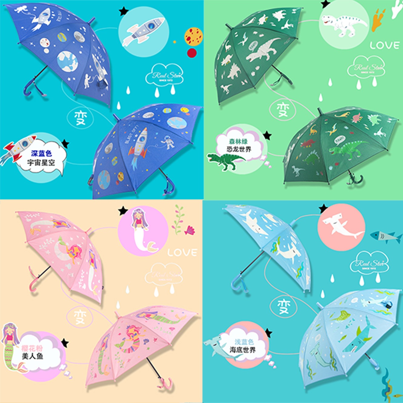 RST遇水变色雨伞卡通恐龙儿童伞创意童趣彩色雨伞现货批发外贸