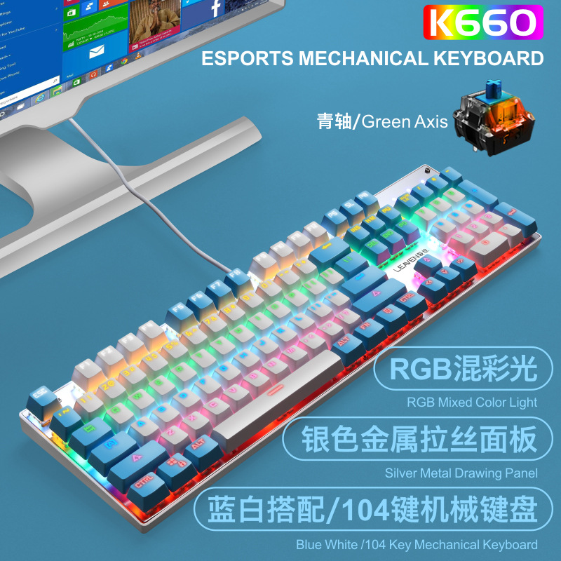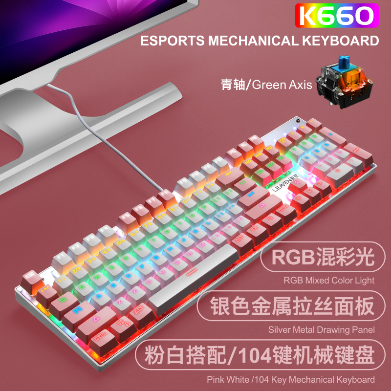 K660金属机械键盘青轴rgb发光朋克键盘USB有线电脑游戏键盘厂家