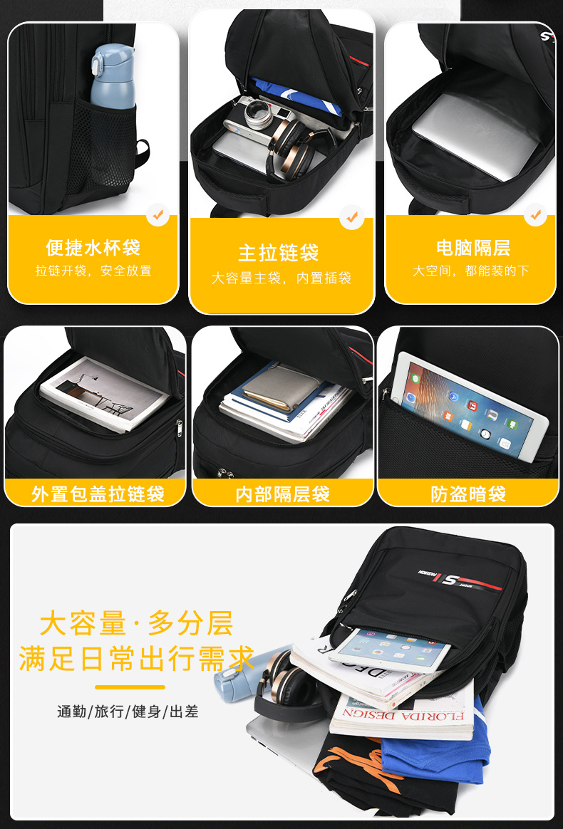 男士商务背包双肩大容量15寸电脑包多功能笔记本双肩包户外旅行包