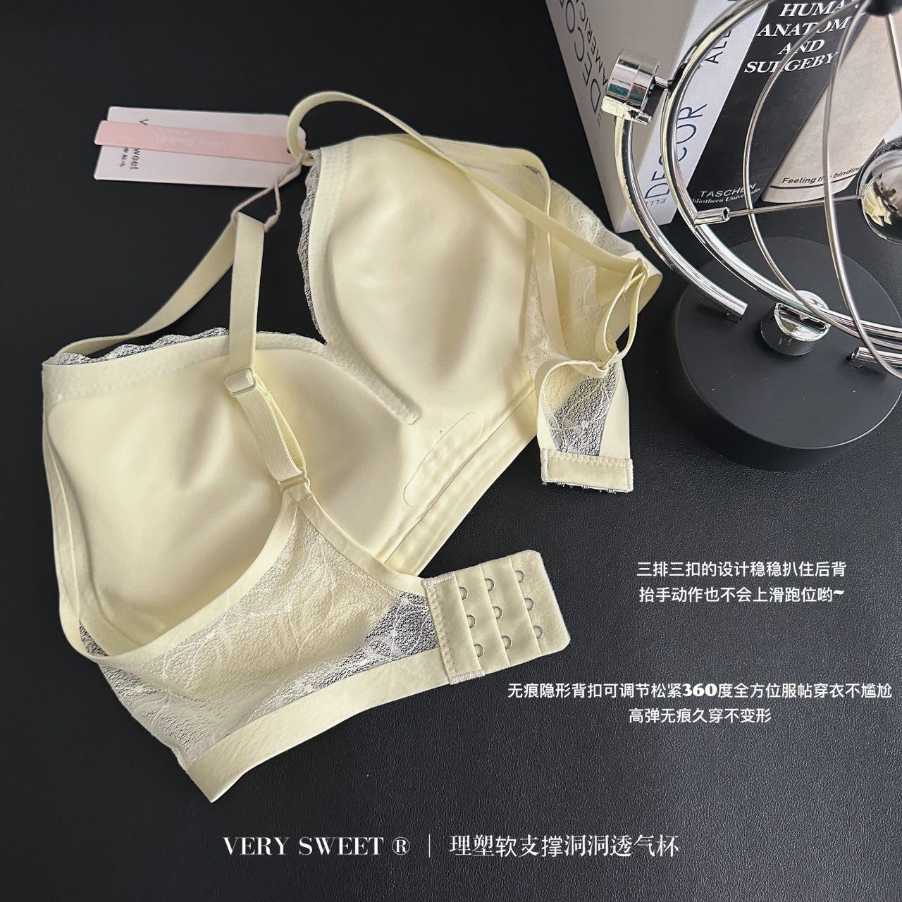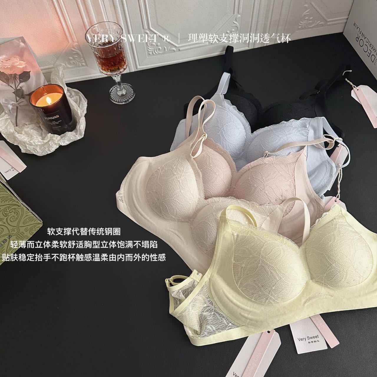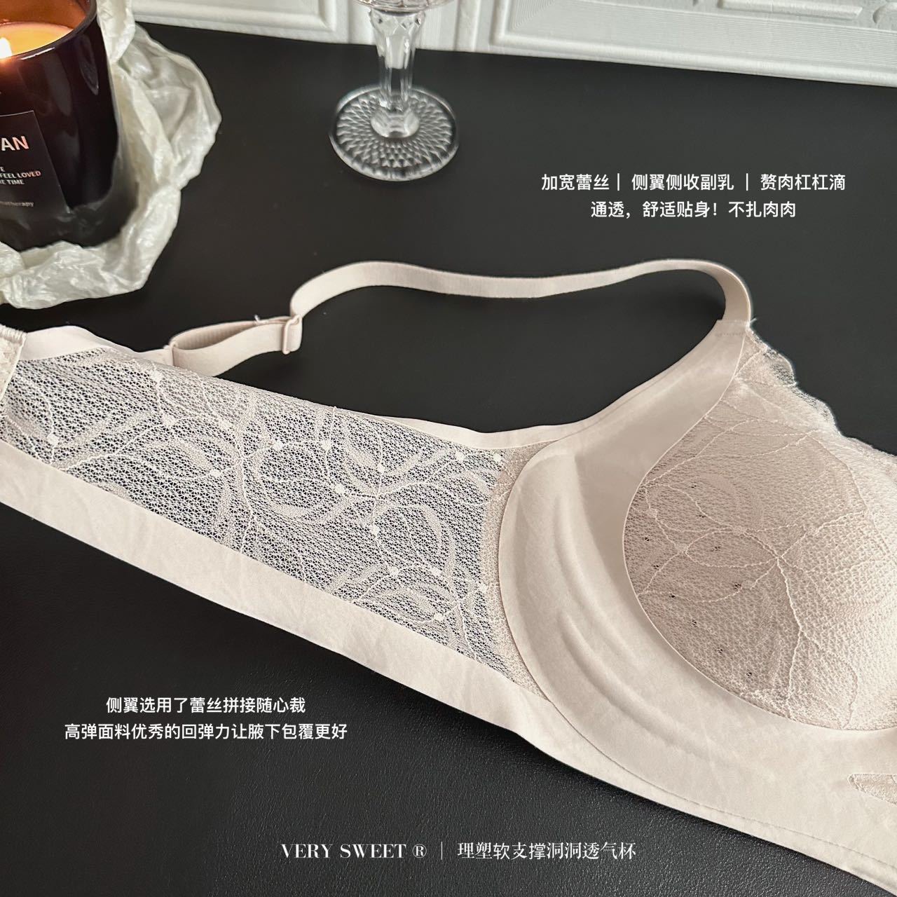 软支撑洞洞透气杯无痕内衣女薄款大胸显小无钢圈收副乳防下垂文胸