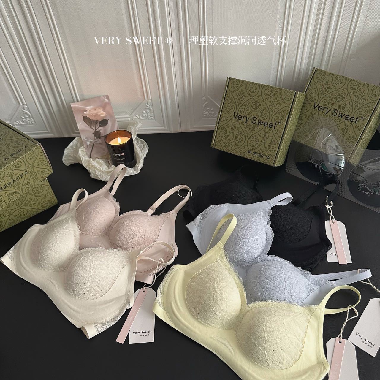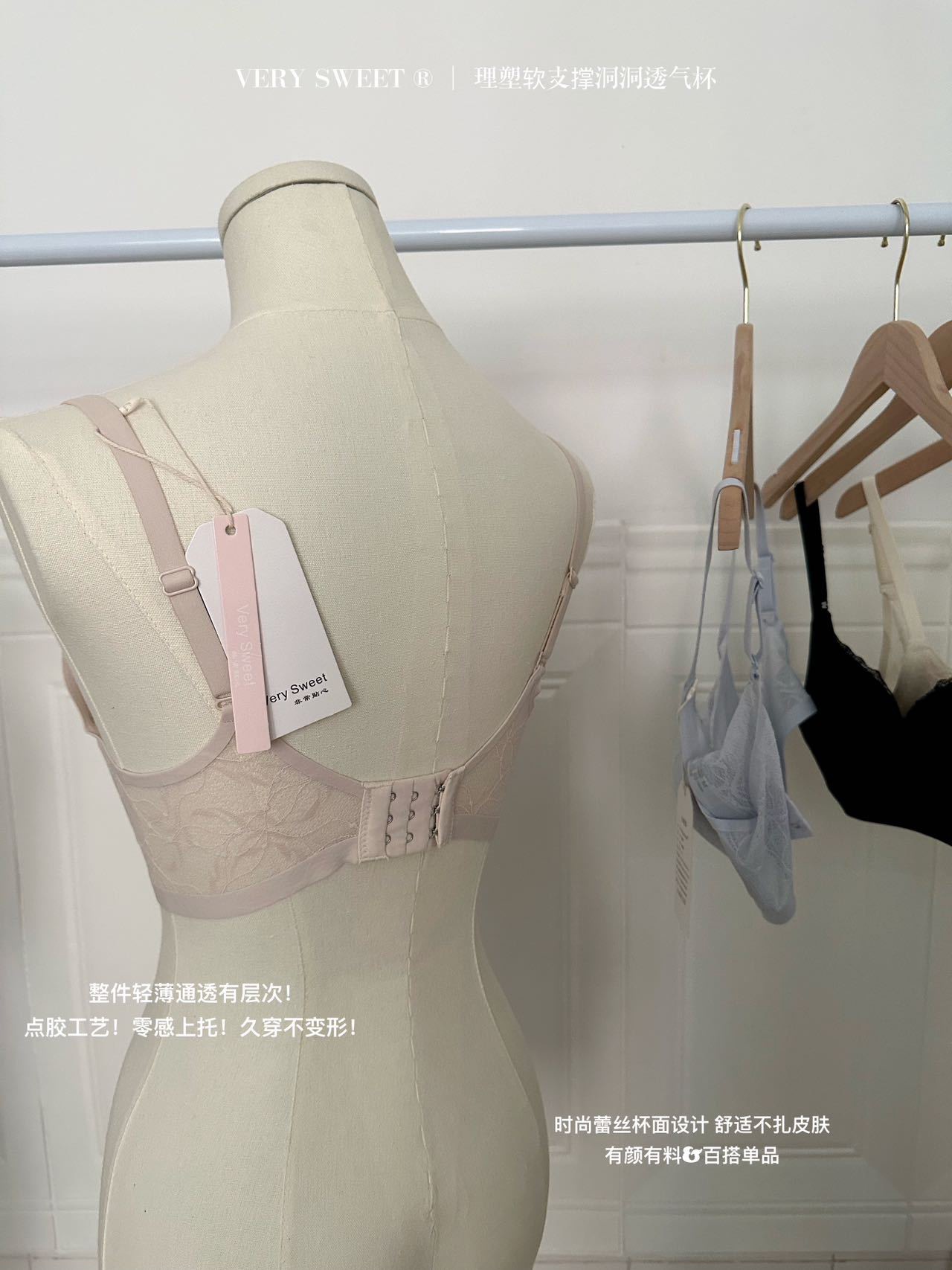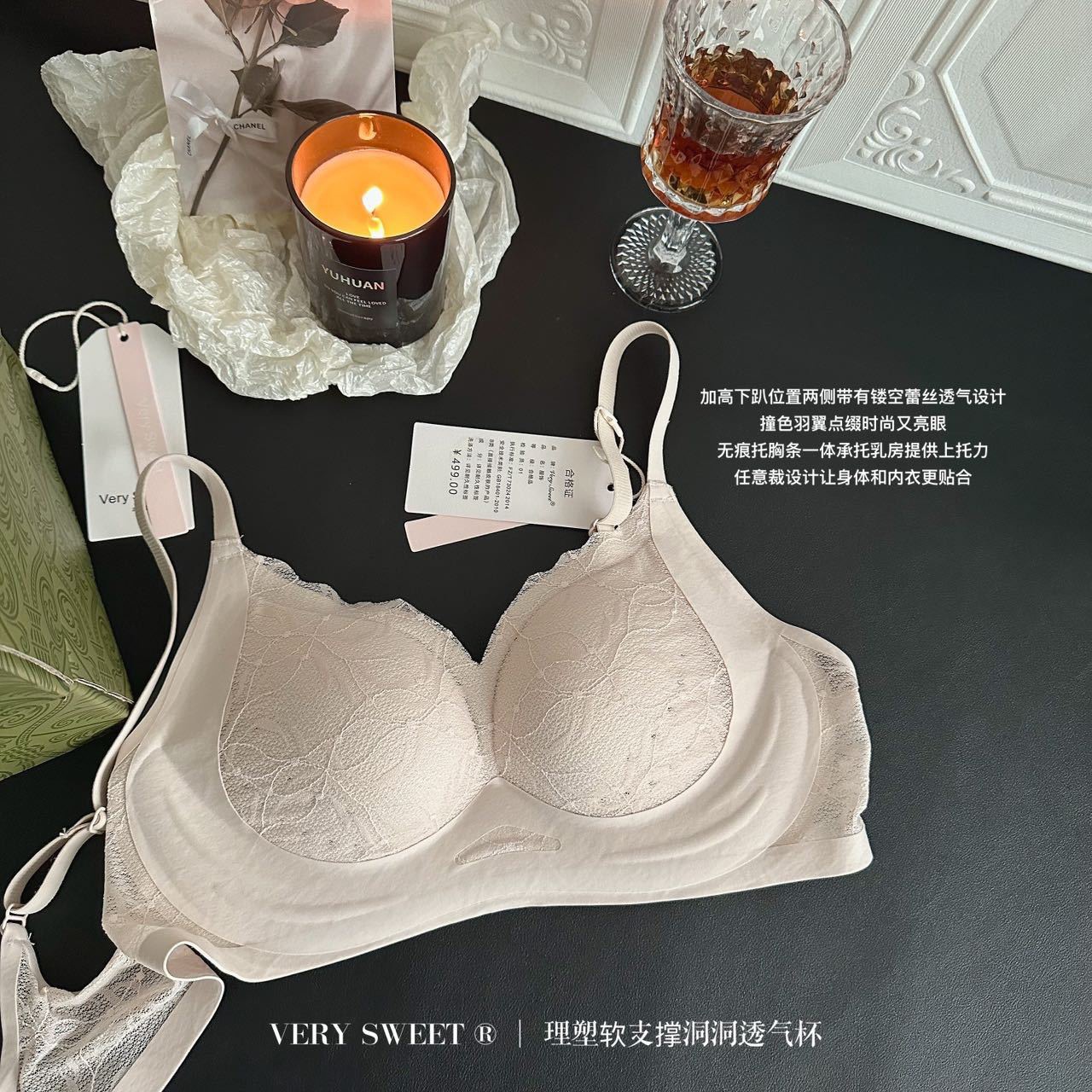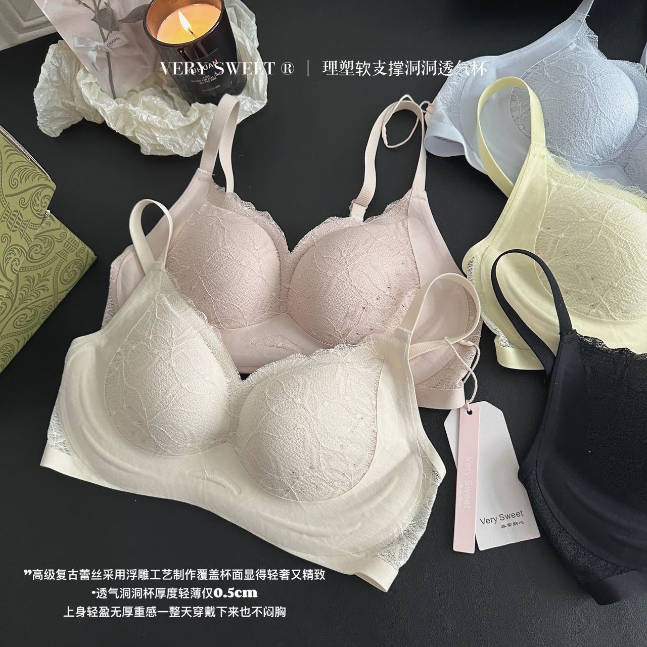 软支撑洞洞透气杯无痕内衣女薄款大胸显小无钢圈收副乳防下垂文胸