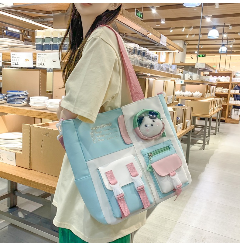 大容量手提袋 2023新款学生上课补习帆布包批发学院风单肩斜挎包