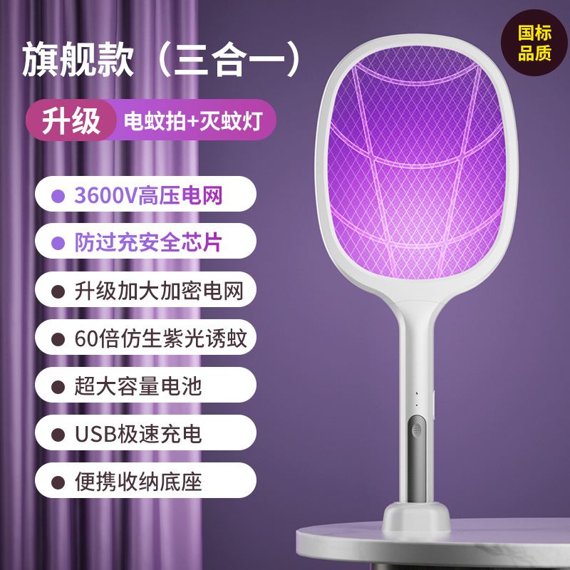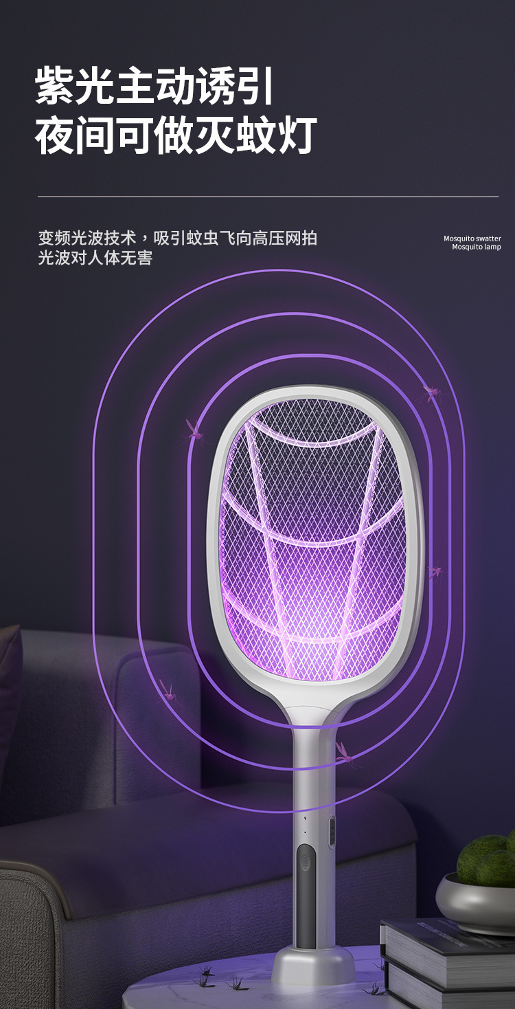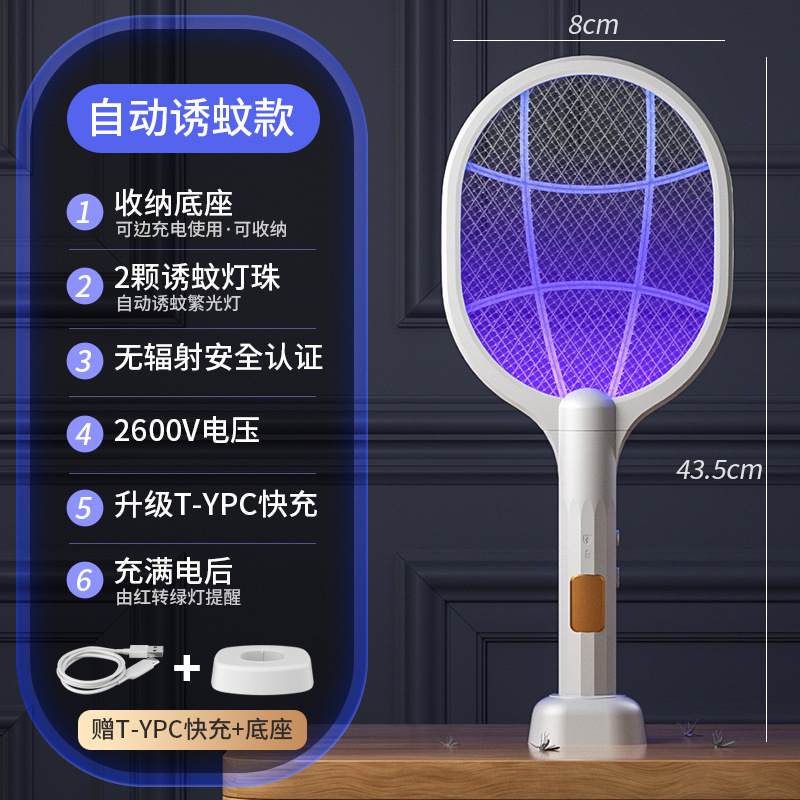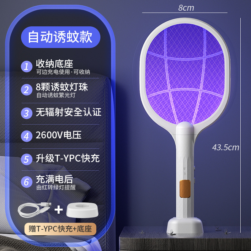 新款充电式电蚊拍自动诱蚊家用二合一灭蚊灯锂电池驱蚊神器苍蝇拍