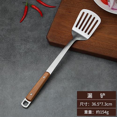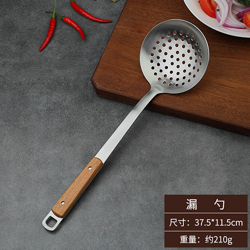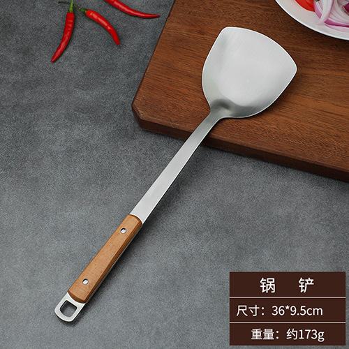 304不锈钢锅铲炒菜铲子家用木柄汤勺漏勺厨具耐高温榉木防烫手柄