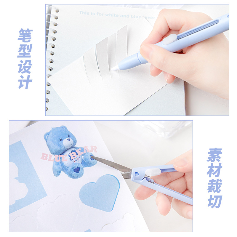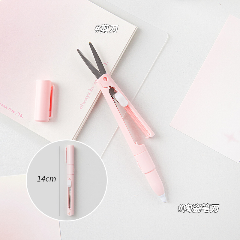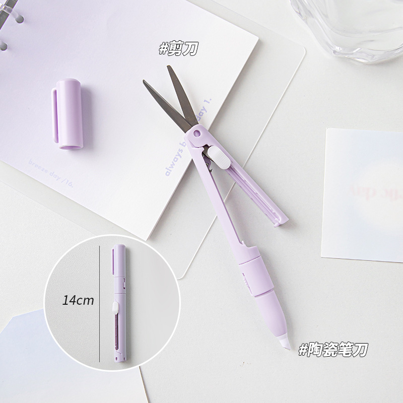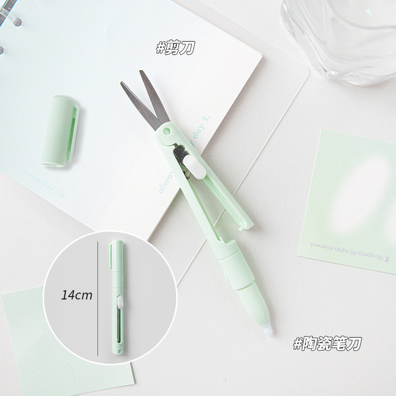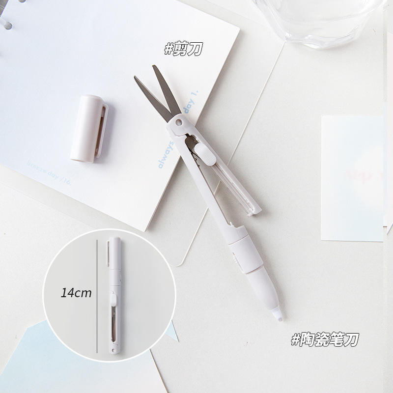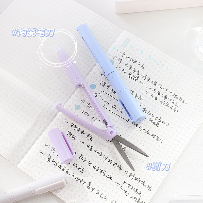 剪刀陶瓷笔刀二合一袋装小巧便捷办公纸张裁剪手帐工具笔型美工刀
