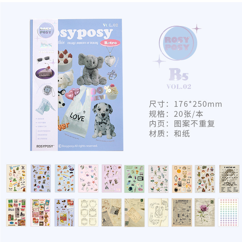 RosyPosy杂志系列素材贴ins卡通学生手账diy贴纸素材本可撕贴纸本