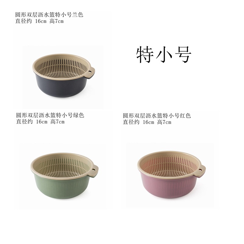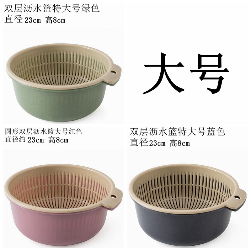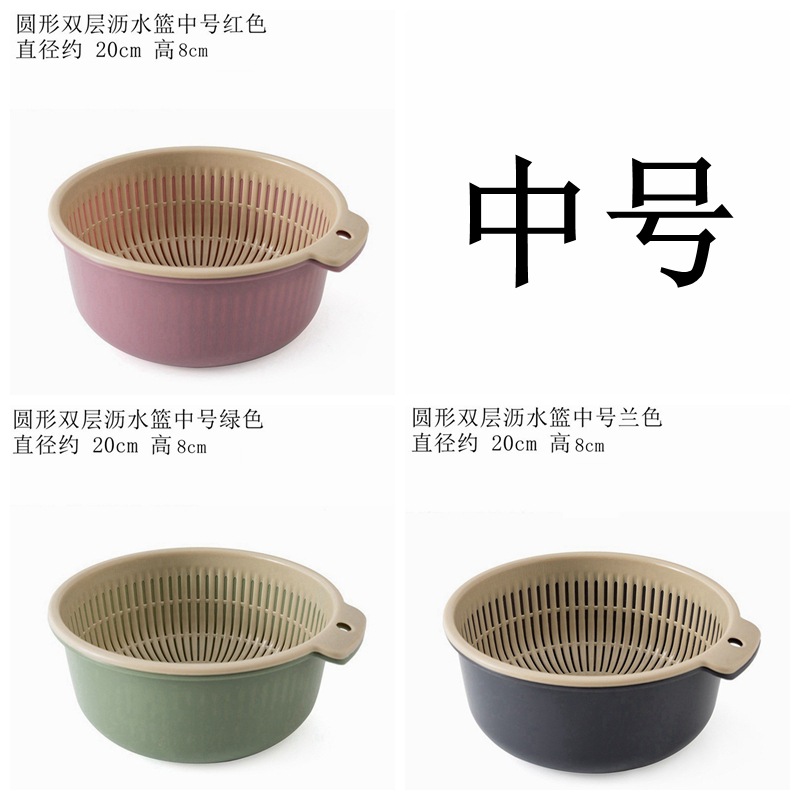 惠司厨房家用双层沥水篮洗菜篮塑料果蔬收纳洗水篮圆形滤水篮