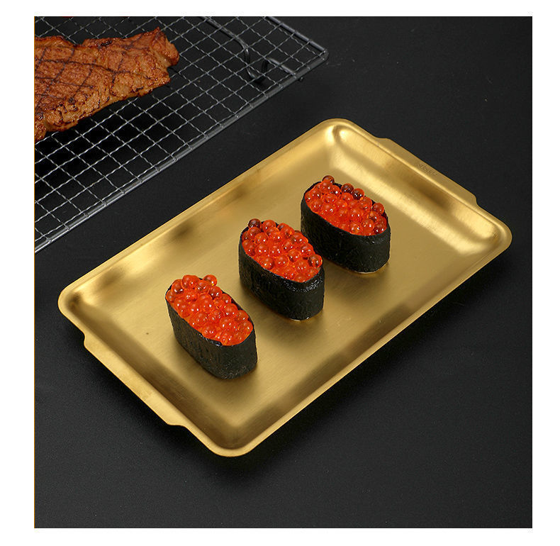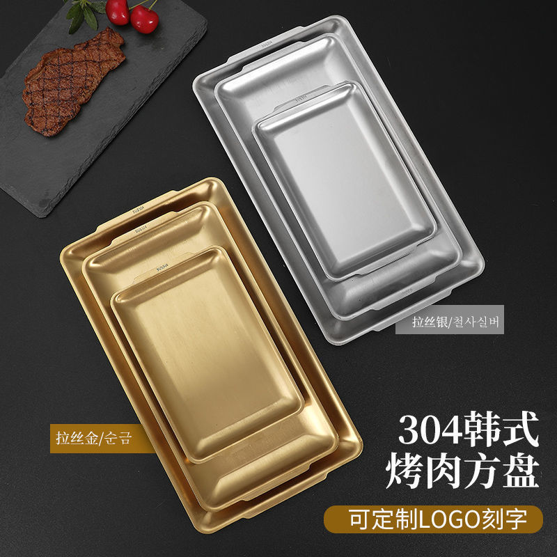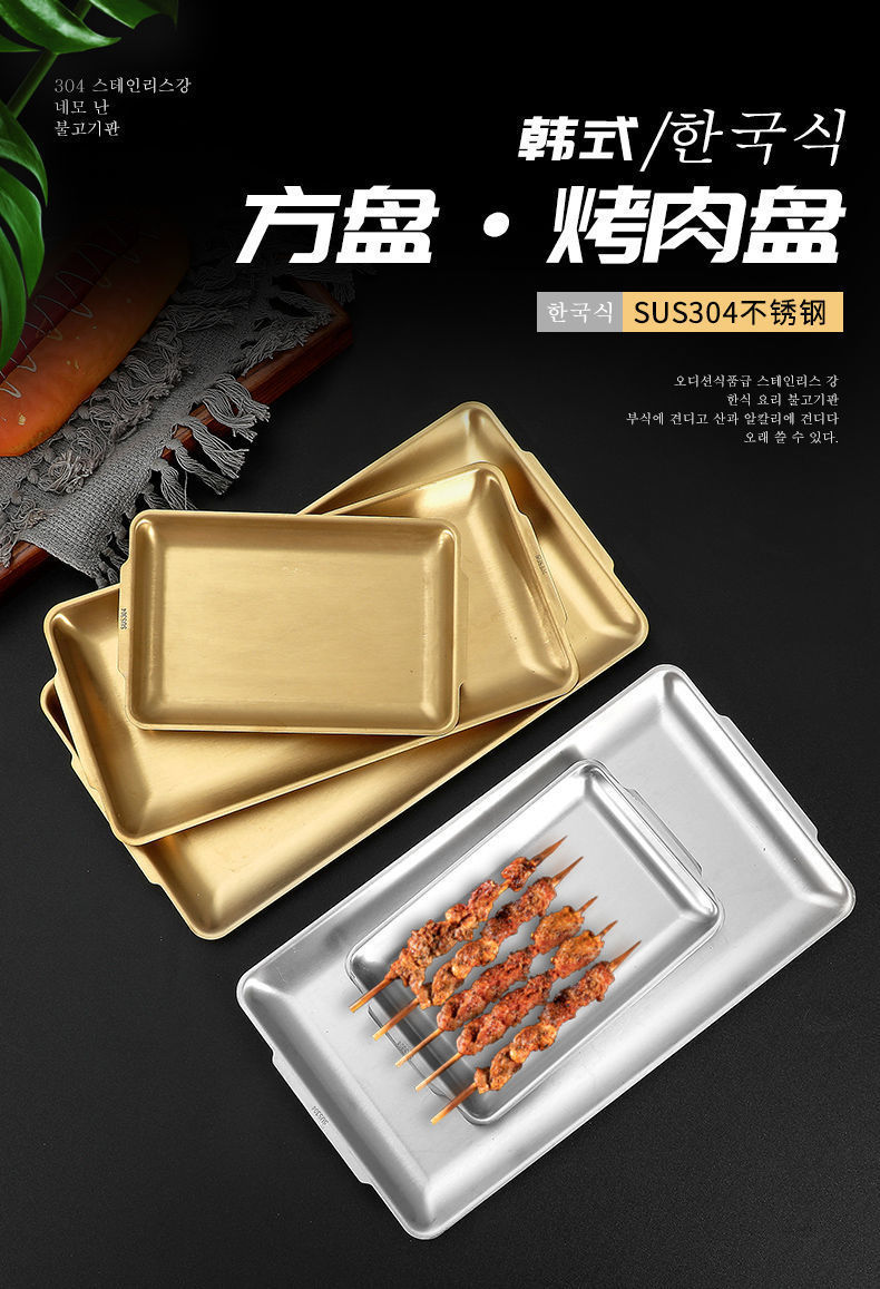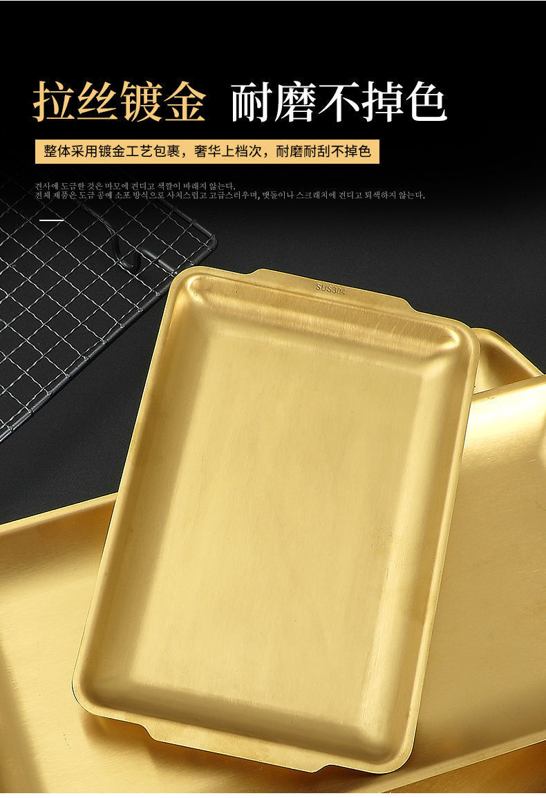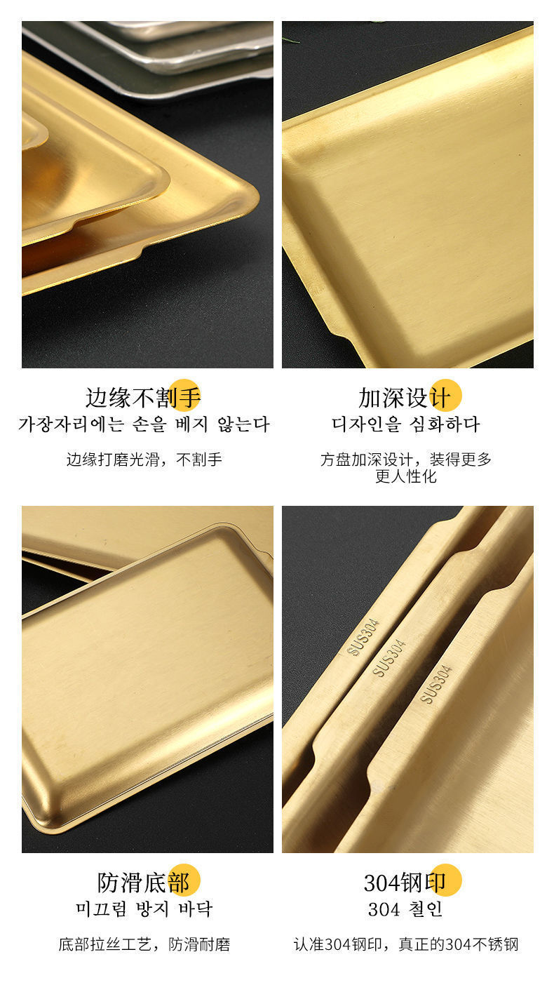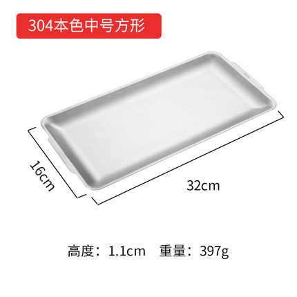 304加厚不锈钢长方形盘寿司盘磨砂平底盘子托盘收纳盘韩式烧烤盘