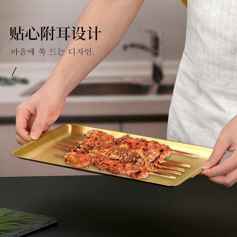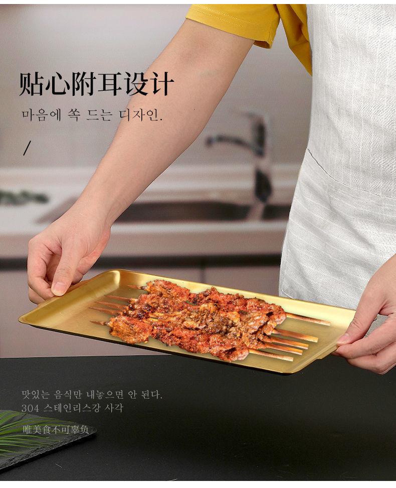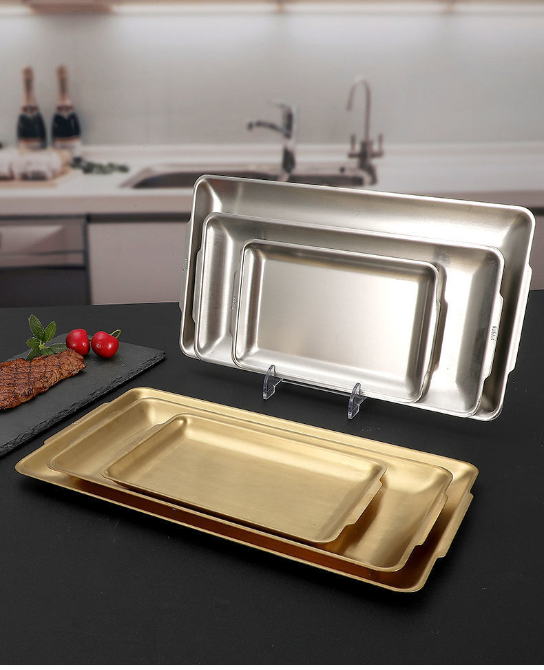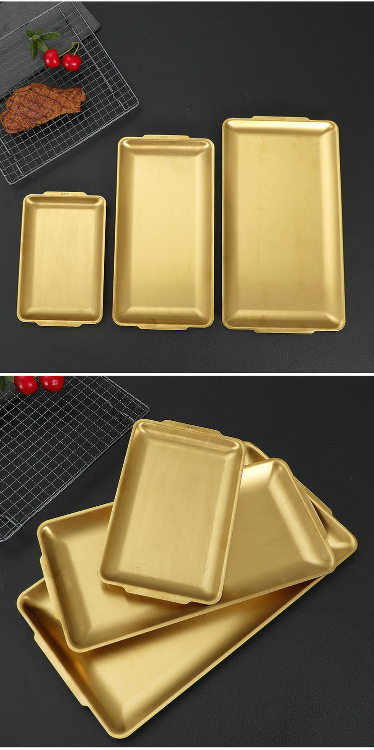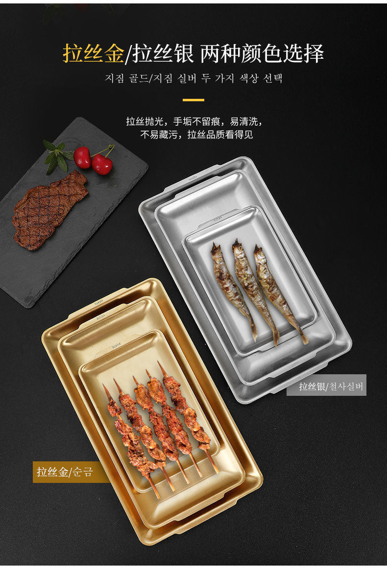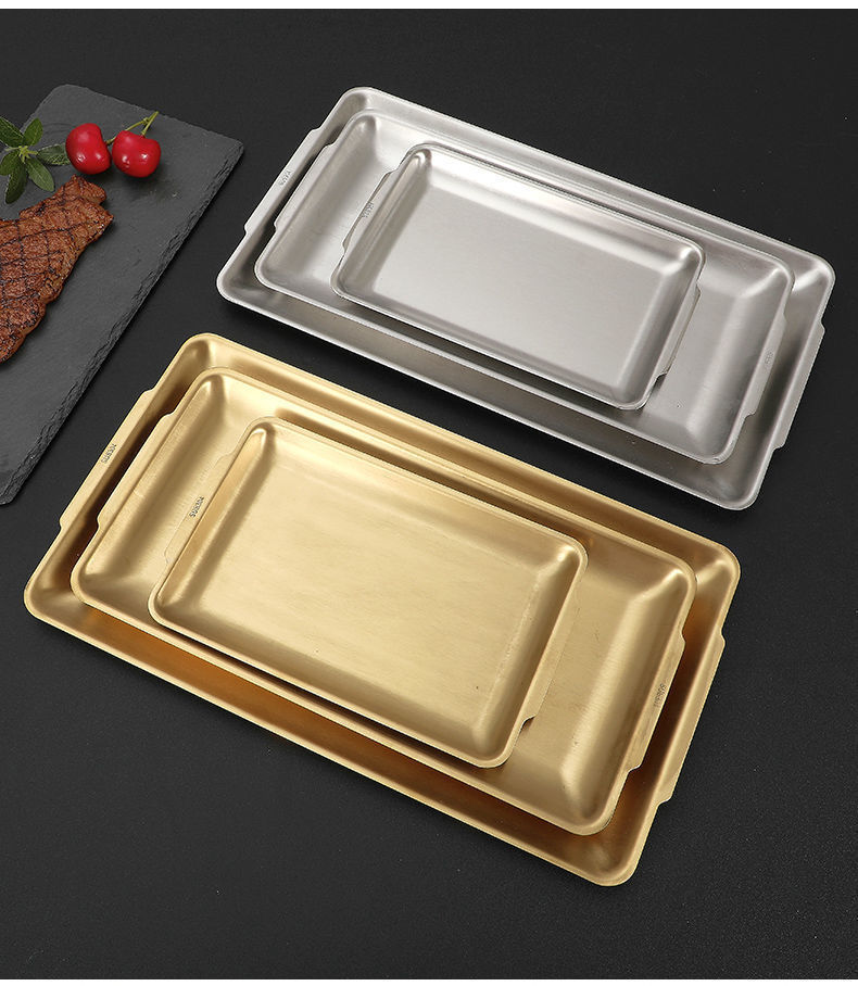 304加厚不锈钢长方形盘寿司盘磨砂平底盘子托盘收纳盘韩式烧烤盘