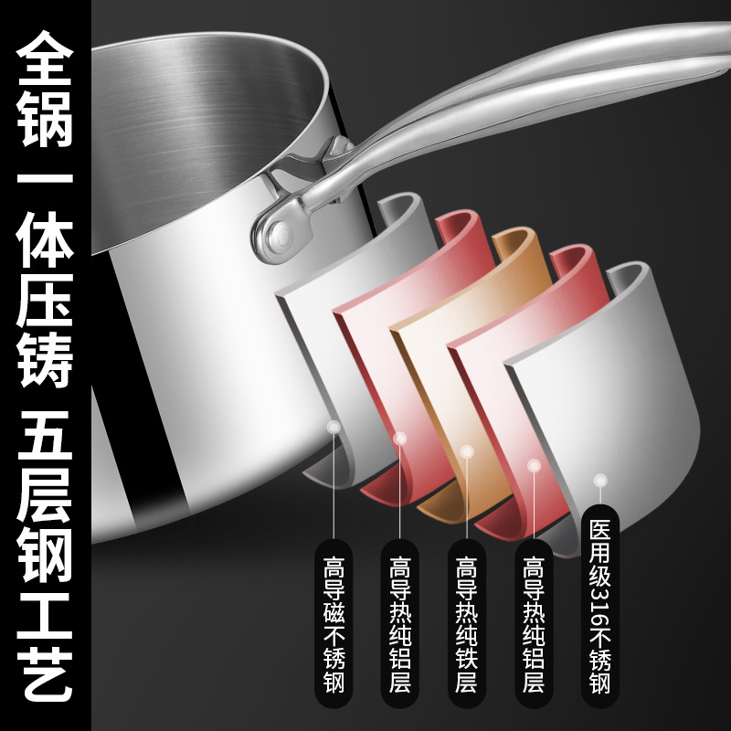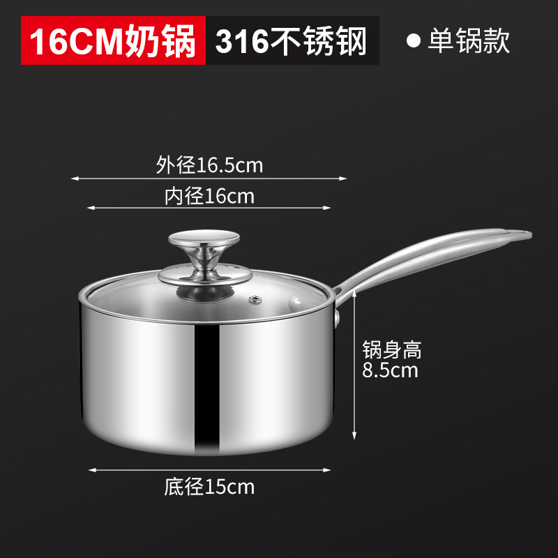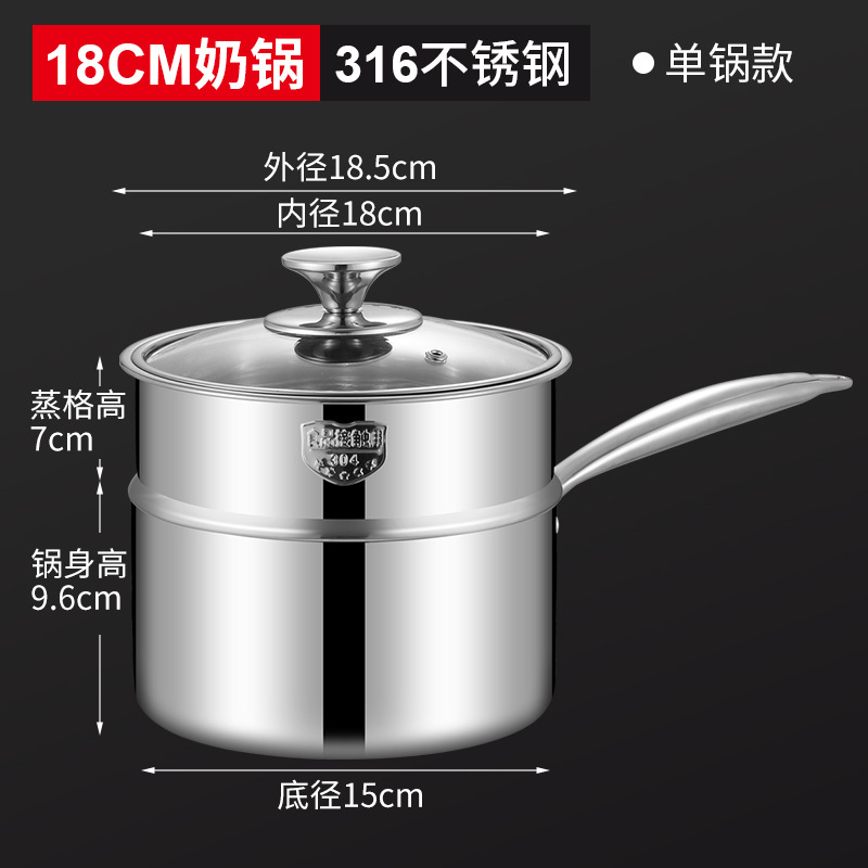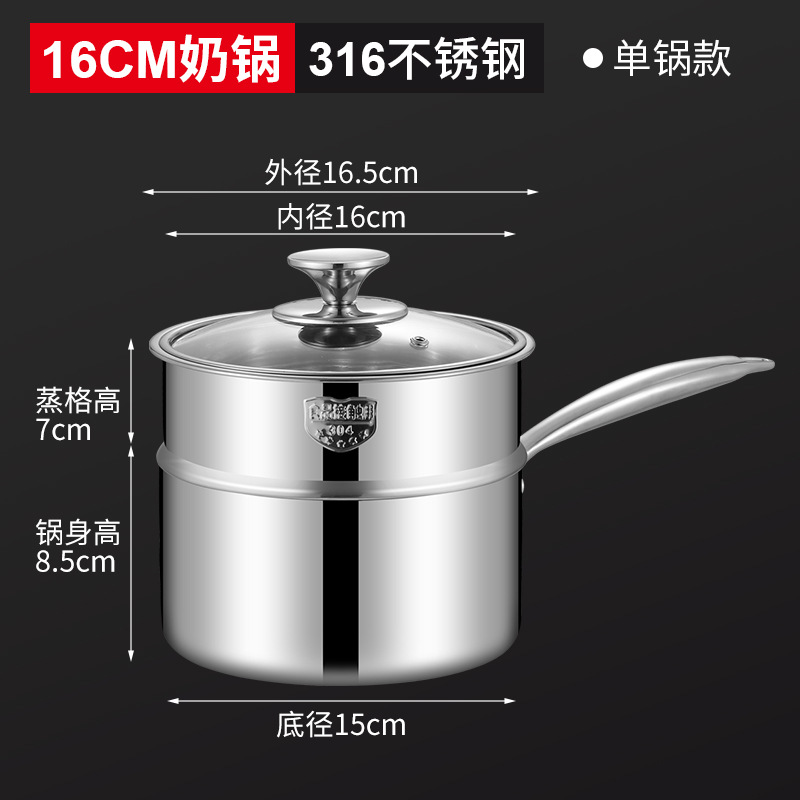SUS316不锈钢双层汤锅煮面奶锅家用无涂层单柄锅双耳电
