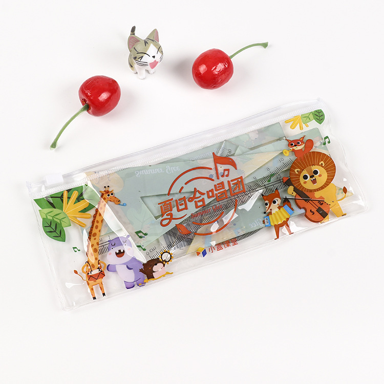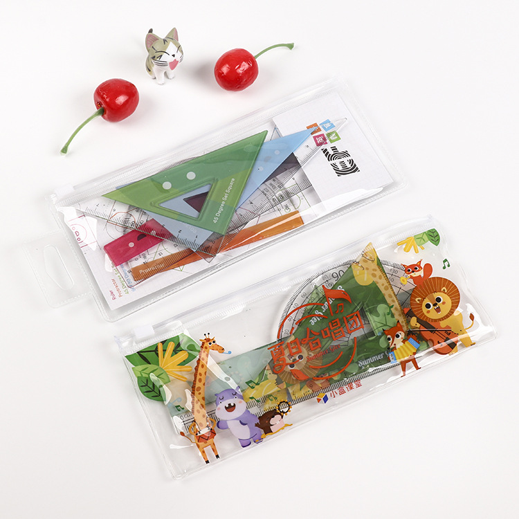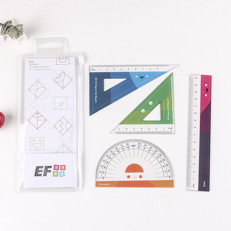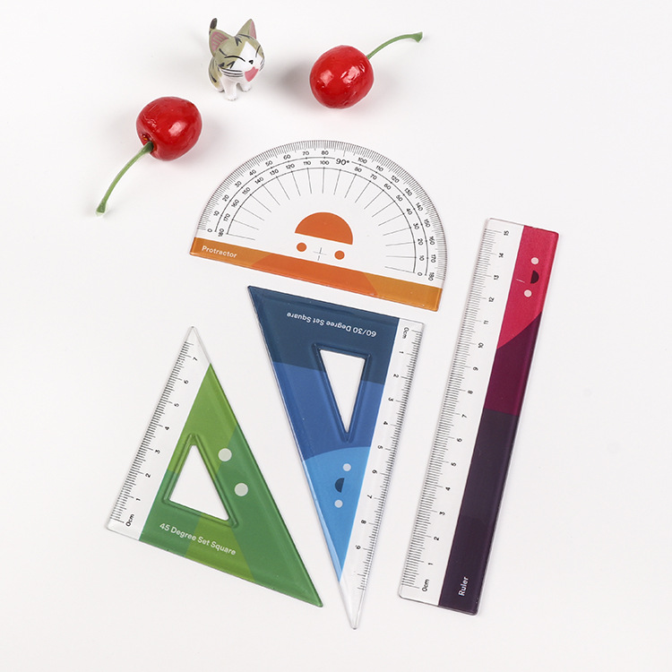 卡通广告PS套尺塑料直尺亚克力学生尺子套装量角器透明软三角尺