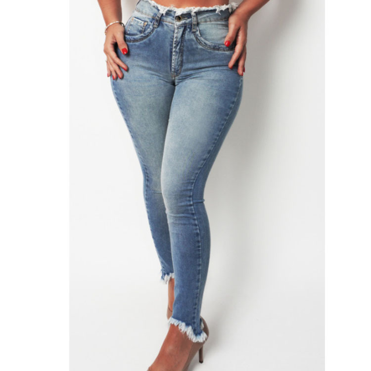 速卖通跨境亚马逊女性牛仔裤浅色水洗街头潮人蓝色高腰牛仔裤