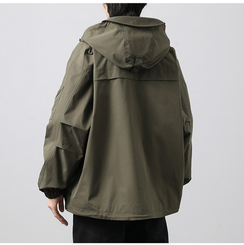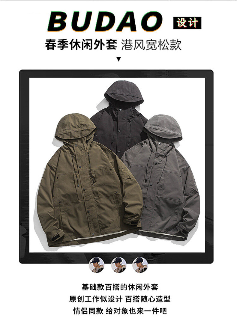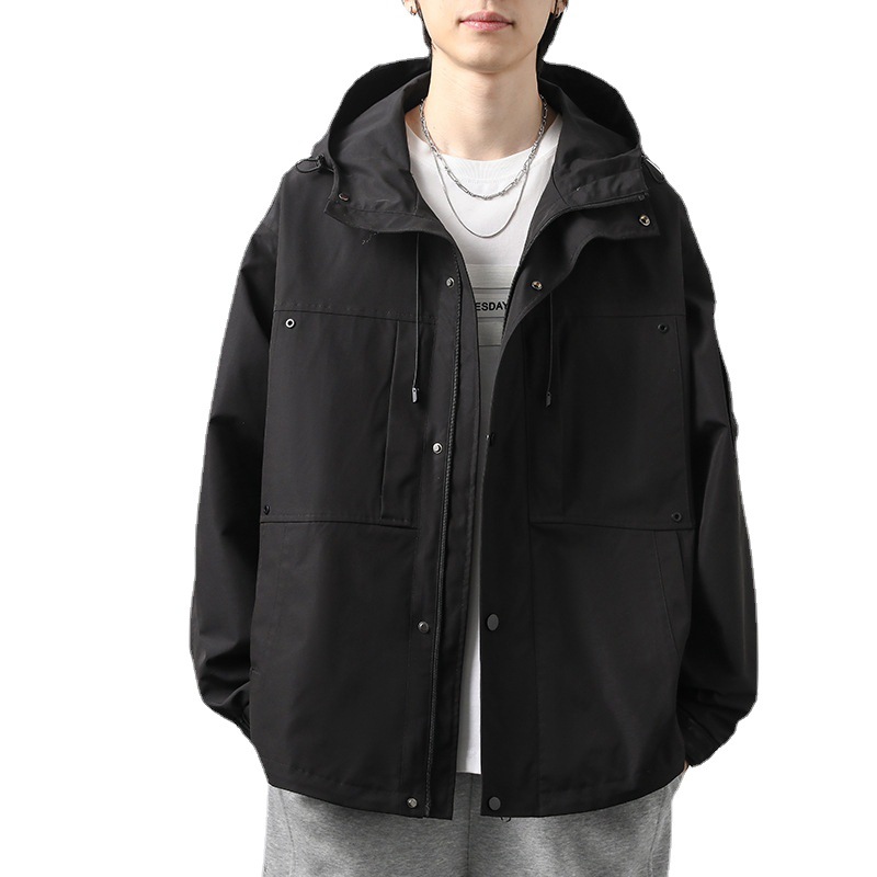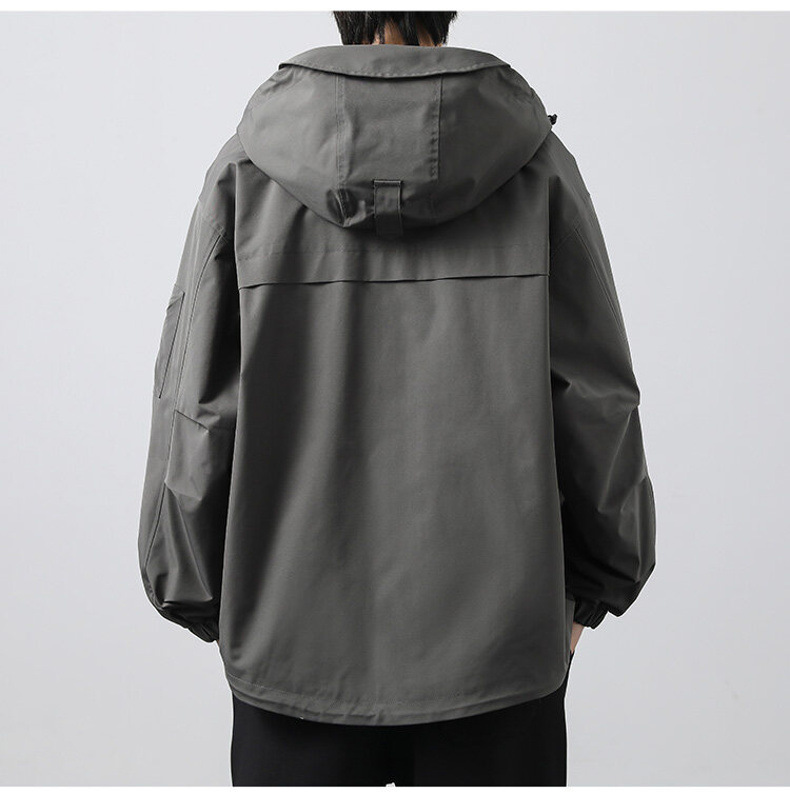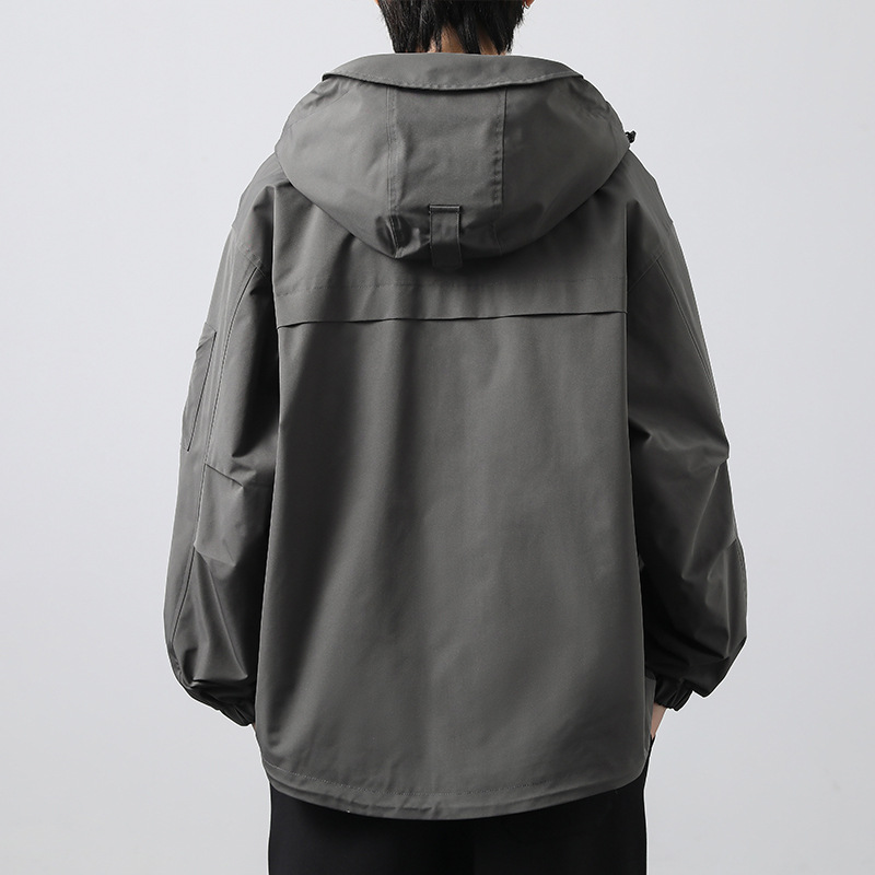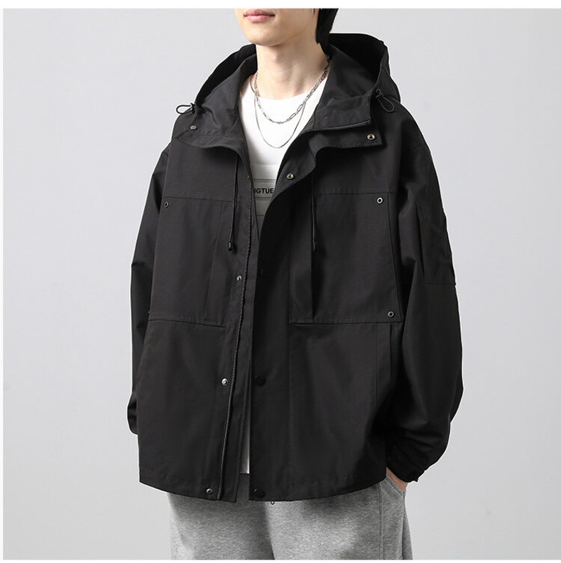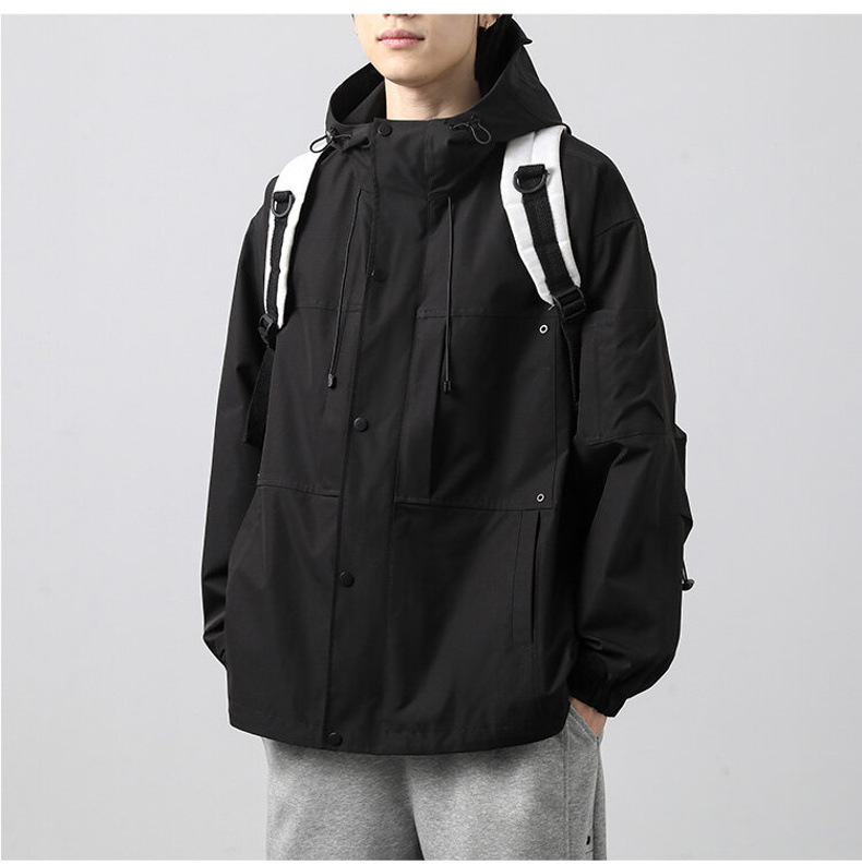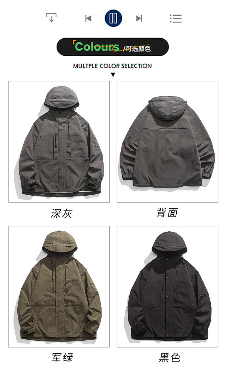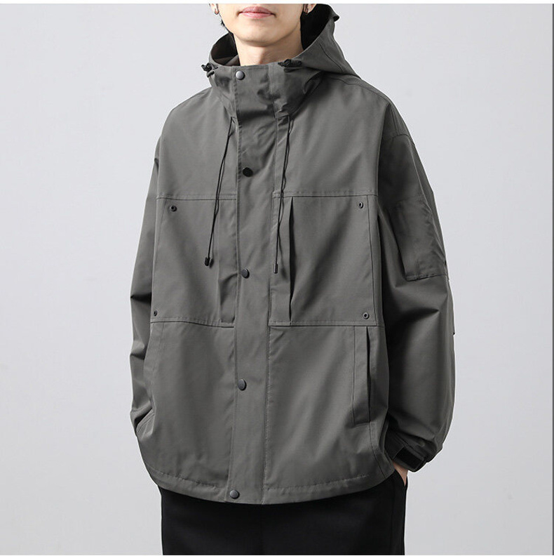 高档户外冲锋衣外套男士春秋宽松高级感潮牌痞帅连帽机能工装夹克