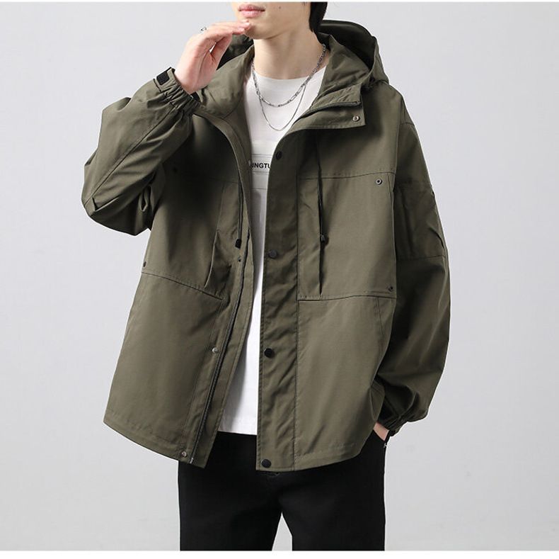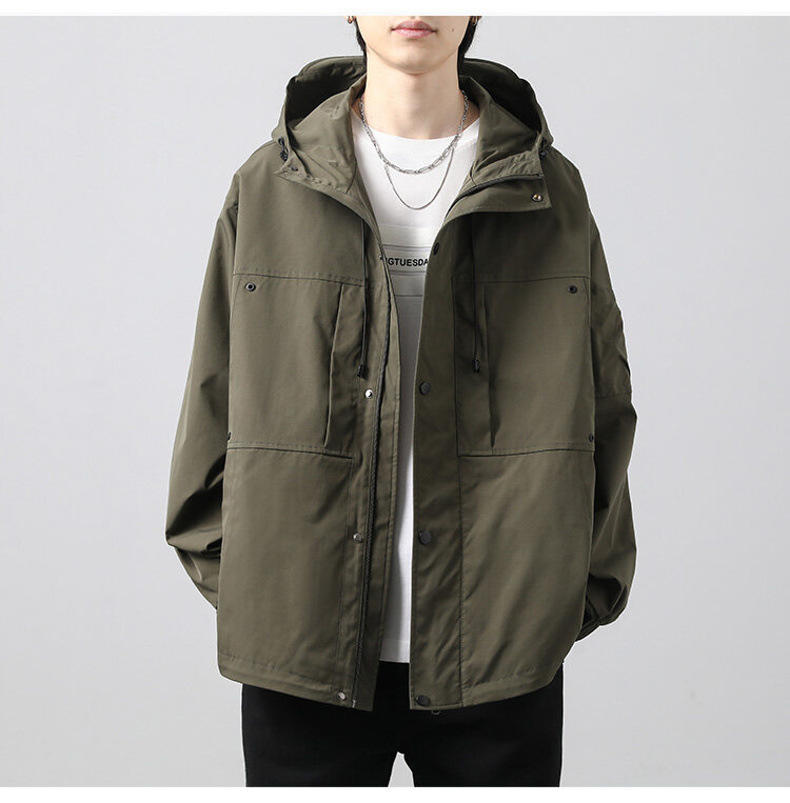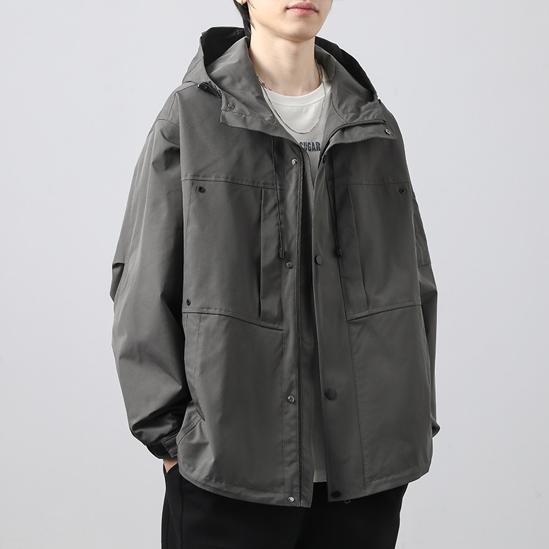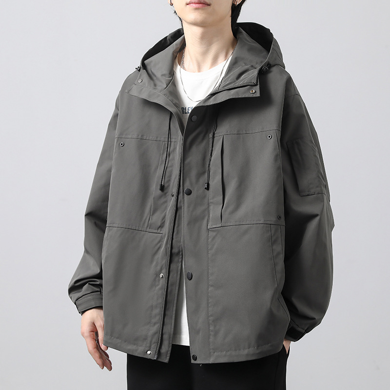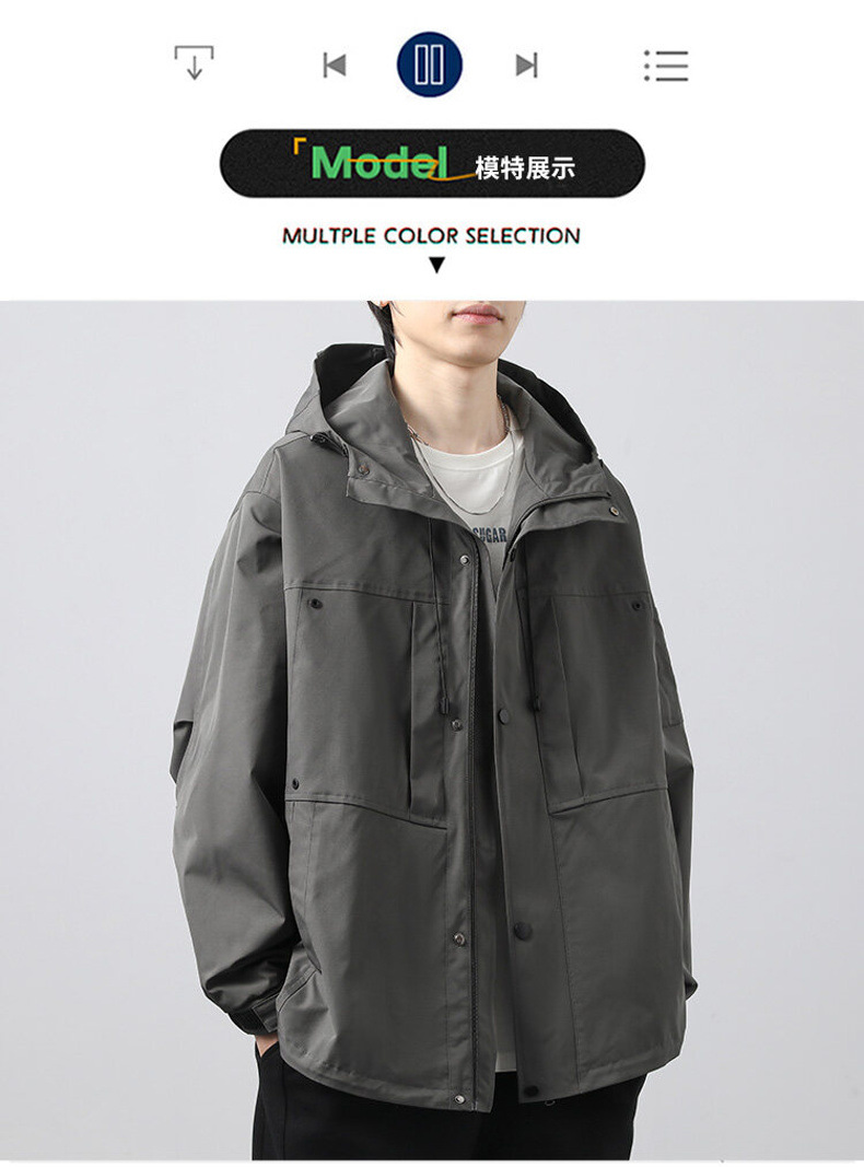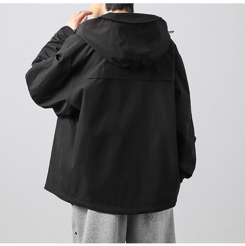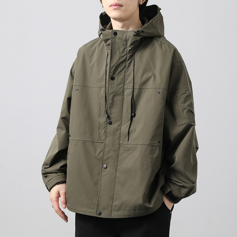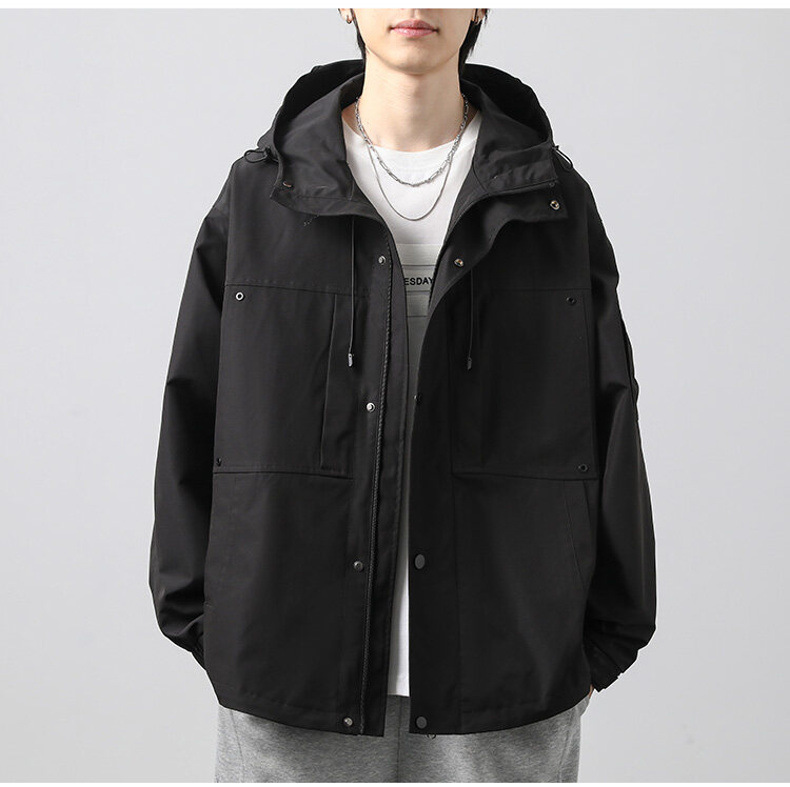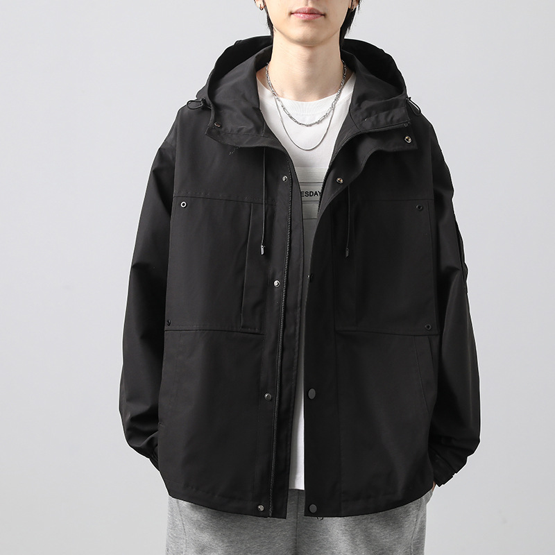 高档户外冲锋衣外套男士春秋宽松高级感潮牌痞帅连帽机能工装夹克