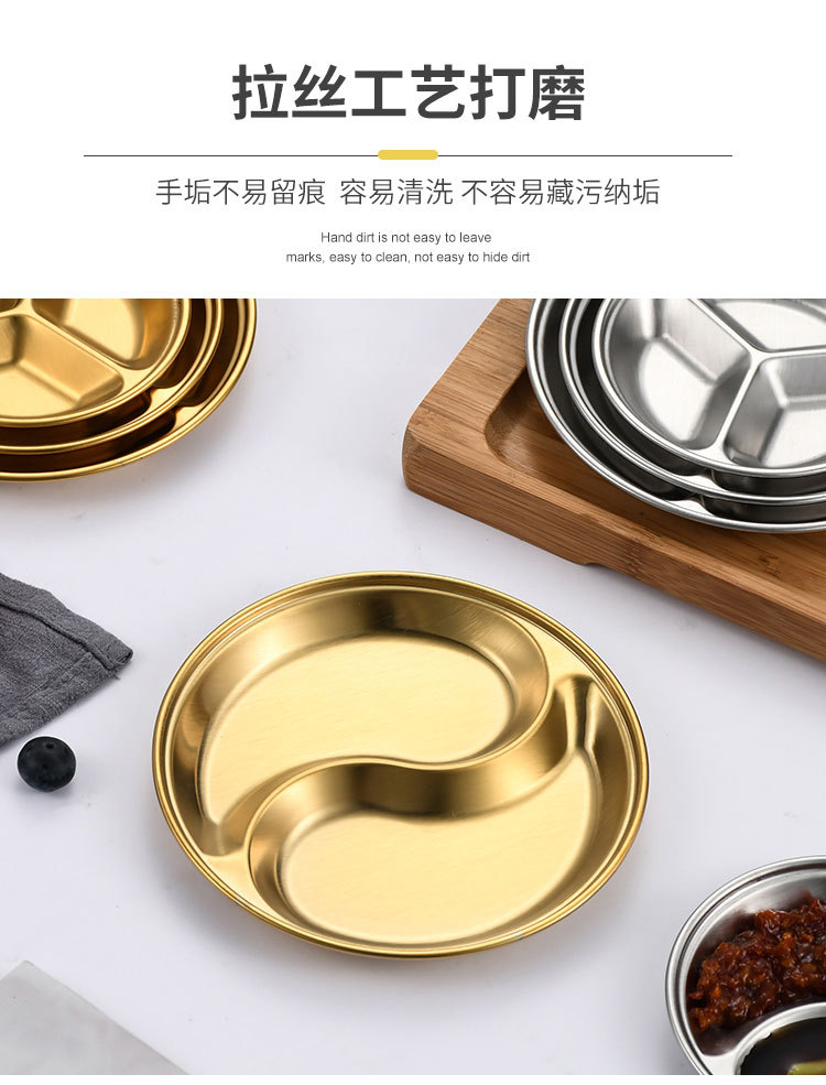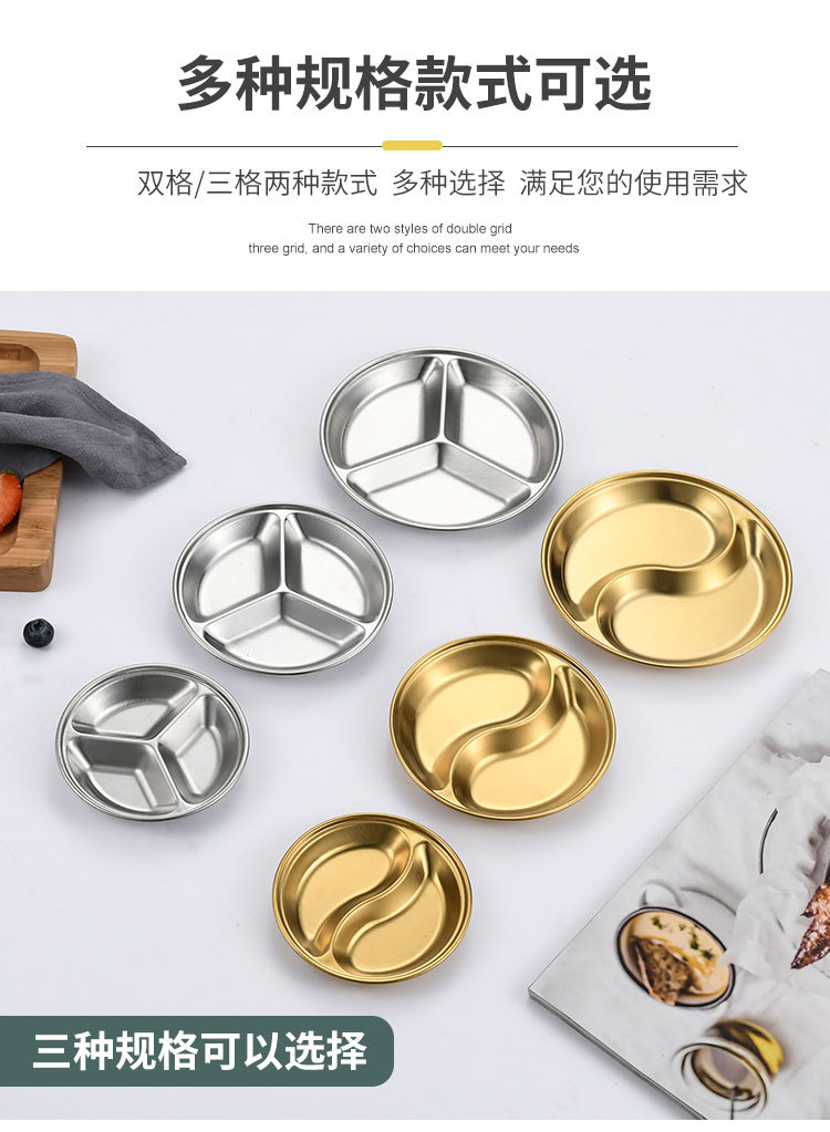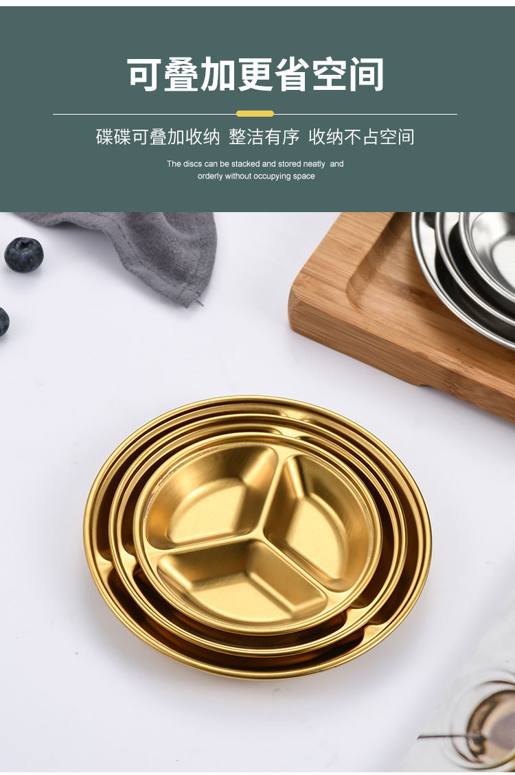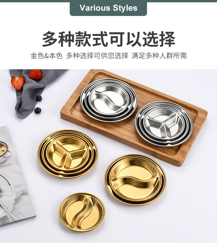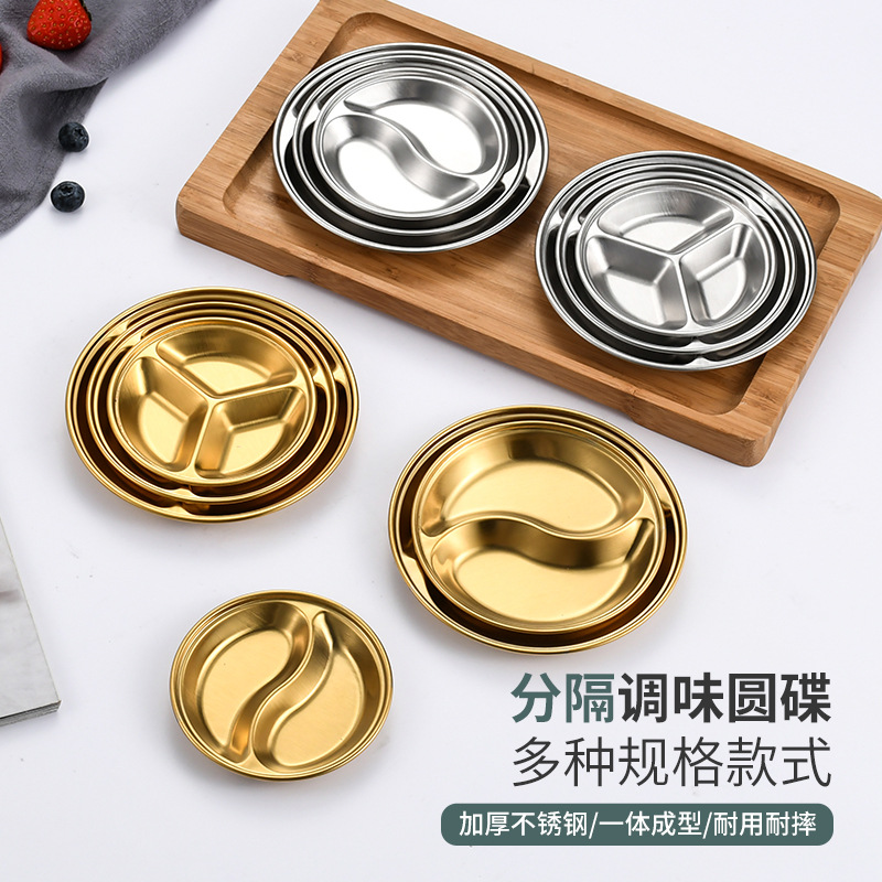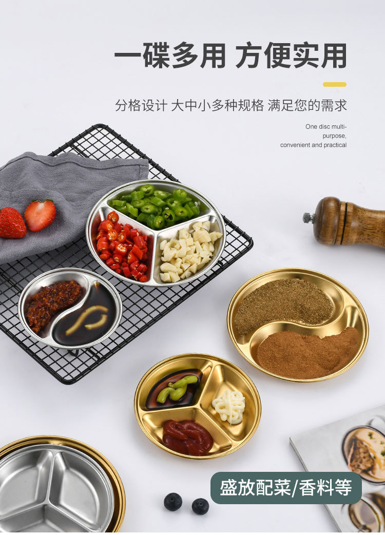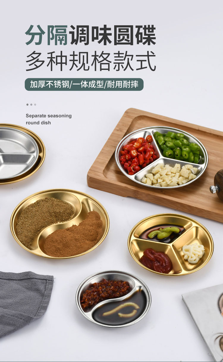 跨境201不锈钢圆形分隔碟加厚加深烧烤调料蘸料碟金色小料碟批发