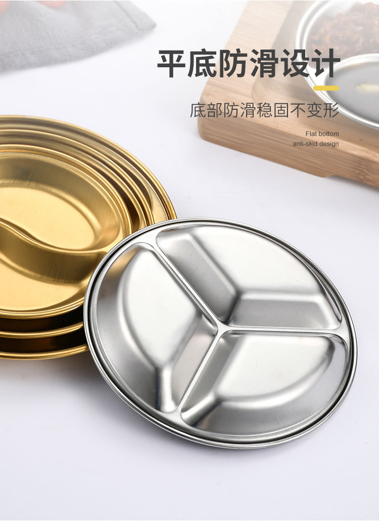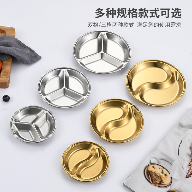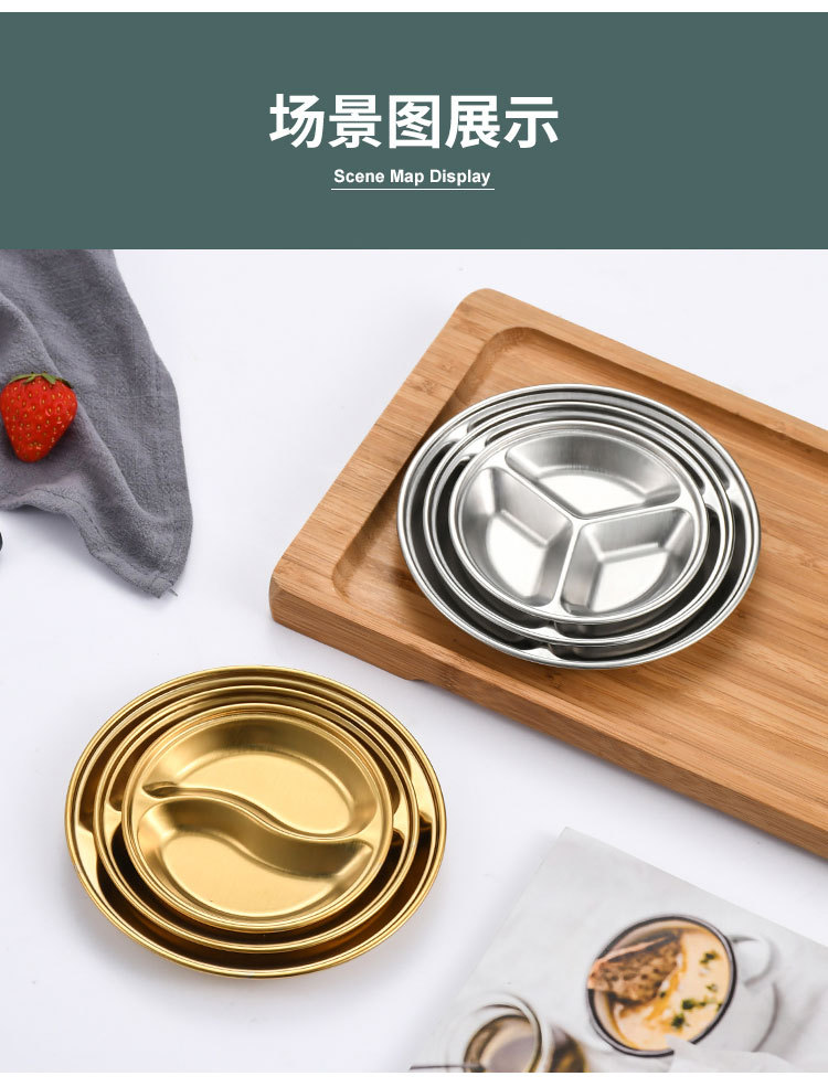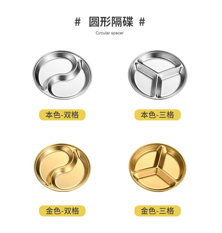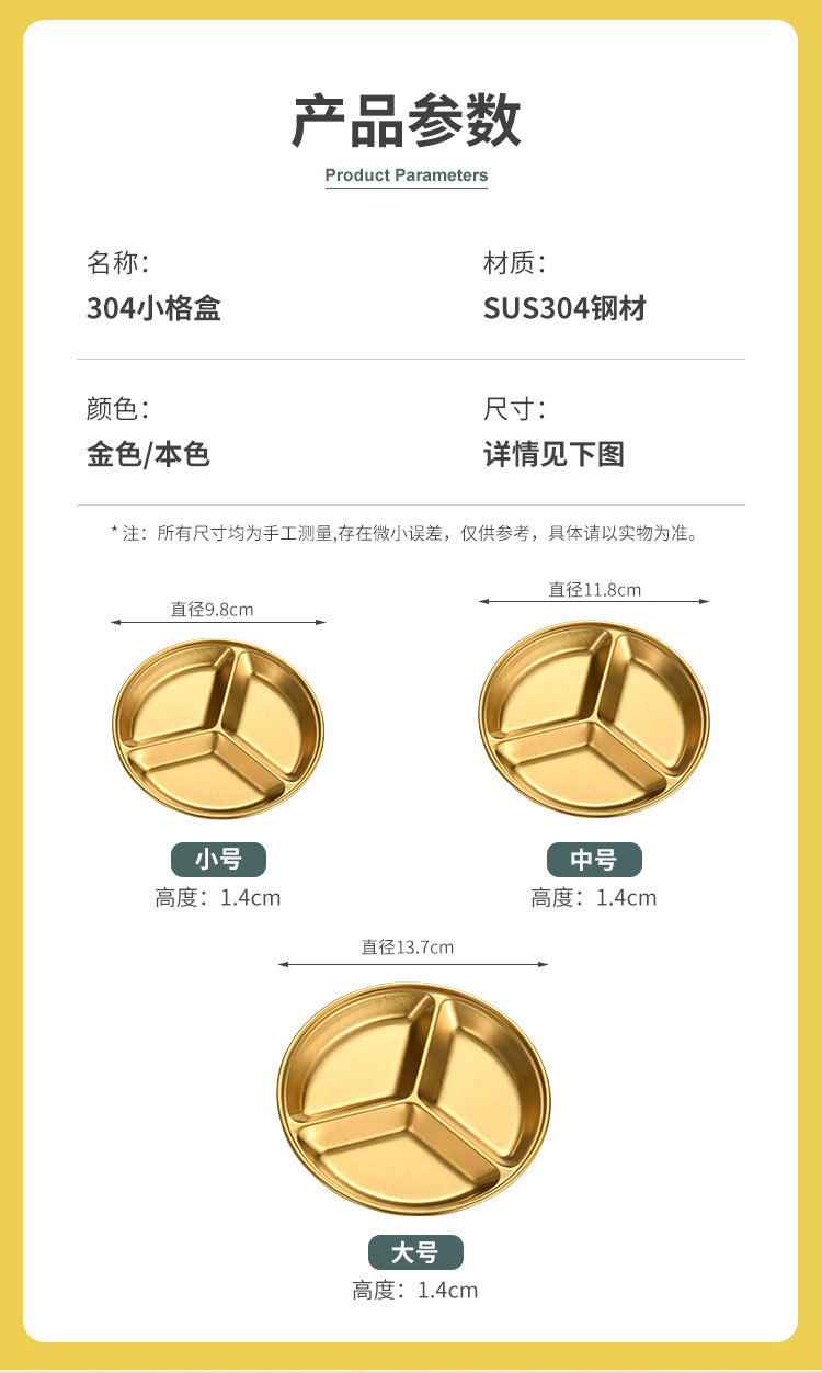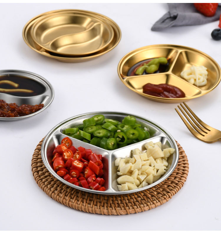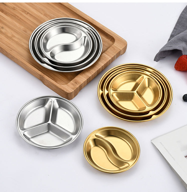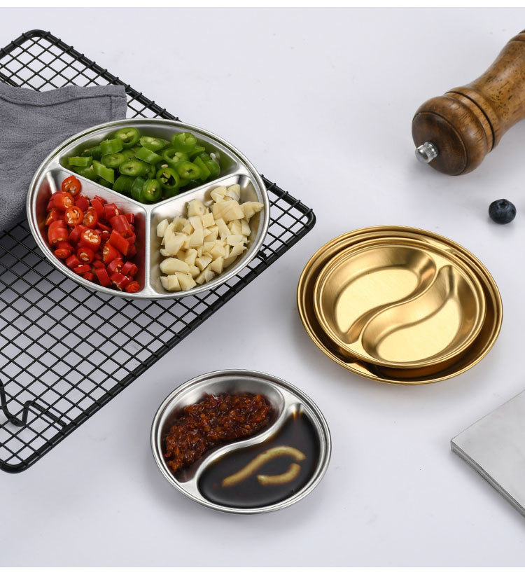 跨境201不锈钢圆形分隔碟加厚加深烧烤调料蘸料碟金色小料碟批发
