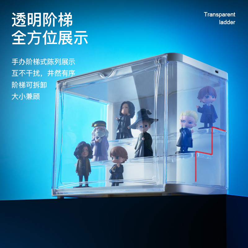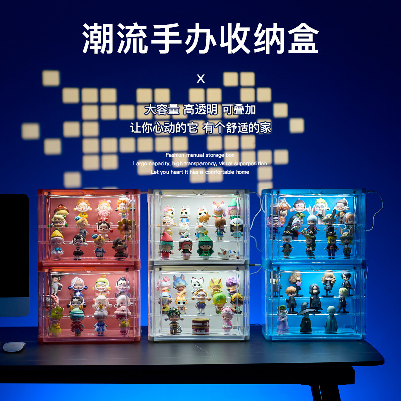 带灯透明防尘盲盒手办收纳盒乐高玩具架泡泡玛特亚克力壁挂展示柜