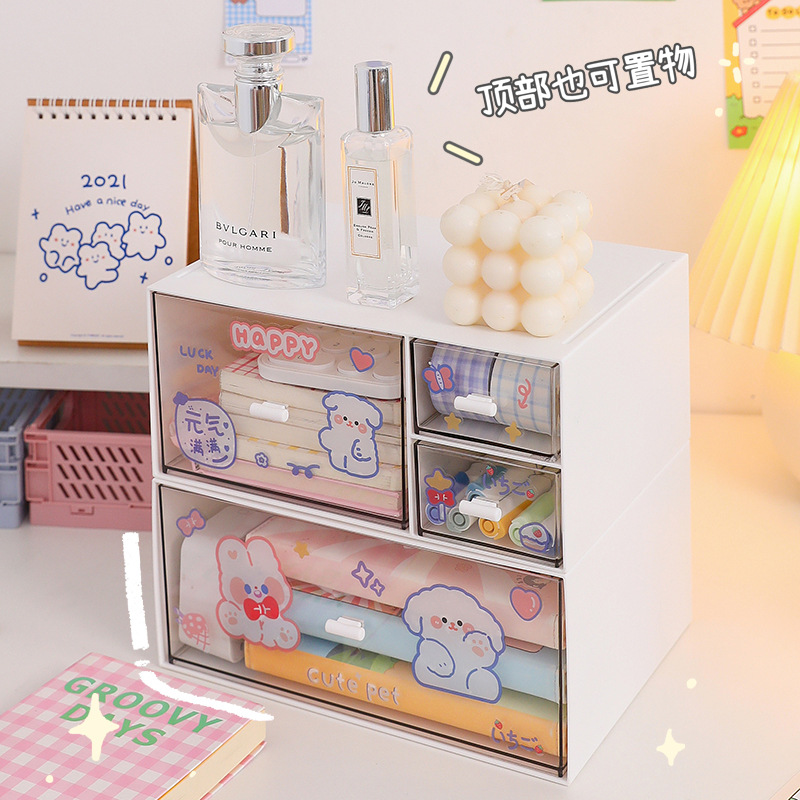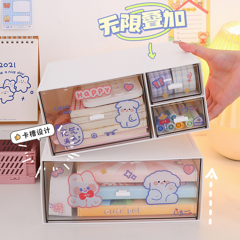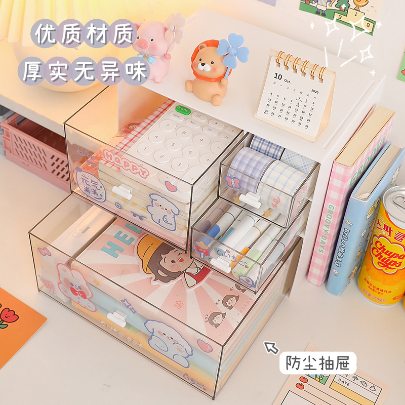 学生桌面收纳盒儿童女生文具ins抽屉式书桌杂物手账整理盒子神器