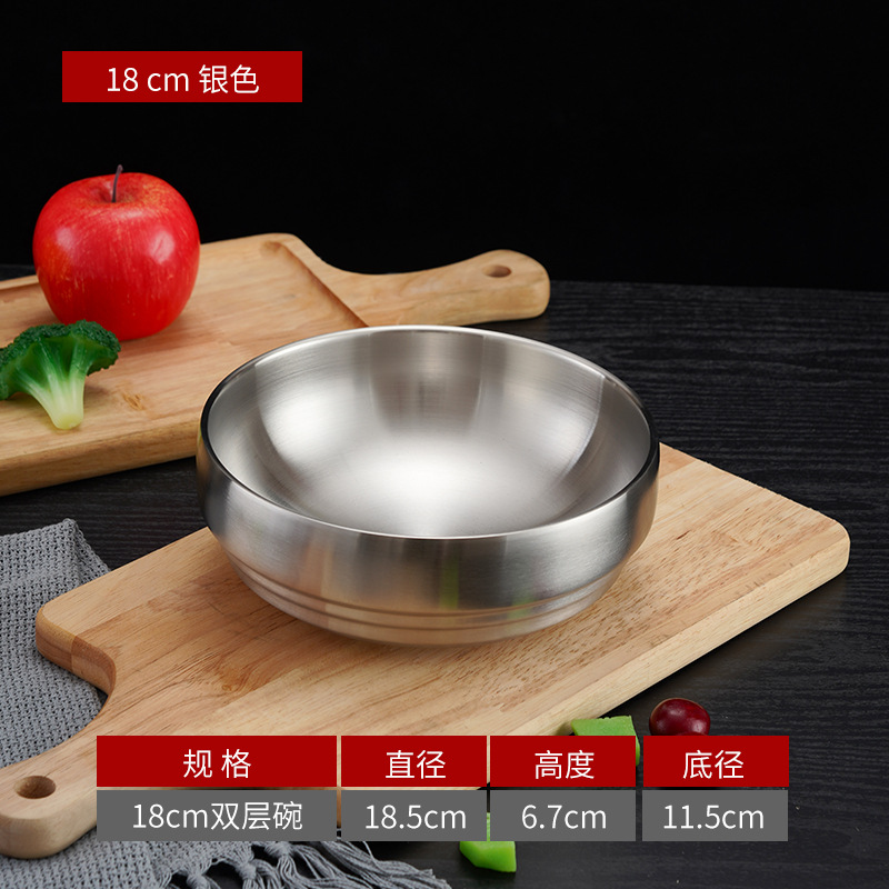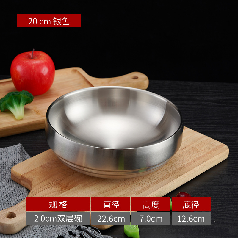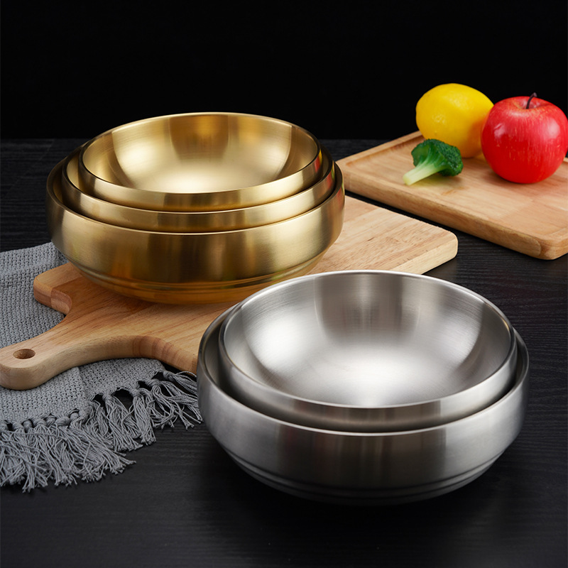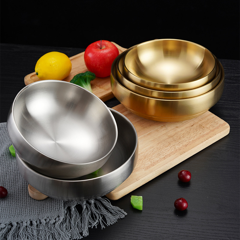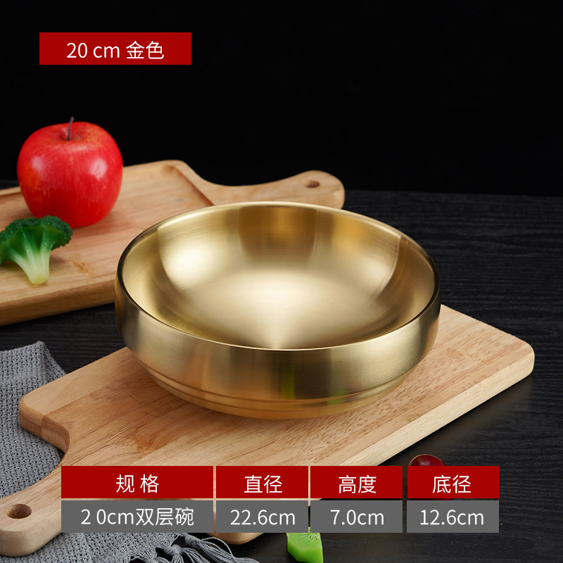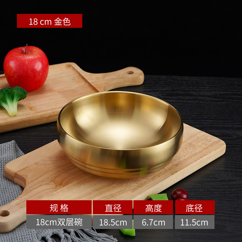韩式不锈钢双层冷面碗拌饭碗米饭碗螺丝粉拉面碗泡面碗大汤碗金色