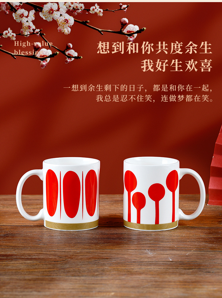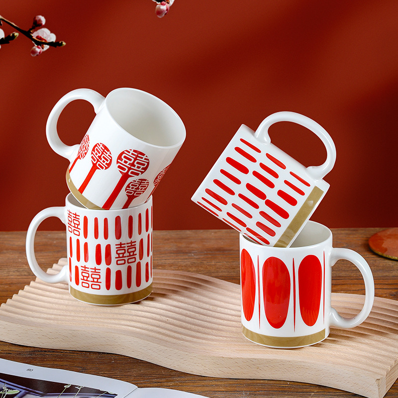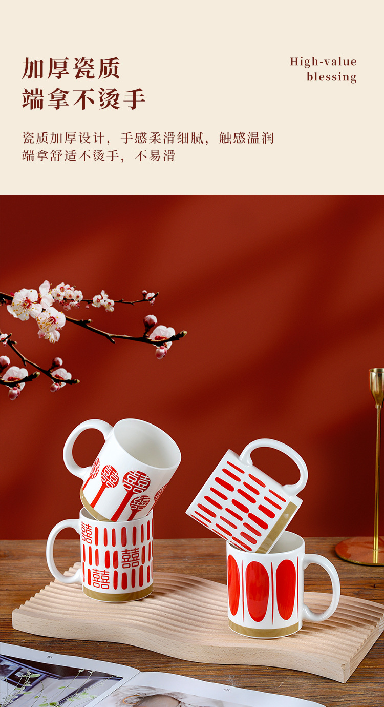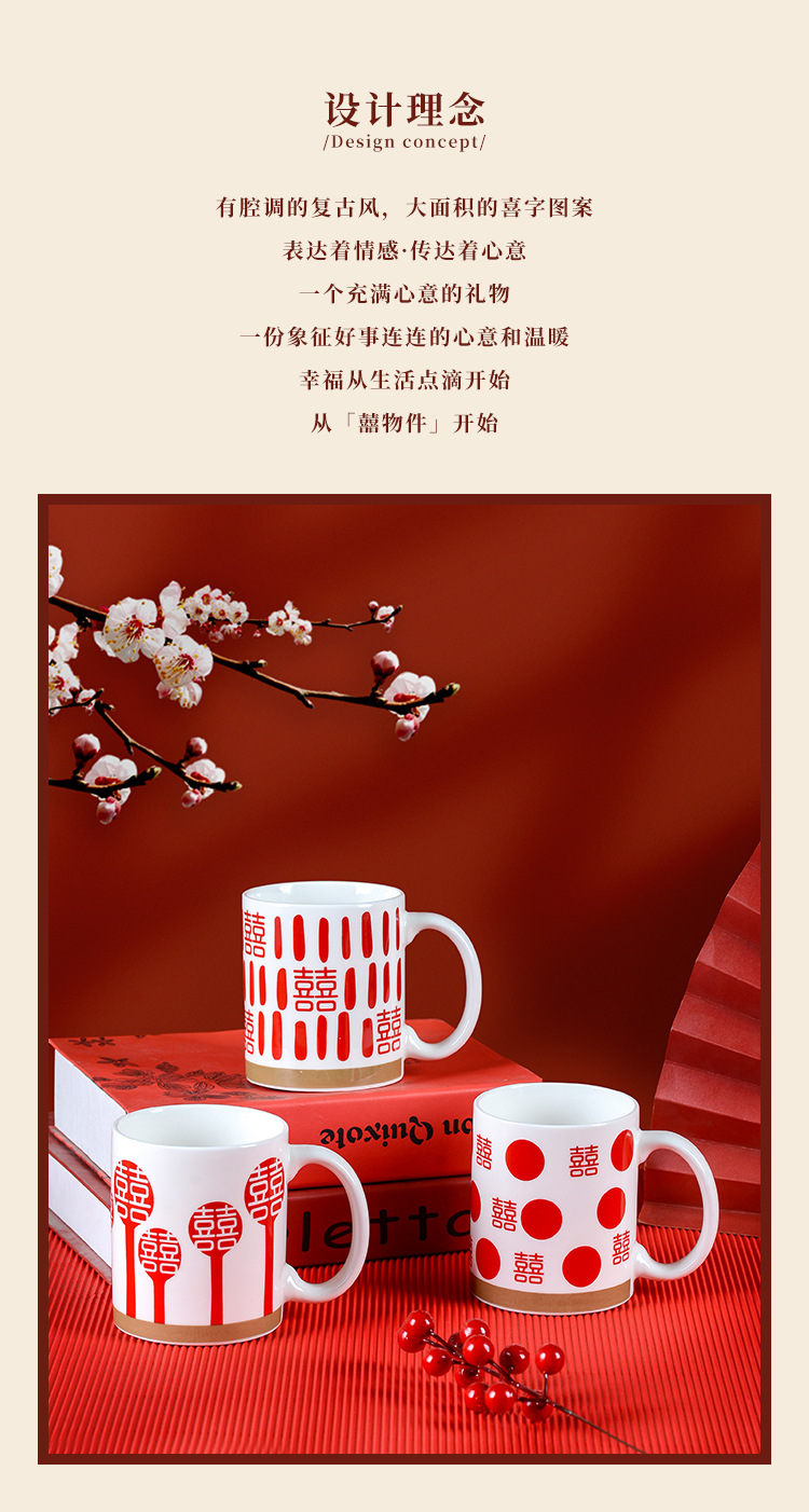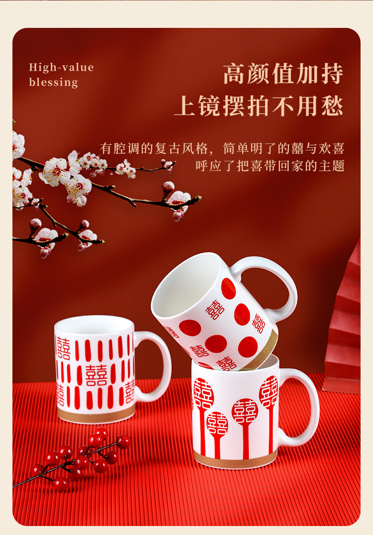 新中式婚庆陶瓷马克杯高颜值情侣水杯春节喜庆伴手礼喜铺节日礼物