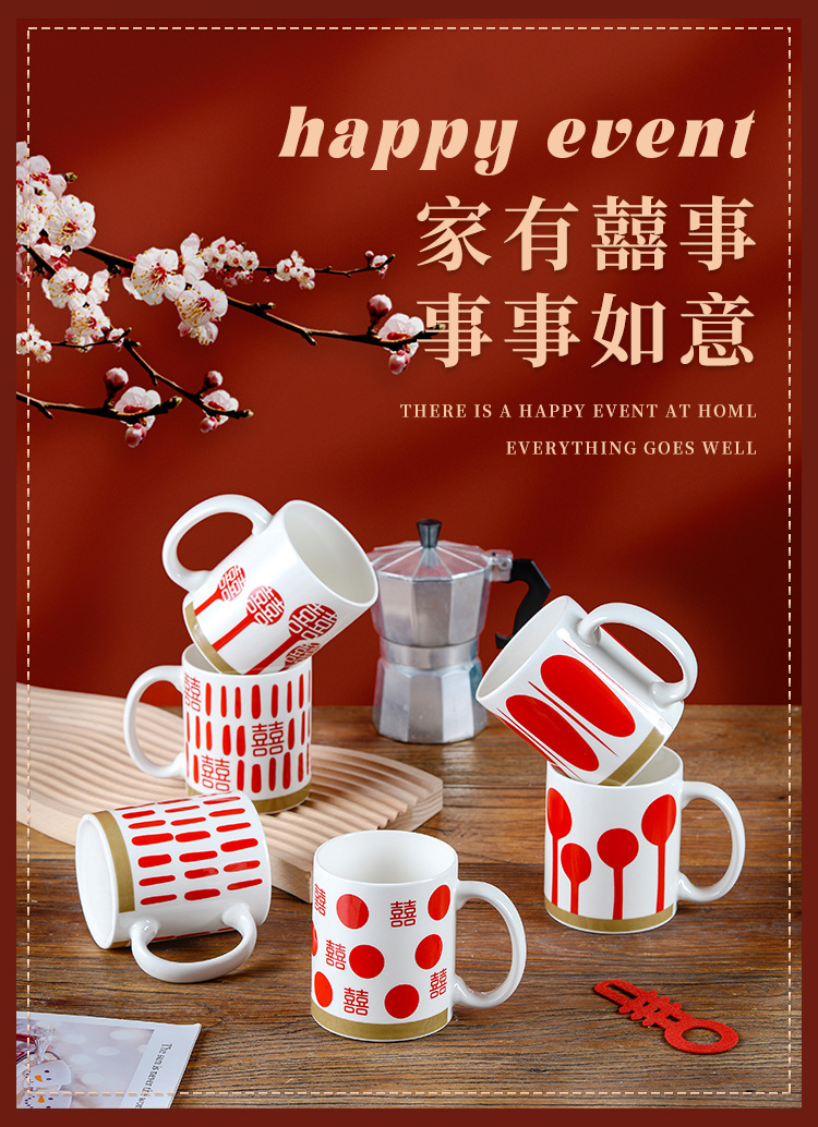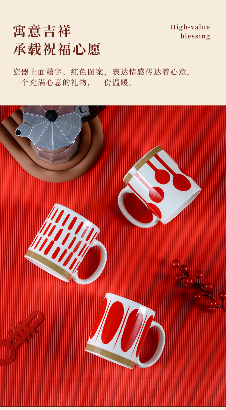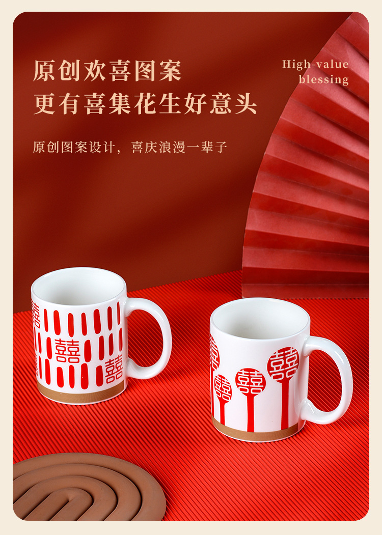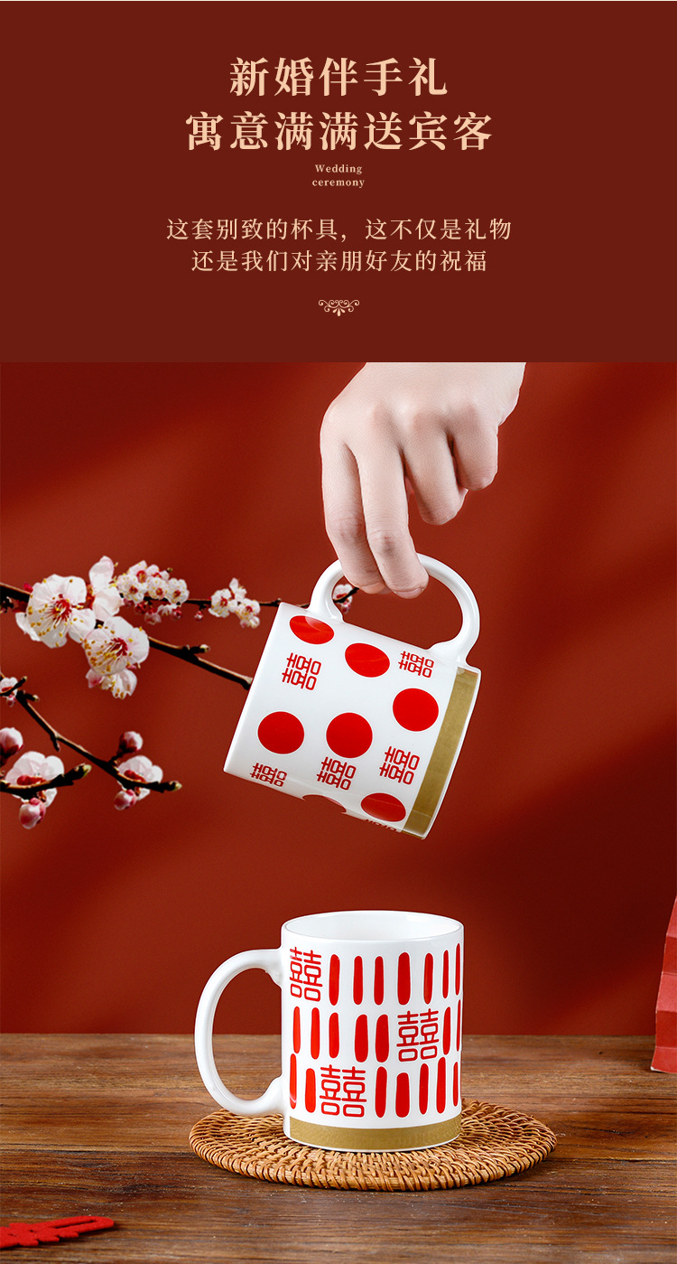 新中式婚庆陶瓷马克杯高颜值情侣水杯春节喜庆伴手礼喜铺节日礼物