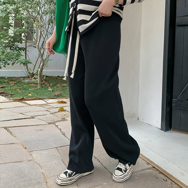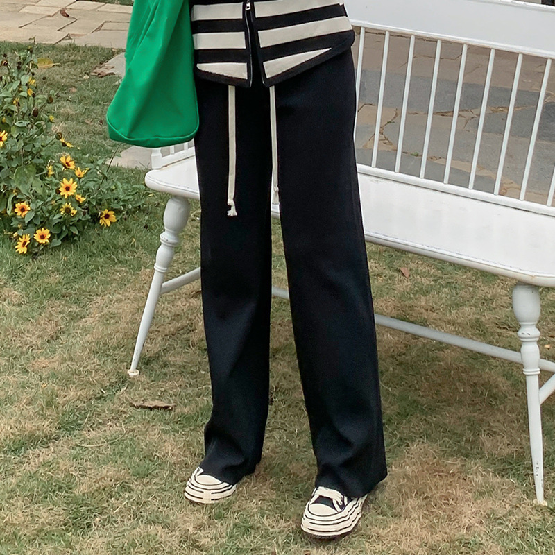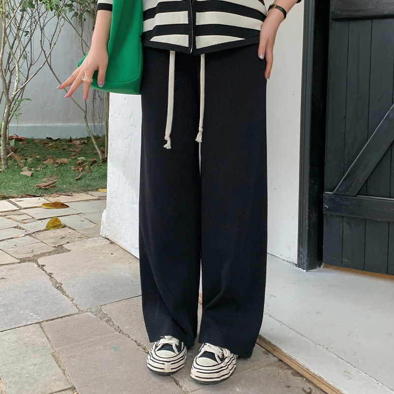 大码女装宽松休闲阔腿针织裤2023早春款胖mm垂感直筒裤子女21371
