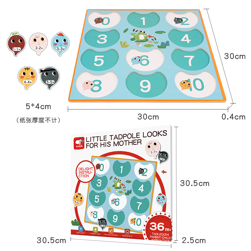 儿童早教小蝌蚪找妈妈算数配对智力积木制拼图小男孩女孩玩具